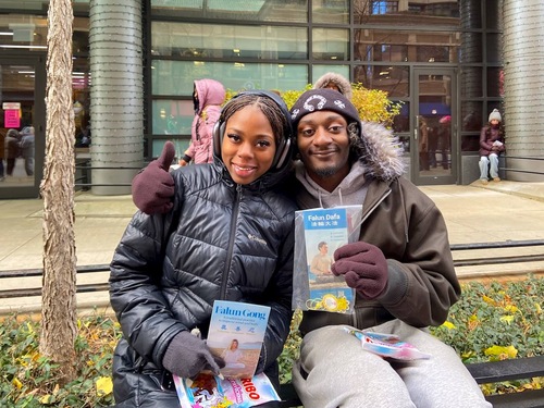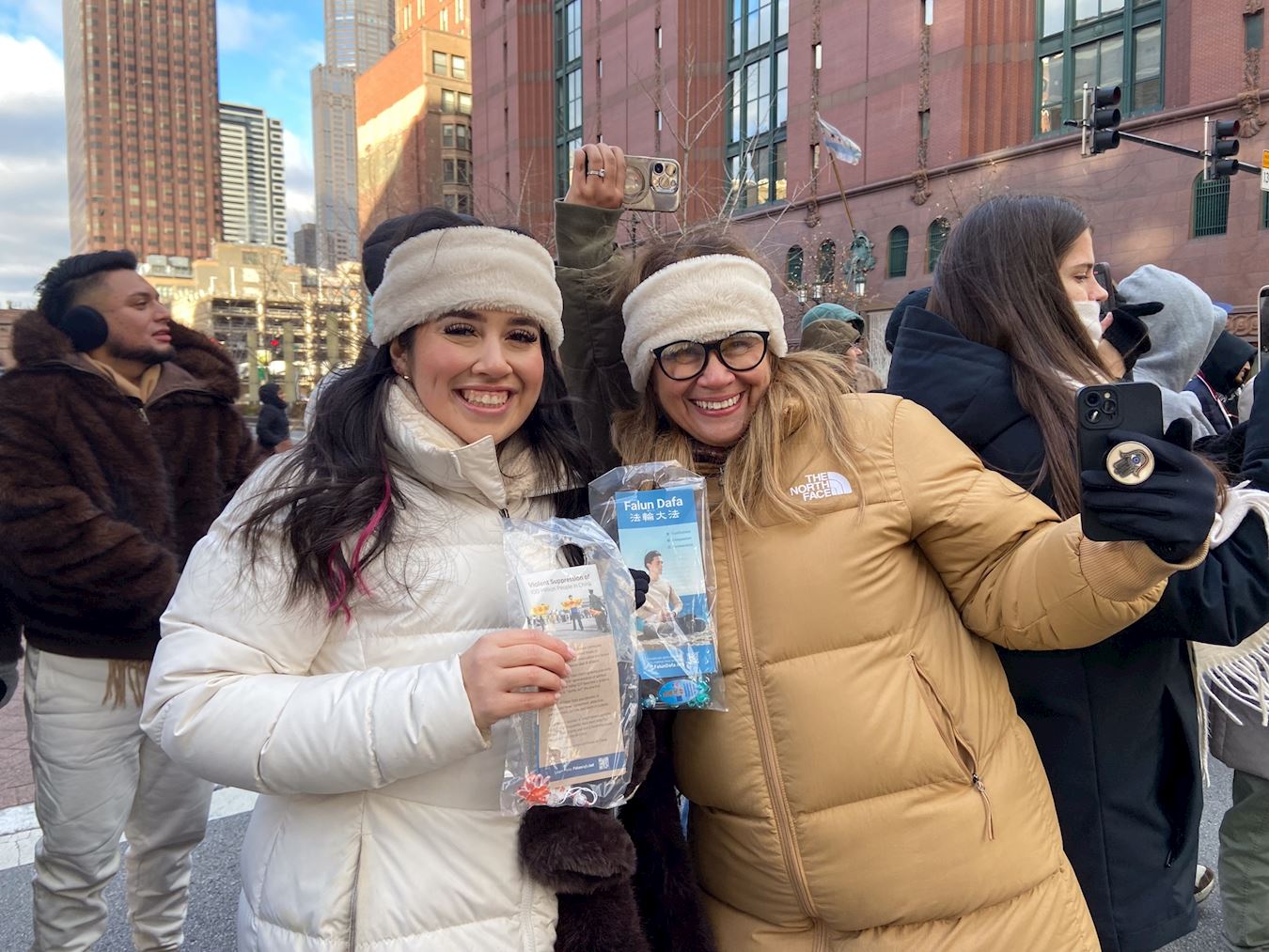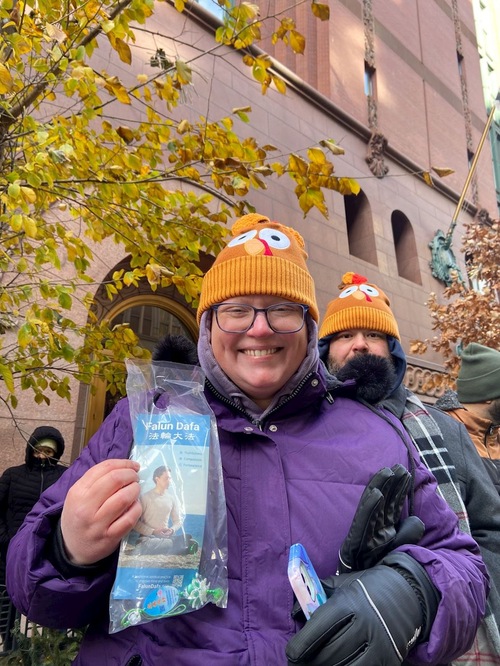 Sie sagte, dass Thanksgiving für sie ein Feiertag sei, der sie dazu anrege, über Falun Dafa nachzudenken und es umso mehr zu schätzen. Ihre Eltern und ihre Kinder hätten alle von Falun Dafa profitiert. „Ich bin wirklich dankbar, Falun Dafa praktizieren zu dürfen“, sagte sie. „Ich hoffe, dass die Menschen an diesem kalten Feiertag durch diese Vorführung die positive Energie und Wärme von Falun Dafa spüren können.“