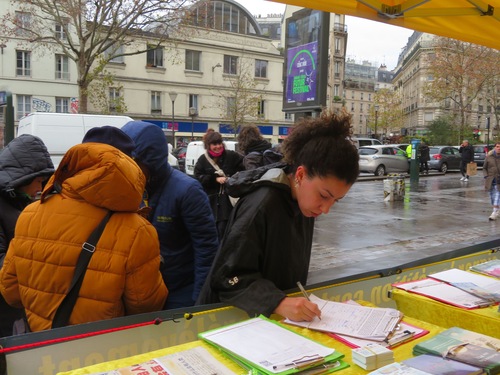(Minghui.org) Im November 2025 hielten französische Falun-Dafa-Praktizierende zwei Informationsveranstaltungen ab: am 15. November in Reims und am 25. November in Paris. Dort führten sie die Übungen vor, machten auf die Verfolgung von Falun Dafa durch die Kommunistische Partei Chinas (KPCh) aufmerksam und sammelten Unterschriften für eine Petition, die ein Ende der Menschenrechtsverletzungen der KPCh, einschließlich der erzwungenen Organentnahme an politischen Gefangenen, fordert.