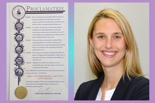 Shen Yun kehrt vom 7. bis 10. Mai 2026 nach Stamford, Connecticut, zurück. Bürgermeisterin Carolyn Simmons stellte für den Zeitraum vom 7. bis 10. Mai 2026 eine Würdigungsurkunde zum 20-jährigen Jubiläum von Shen Yun Performing Arts aus. Darin betont sie Shen Yuns herausragende Beiträge zu Kunst und Kultur und lädt alle Einwohner herzlich ein, dieses außergewöhnliche Kulturerlebnis zu genießen.