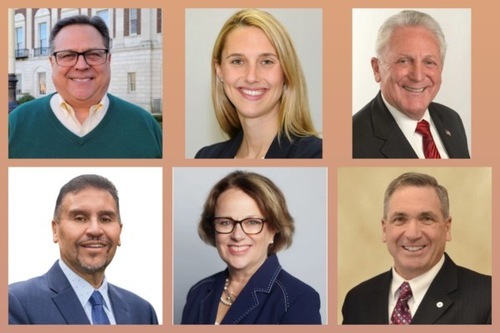 Im Dezember 2025, kurz vor der Rückkehr von Shen Yun nach Waterbury, Connecticut, übermitteln die Bürgermeister von sechs Städten in Connecticut Shen Yun Performing Arts Glückwunschschreiben und Urkunden. Es handelt sich um (v.li.n.re, v.o.n.u.): Bürgermeister Paul K. Pernerewski Jr. aus Waterbury, Bürgermeisterin Caroline Simmons aus Stanford, Bürgermeister Harry W. Rilling aus Norwalk, Bürgermeister Bobby Sanchez aus New Britain, Bürgermeisterin Ellen Zoppo-Sassu aus Bristol und Bürgermeister Michael E. Passero aus New London.