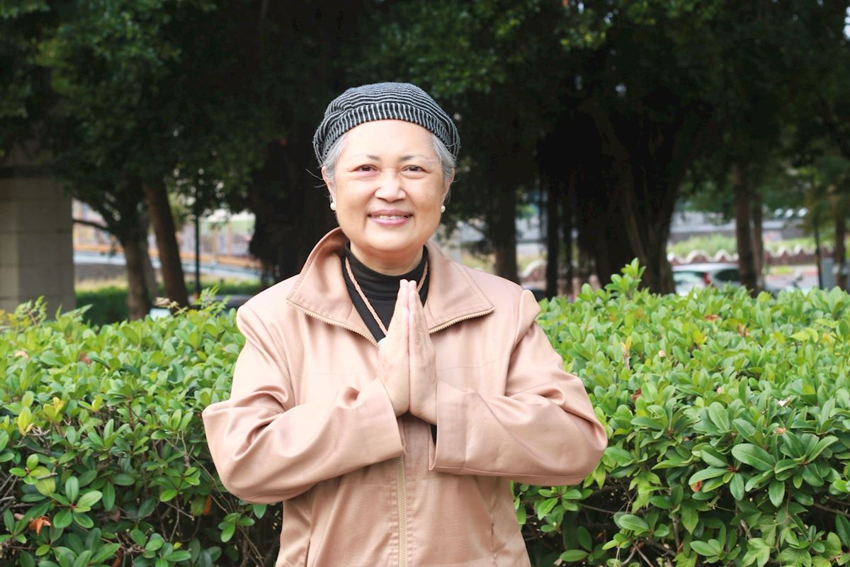 Li Ling, 64, betreibt mit ihrem Mann ein Restaurant. Sie wuchs in einer buddhistischen Familie auf. Bevor sie mit dem Praktizieren von Falun Dafa begann, sah sie jedes Mal, wenn sie an der Zhulin-Brücke in Hsinchu vorbeikam oder auf dem Weg nach Beipu war, ein großes Schild mit der Aufschrift: „Falun Dafa ist gut.“ Sie sprach die Worte jedes Mal innerlich nach. Eines Tages sah sie beim Spaziergang in der Nähe einer Grundschule ein Ehepaar, das oft in ihrem Restaurant aß und gerade die fünfte Falun-Dafa-Übung ausführte. Nach einem Gespräch mit ihnen beschloss sie, Falun Dafa selbst auszuprobieren.