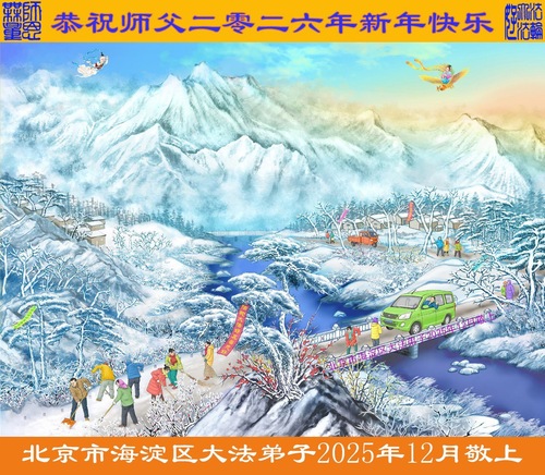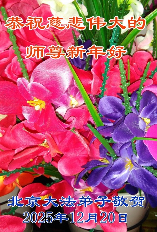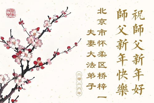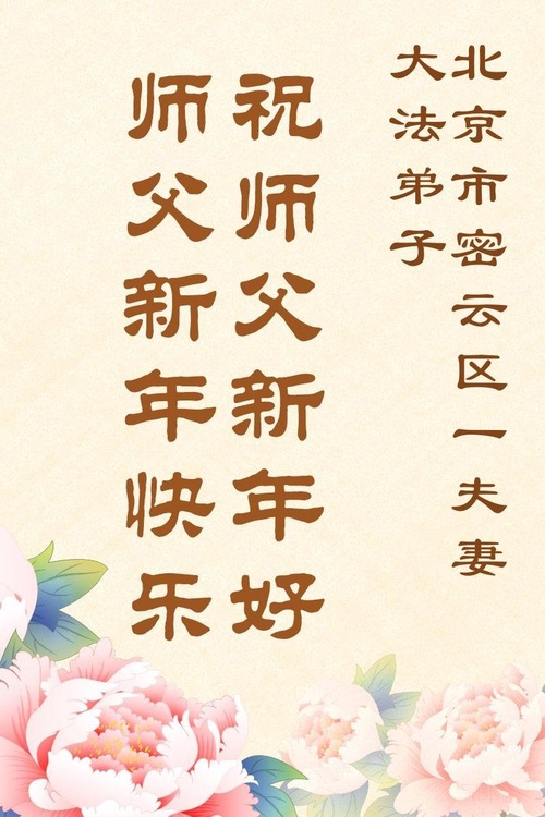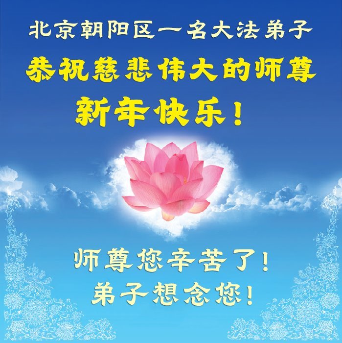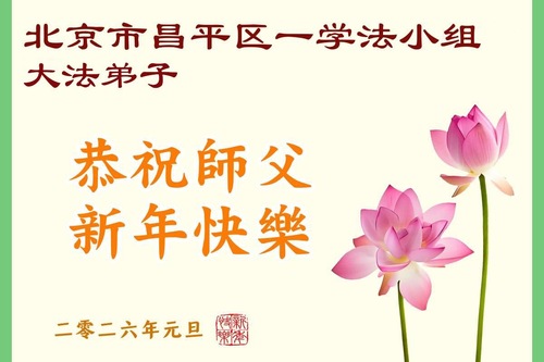 (Minghui.org) Zu Neujahr senden Falun-Dafa-Praktizierende auf der ganzen Welt traditionell Neujahrsgrüße, Grußkarten, Gedichte und Fotos an die Minghui-Website. Damit wünschen sie ihrem verehrten Meister Li Hongzhi ein frohes neues Jahr und bringen dem Meister ihre Dankbarkeit für die barmherzige Errettung zum Ausdruck. Sie geloben, in ihrer Kultivierung fleißig voranzukommen und noch mehr Lebewesen zu erretten. Im Folgenden veröffentlichen wir einen Teil dieser Grüße von mehreren Fa-Lerngruppen aus Peking: