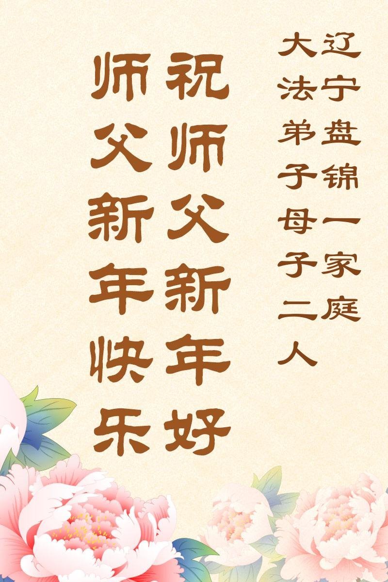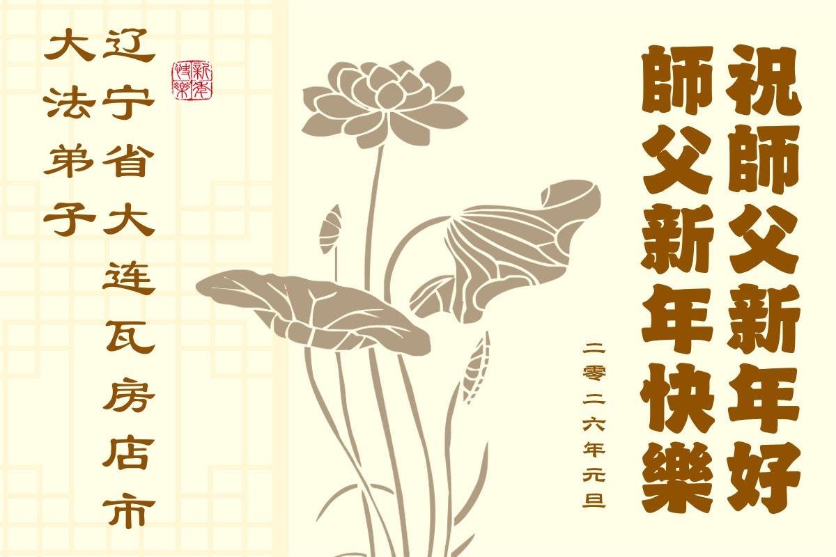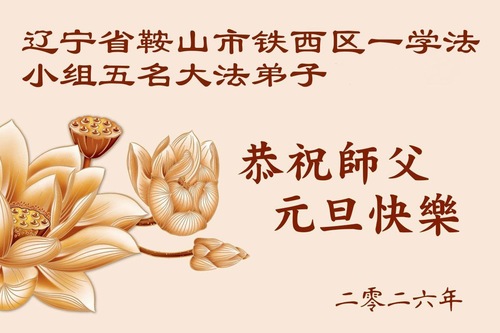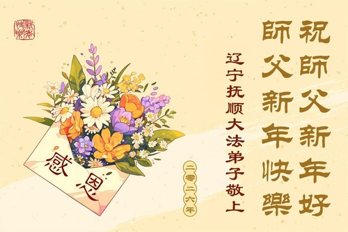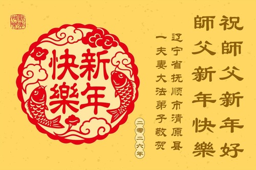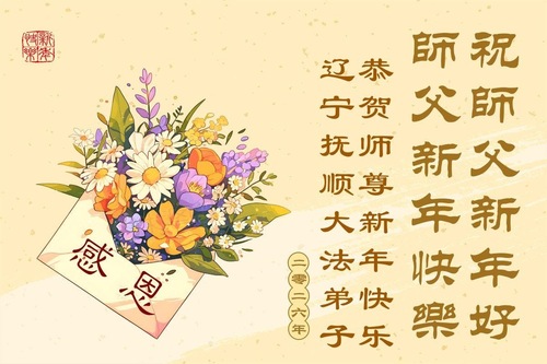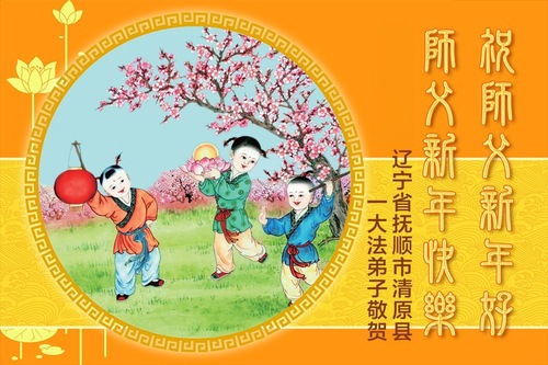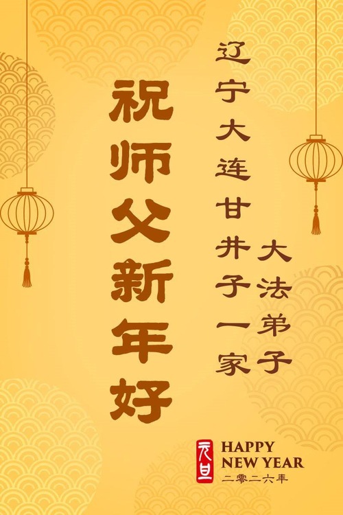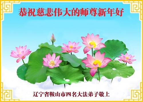 (Minghui.org) Zu Neujahr senden Falun-Dafa-Praktizierende auf der ganzen Welt traditionell Neujahrsgrüße, Grußkarten, Gedichte und Fotos an die Minghui-Website. Damit wünschen sie ihrem verehrten Meister Li Hongzhi ein frohes neues Jahr und bringen dem Meister ihre Dankbarkeit für die barmherzige Errettung zum Ausdruck. Sie geloben, in ihrer Kultivierung fleißig voranzukommen und noch mehr Lebewesen zu erretten. Im Folgenden veröffentlichen wir einen Teil dieser Grüße aus der Provinz Liaoning: