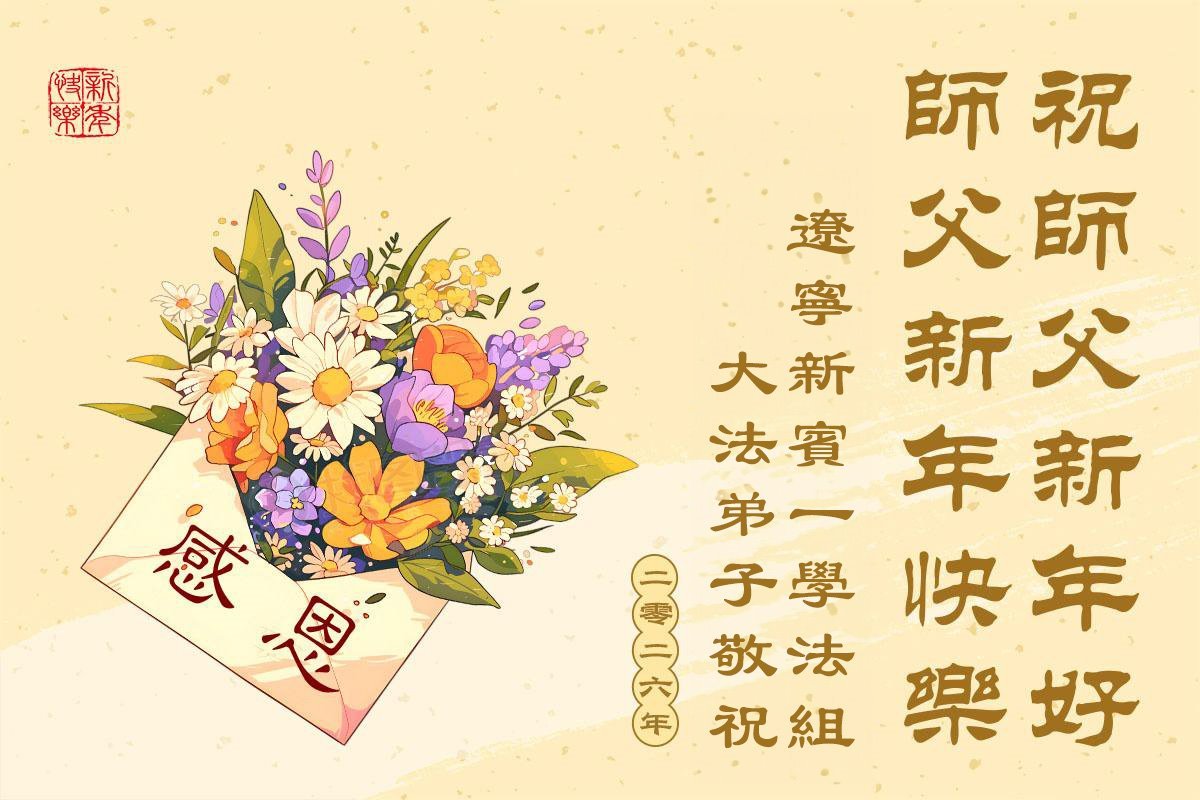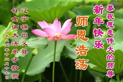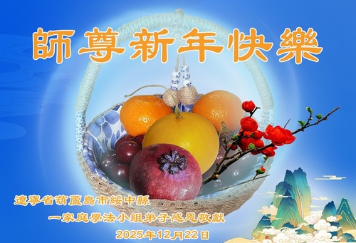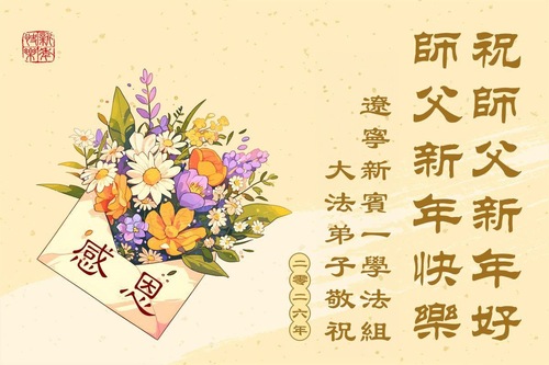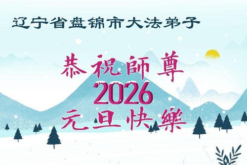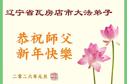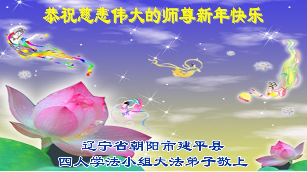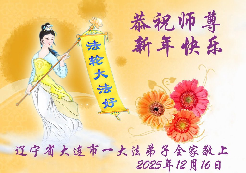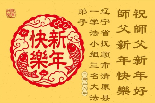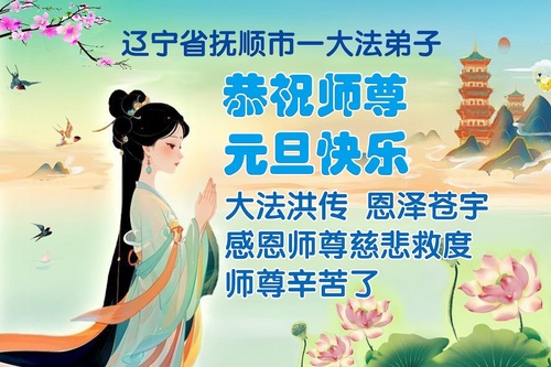 (Minghui.org) Zu Neujahr senden Falun-Dafa-Praktizierende auf der ganzen Welt traditionell Neujahrsgrüße, Grußkarten, Gedichte und Fotos an die Minghui-Website. Damit wünschen sie ihrem verehrten Meister Li Hongzhi ein frohes neues Jahr und bringen dem Meister ihre Dankbarkeit für die barmherzige Errettung zum Ausdruck. Sie geloben, in ihrer Kultivierung fleißig voranzukommen und noch mehr Lebewesen zu erretten. Im Folgenden veröffentlichen wir einen Teil dieser Grüße aus der Provinz Liaoning: