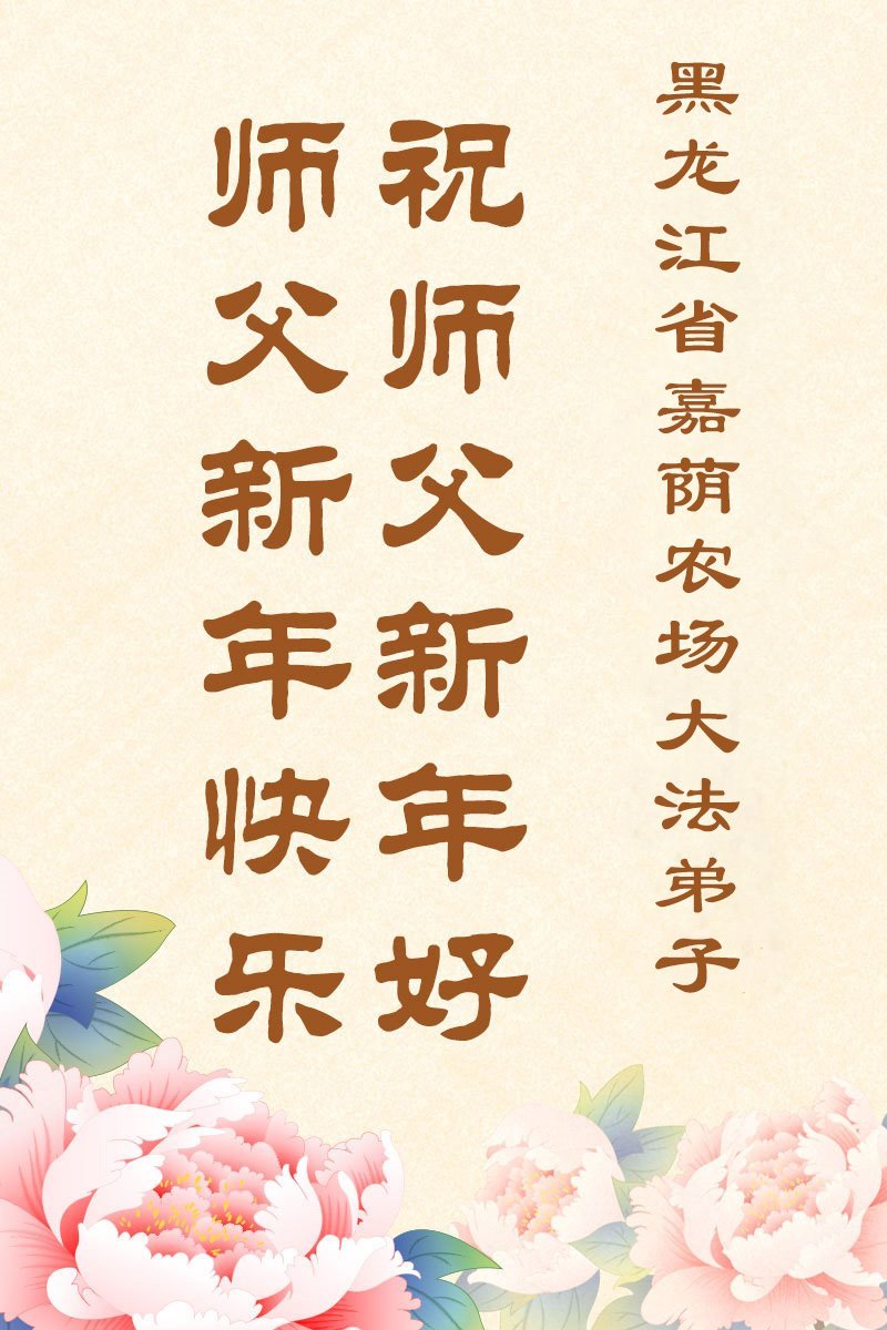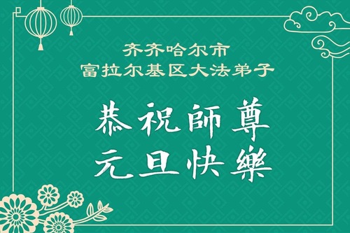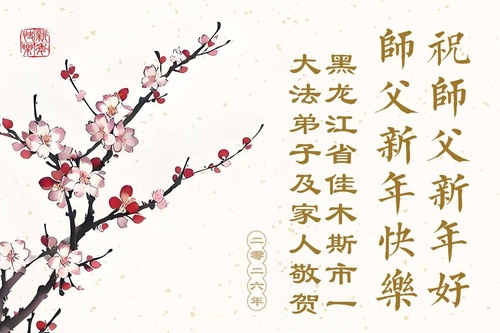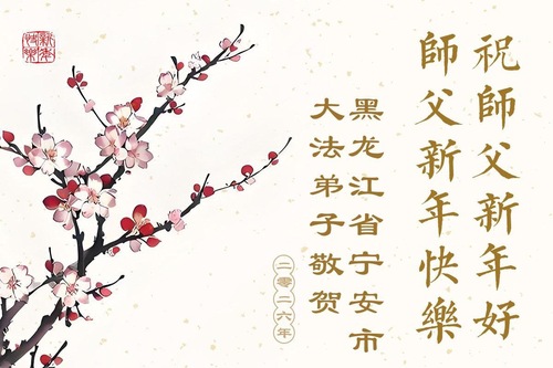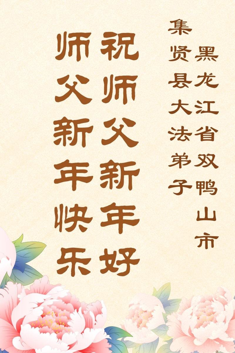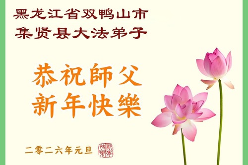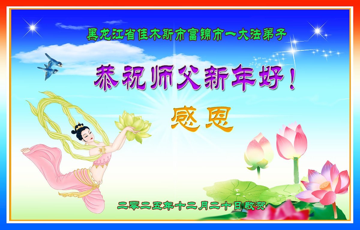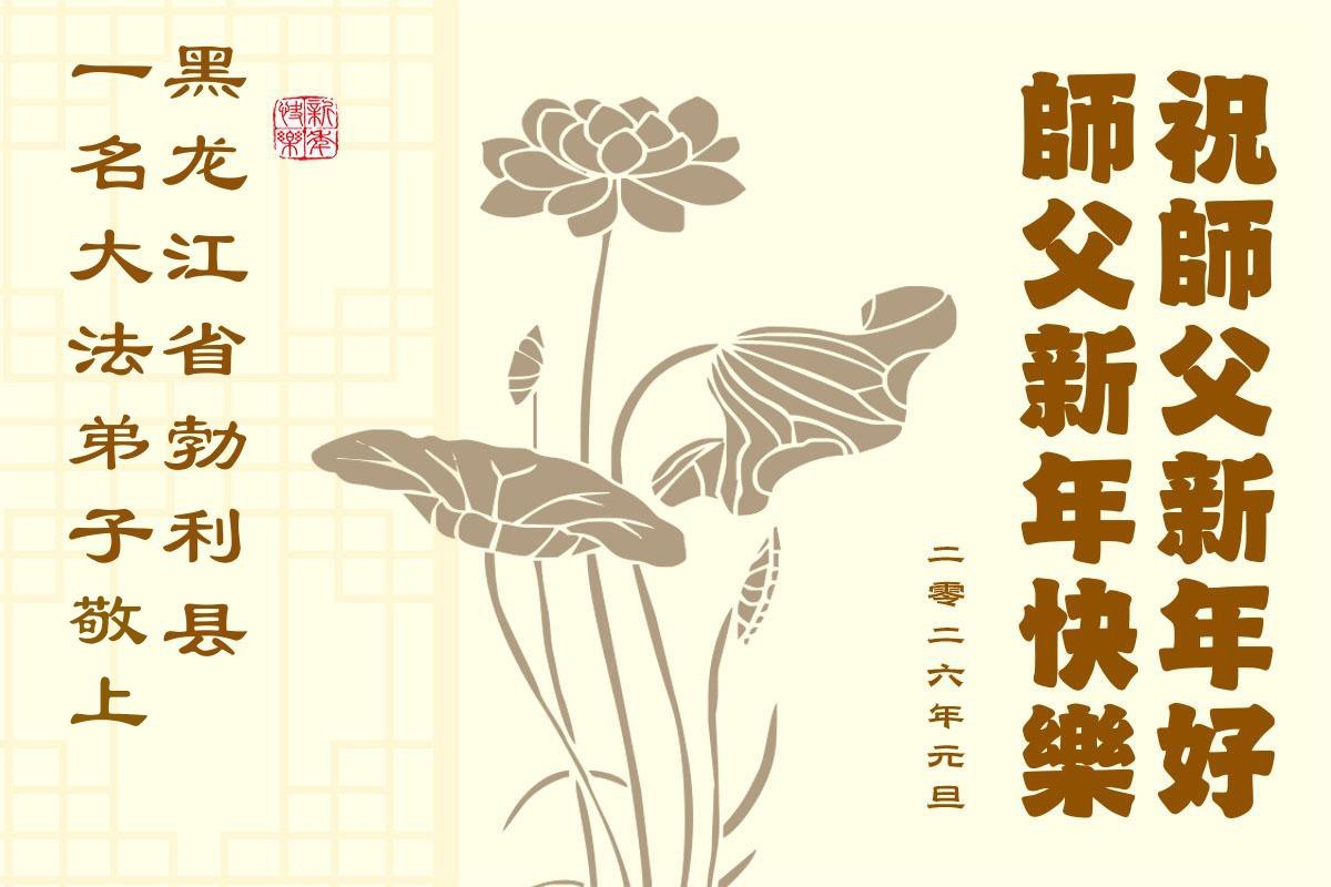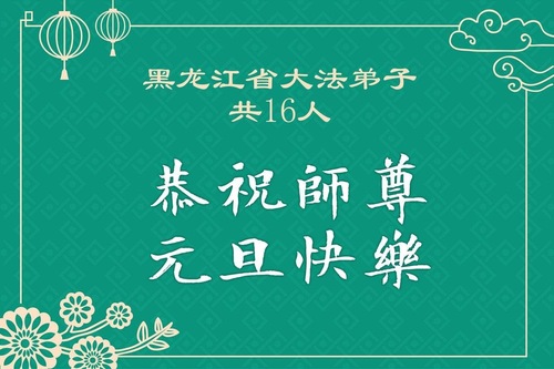 (Minghui.org) Zu Neujahr senden Falun-Dafa-Praktizierende auf der ganzen Welt traditionell Neujahrsgrüße, Grußkarten, Gedichte und Fotos an die Minghui-Website. Damit wünschen sie ihrem verehrten Meister Li Hongzhi ein frohes neues Jahr und bringen dem Meister ihre Dankbarkeit für die barmherzige Errettung zum Ausdruck. Sie geloben, in ihrer Kultivierung fleißig voranzukommen und noch mehr Lebewesen zu erretten. Im Folgenden veröffentlichen wir einen Teil dieser Grüße aus der Provinz Heilongjiang: