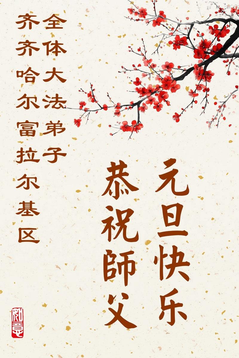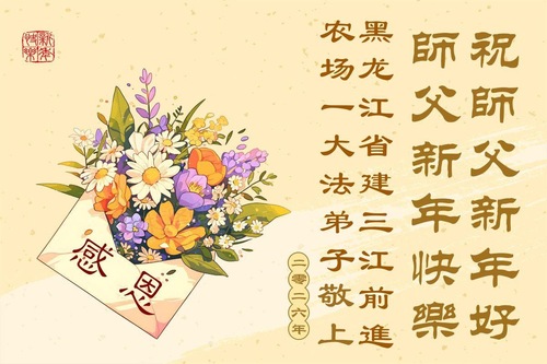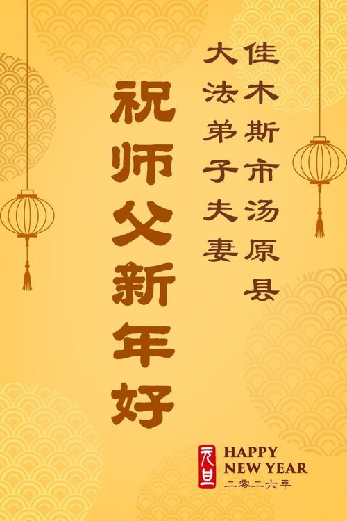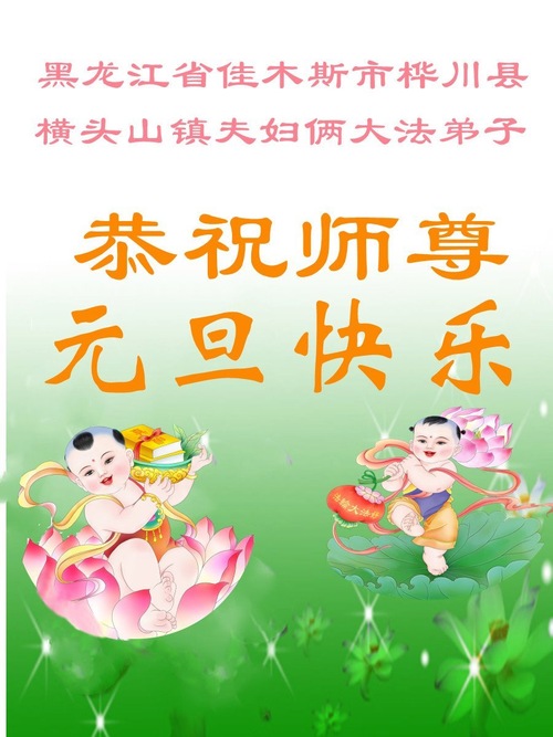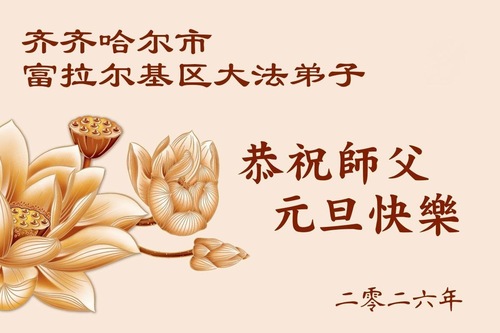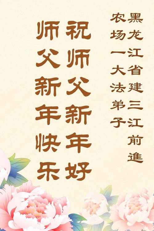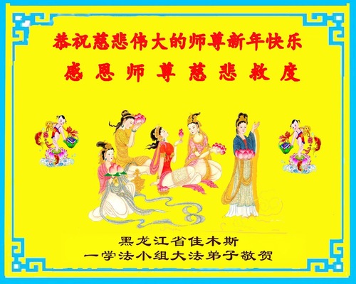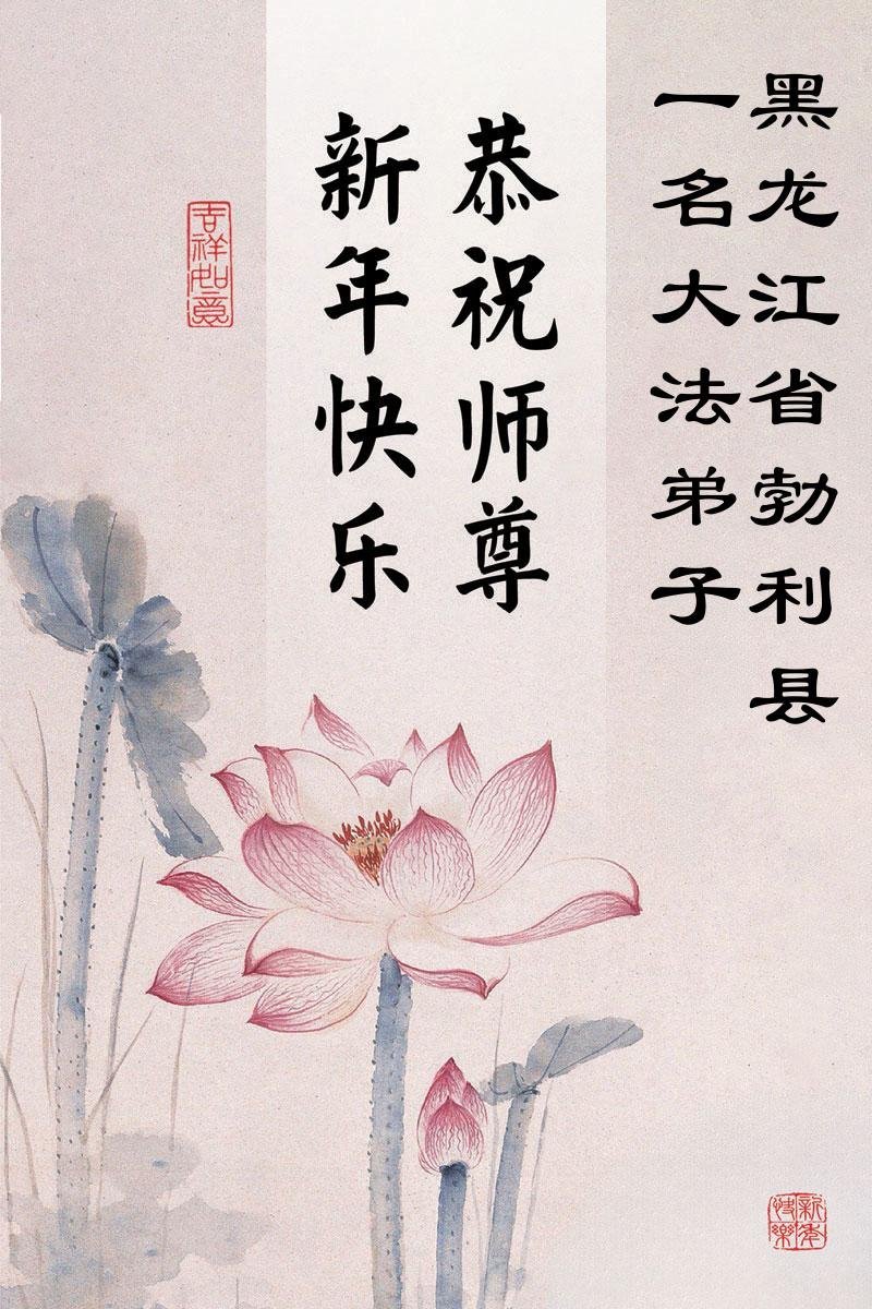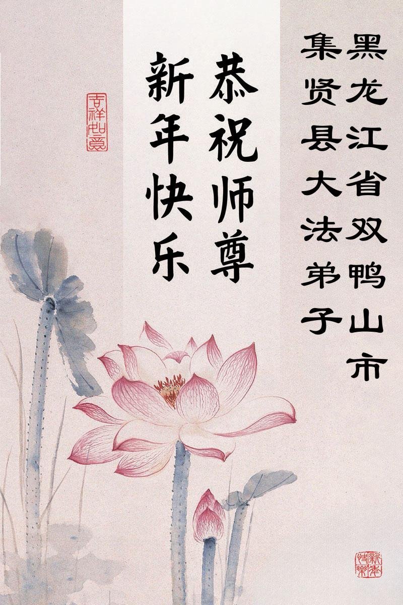 (Minghui.org) Zu Neujahr senden Falun-Dafa-Praktizierende auf der ganzen Welt traditionell Neujahrsgrüße, Grußkarten, Gedichte und Fotos an die Minghui-Website. Damit wünschen sie ihrem verehrten Meister Li Hongzhi ein frohes neues Jahr und bringen dem Meister ihre Dankbarkeit für die barmherzige Errettung zum Ausdruck. Sie geloben, in ihrer Kultivierung fleißig voranzukommen und noch mehr Lebewesen zu erretten. Im Folgenden veröffentlichen wir einen Teil dieser Grüße aus der Provinz Heilongjiang: