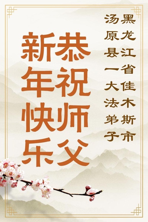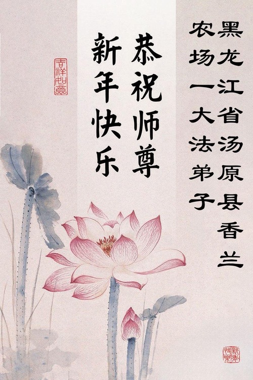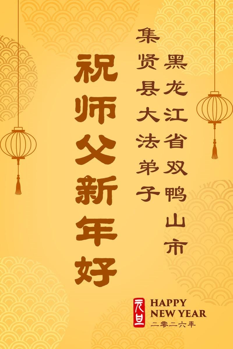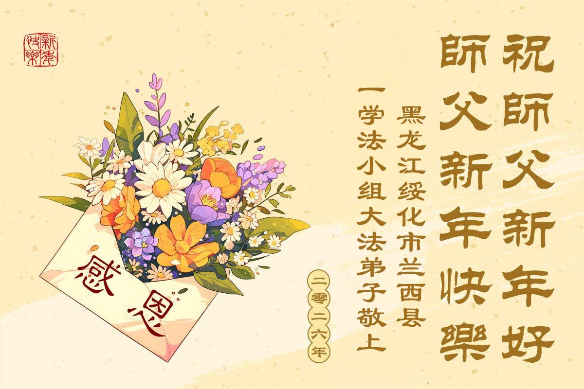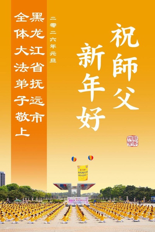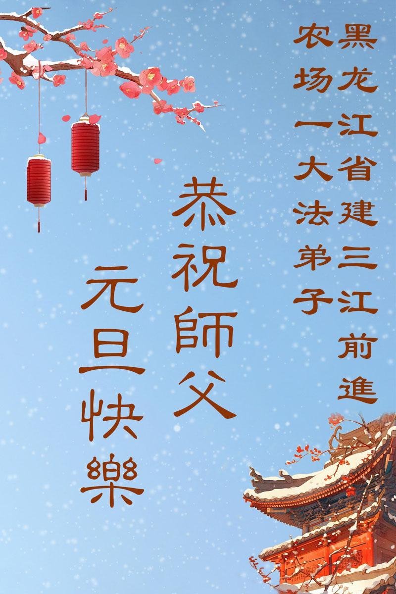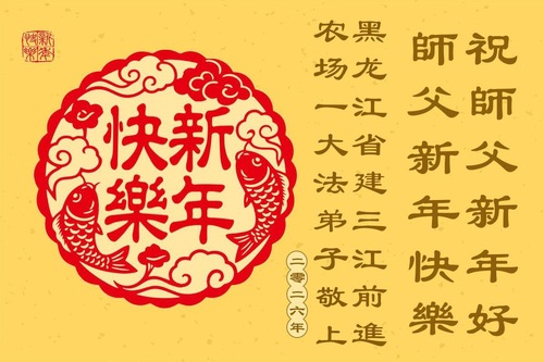 (Minghui.org) Zu Neujahr senden Falun-Dafa-Praktizierende auf der ganzen Welt traditionell Neujahrsgrüße, Grußkarten, Gedichte und Fotos an die Minghui-Website. Damit wünschen sie ihrem verehrten Meister Li Hongzhi ein frohes neues Jahr und bringen dem Meister ihre Dankbarkeit für die barmherzige Errettung zum Ausdruck. Sie geloben, in ihrer Kultivierung fleißig voranzukommen und noch mehr Lebewesen zu erretten. Im Folgenden veröffentlichen wir einen Teil dieser Grüße aus der Provinz Heilongjiang: