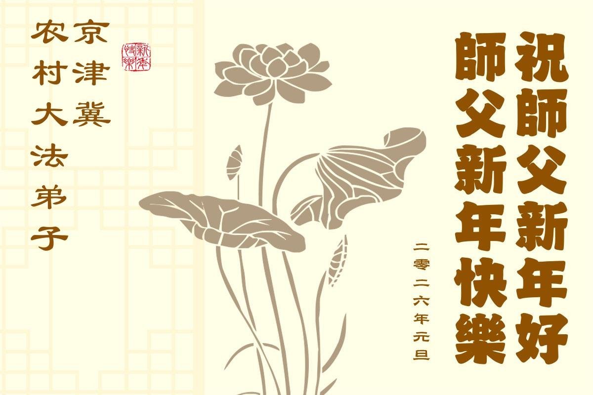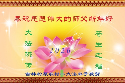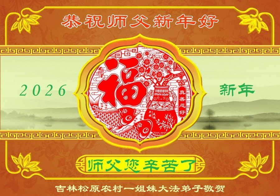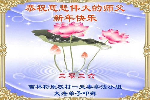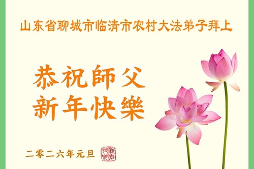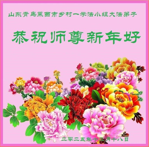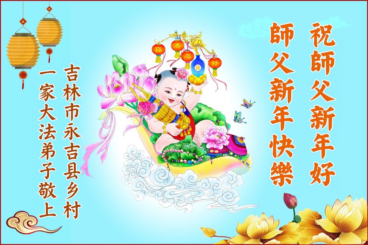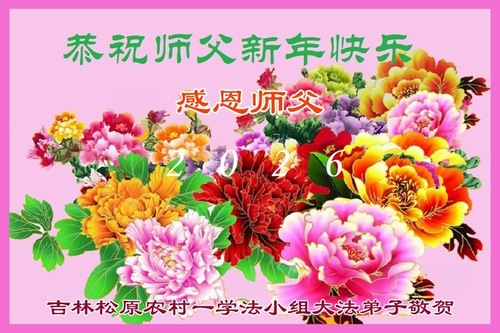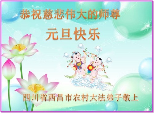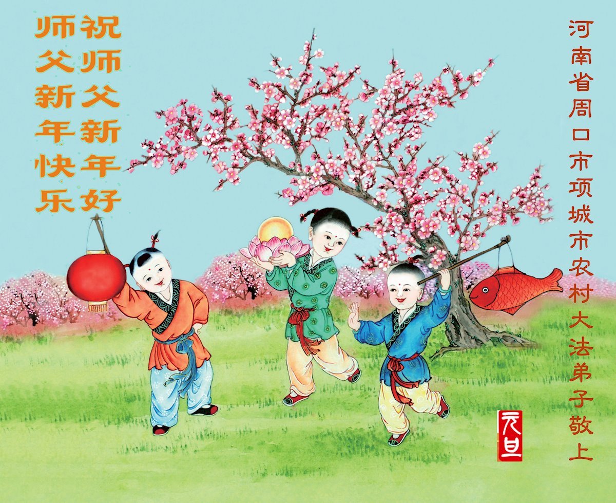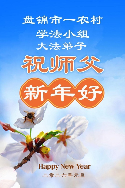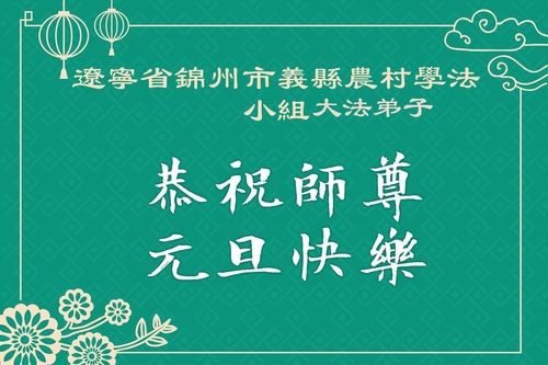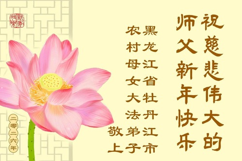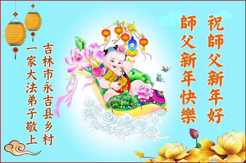 (Minghui.org) Zu Neujahr senden Falun-Dafa-Praktizierende auf der ganzen Welt traditionell Neujahrsgrüße, Grußkarten, Gedichte und Fotos an die Minghui-Website. Damit wünschen sie ihrem verehrten Meister Li Hongzhi ein frohes neues Jahr und bringen dem Meister ihre Dankbarkeit für die barmherzige Errettung zum Ausdruck. Sie geloben, in ihrer Kultivierung fleißig voranzukommen und noch mehr Lebewesen zu erretten. Im Folgenden veröffentlichen wir einen Teil dieser Grüße aus ländlichen Gebieten Chinas: