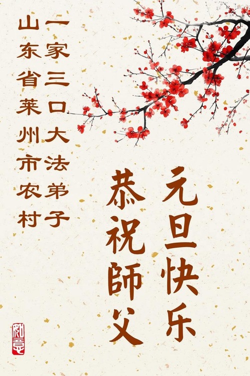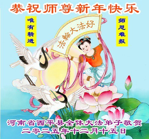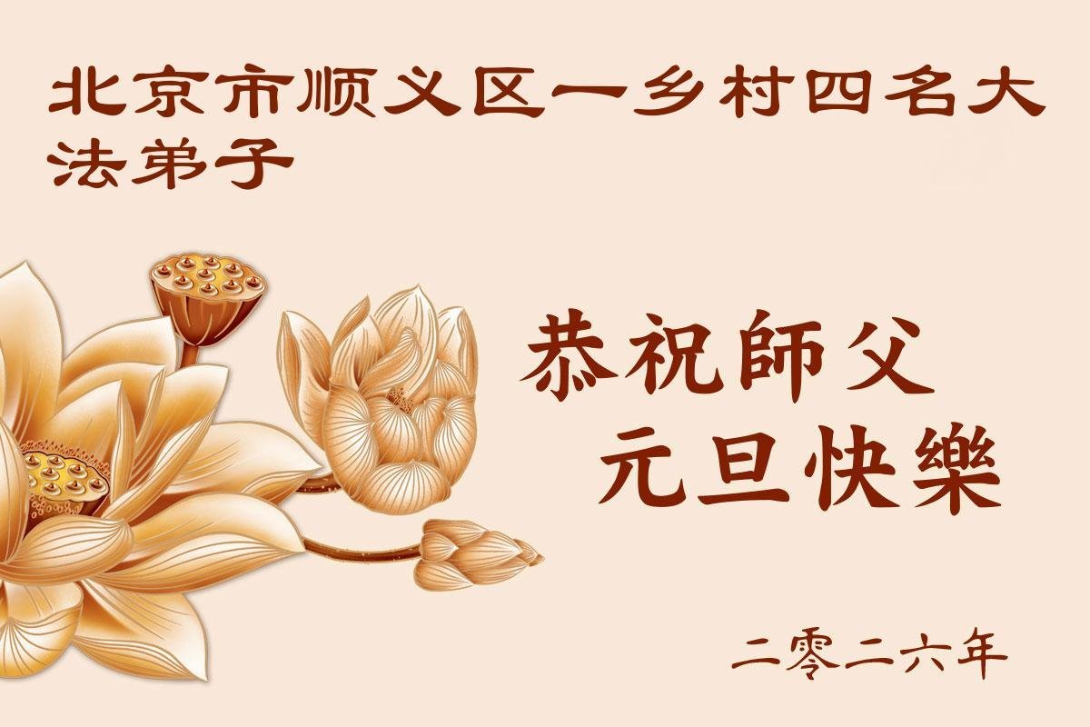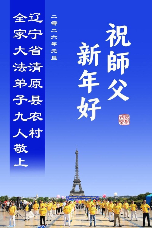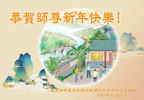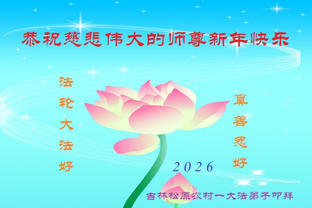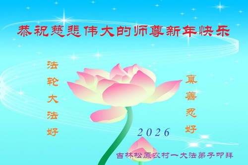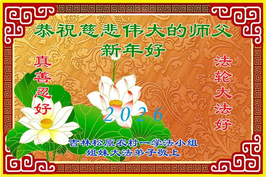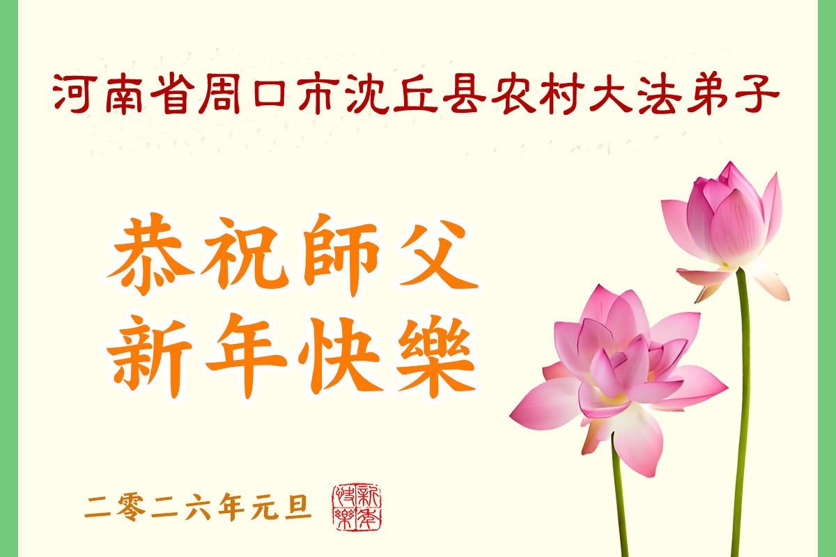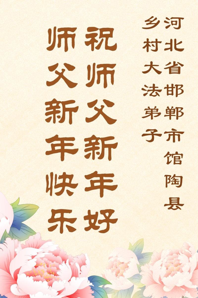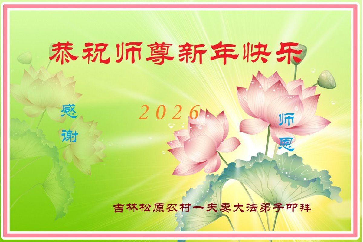 (Minghui.org) Zu Neujahr senden Falun-Dafa-Praktizierende auf der ganzen Welt traditionell Neujahrsgrüße, Grußkarten, Gedichte und Fotos an die Minghui-Website. Damit wünschen sie ihrem verehrten Meister Li Hongzhi ein frohes neues Jahr und bringen dem Meister ihre Dankbarkeit für die barmherzige Errettung zum Ausdruck. Sie geloben, in ihrer Kultivierung fleißig voranzukommen und noch mehr Lebewesen zu erretten. Im Folgenden veröffentlichen wir einen Teil dieser Grüße aus ländlichen Gebieten Chinas: