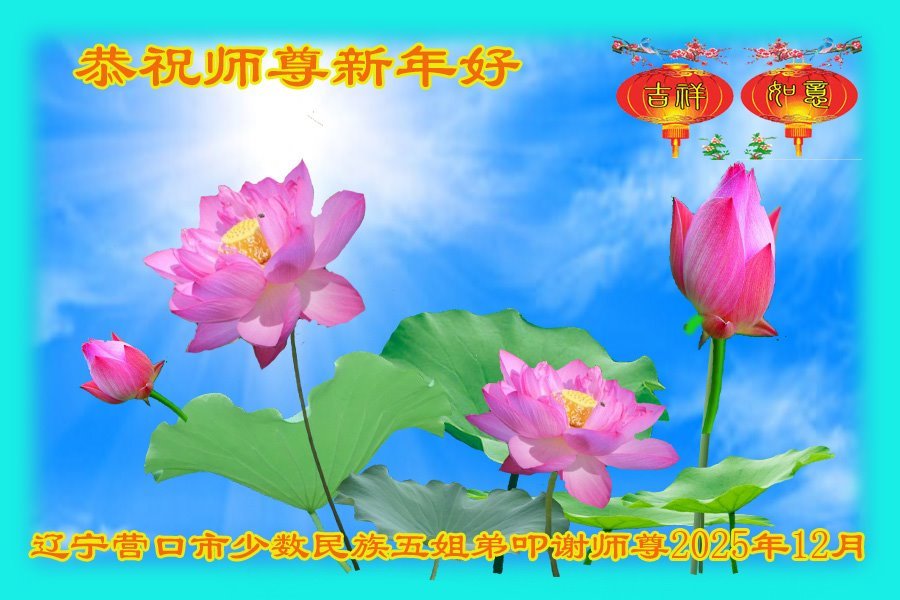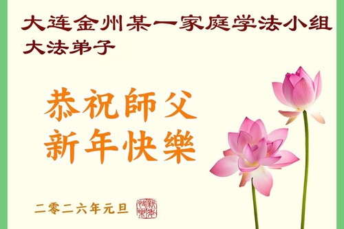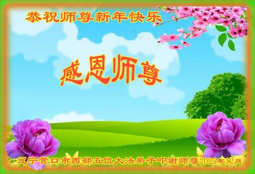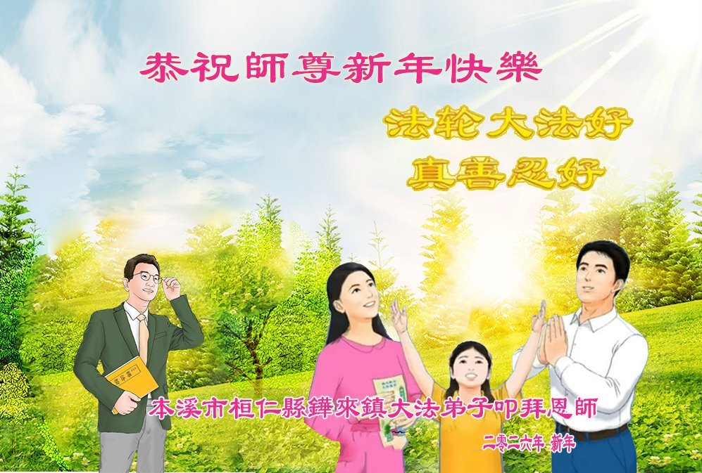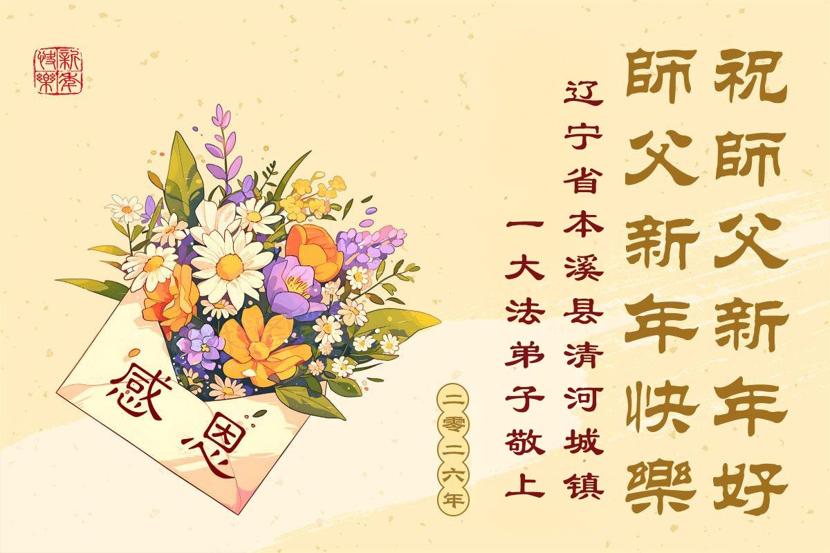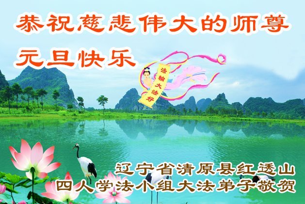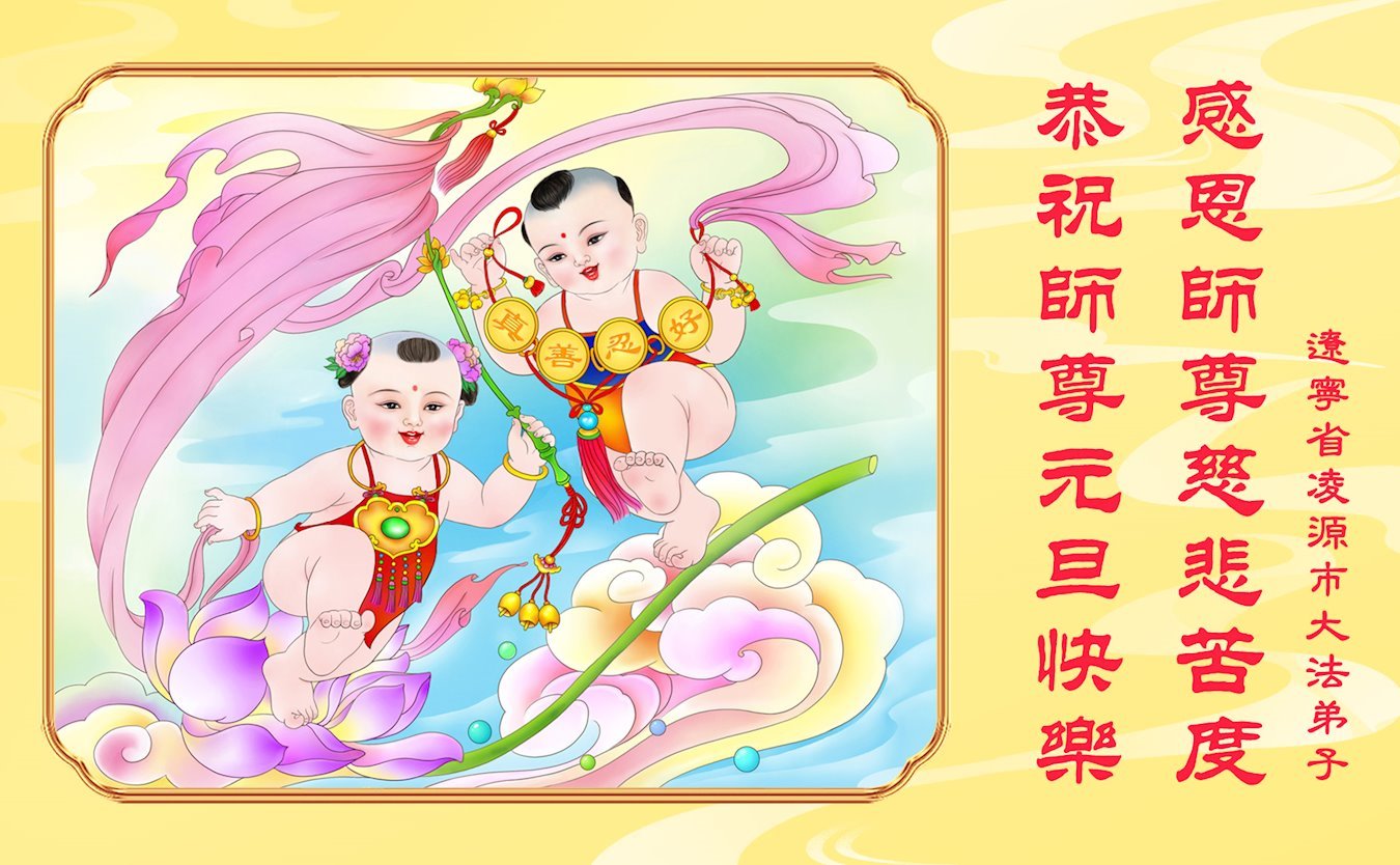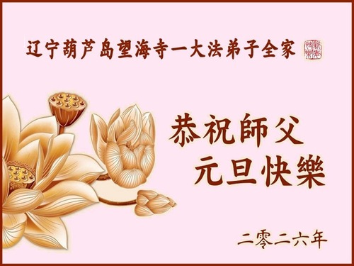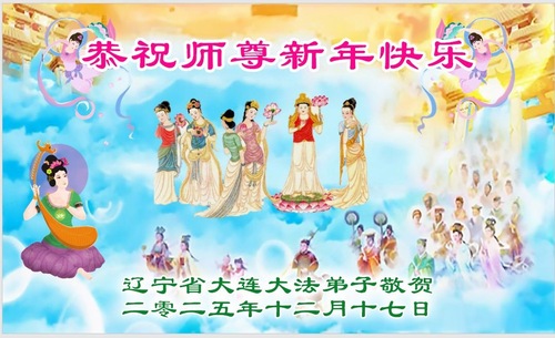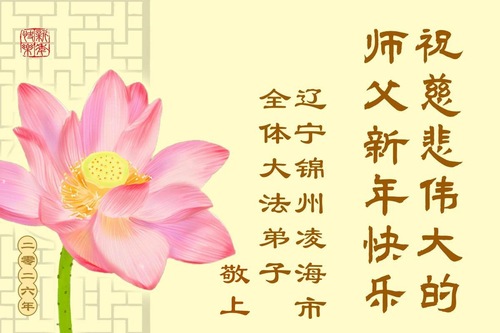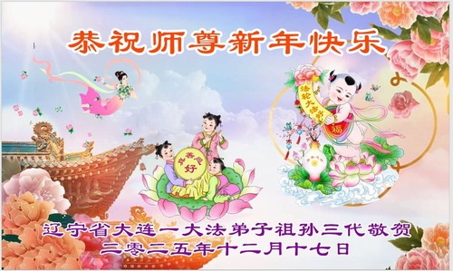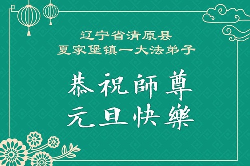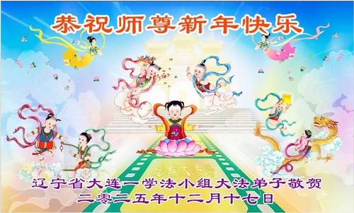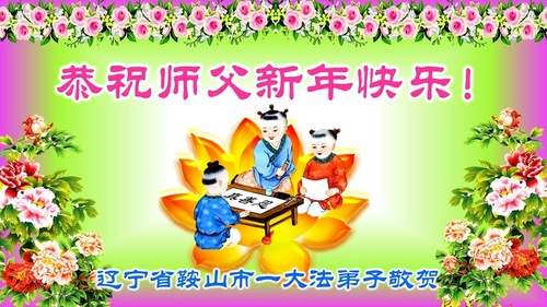 (Minghui.org) Zu Neujahr senden Falun-Dafa-Praktizierende auf der ganzen Welt traditionell Neujahrsgrüße, Grußkarten, Gedichte und Fotos an die Minghui-Website. Damit wünschen sie ihrem verehrten Meister Li Hongzhi ein frohes neues Jahr und bringen dem Meister ihre Dankbarkeit für die barmherzige Errettung zum Ausdruck. Sie geloben, in ihrer Kultivierung fleißig voranzukommen und noch mehr Lebewesen zu erretten. Im Folgenden veröffentlichen wir einen Teil dieser Grüße aus der Provinz Liaoning: