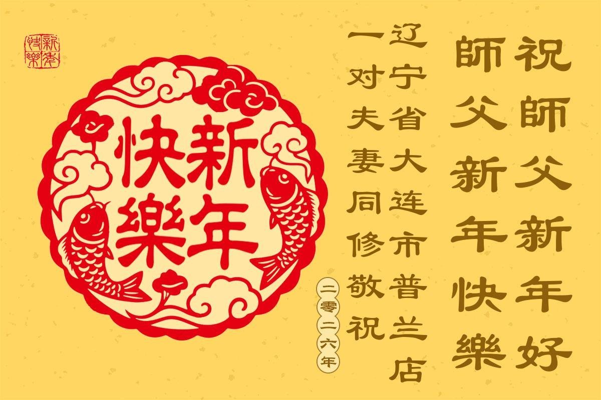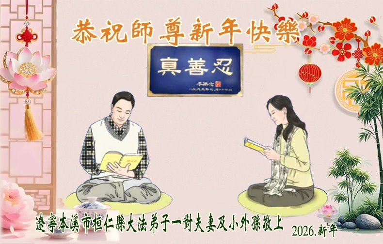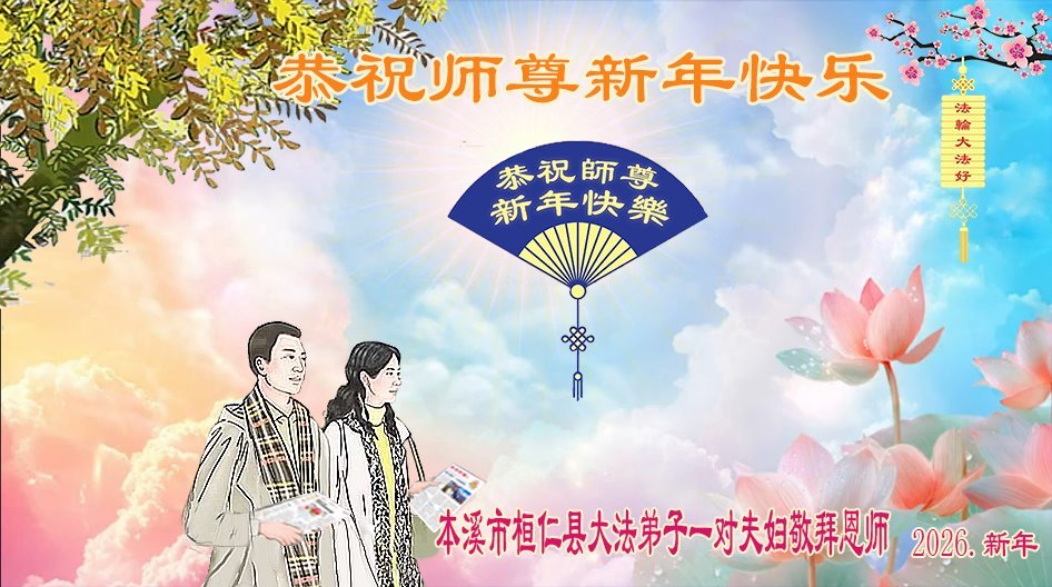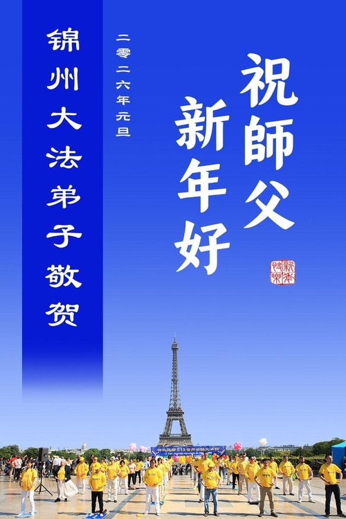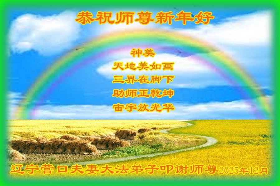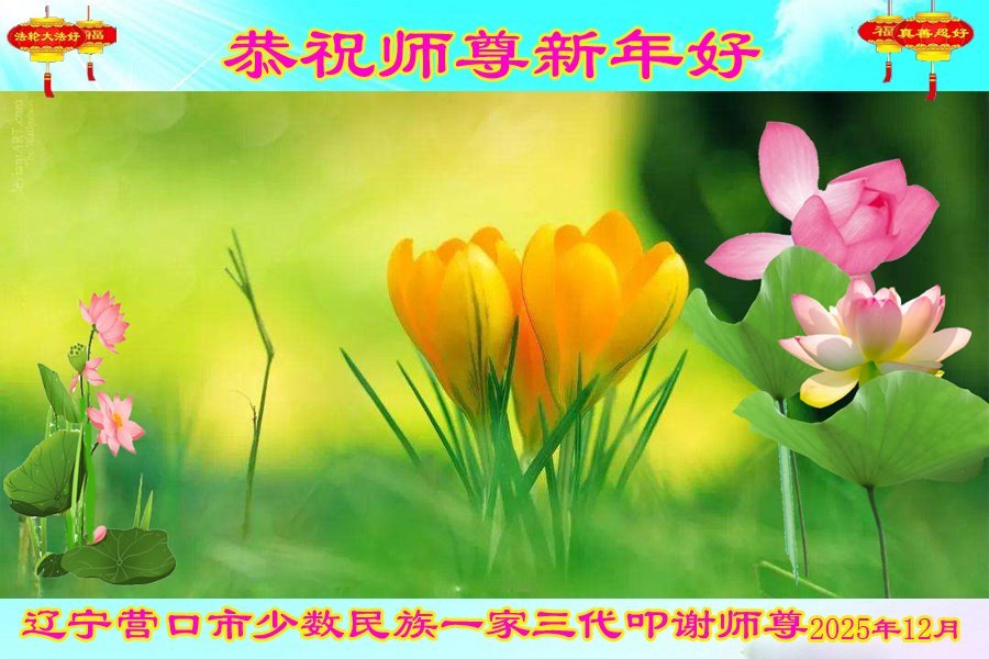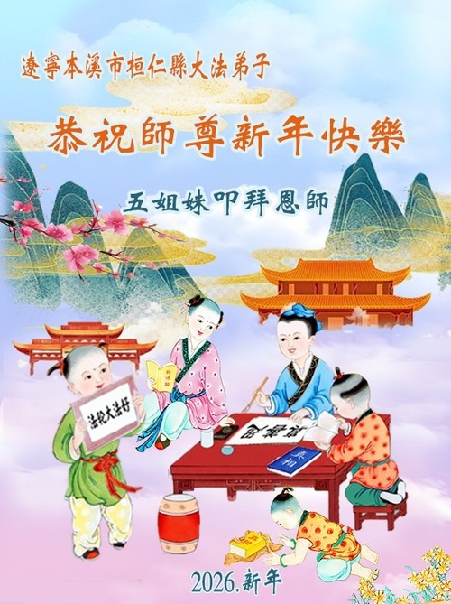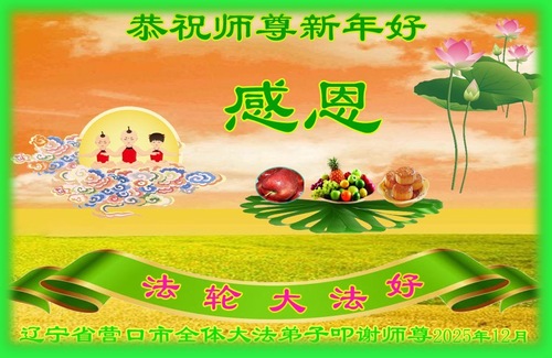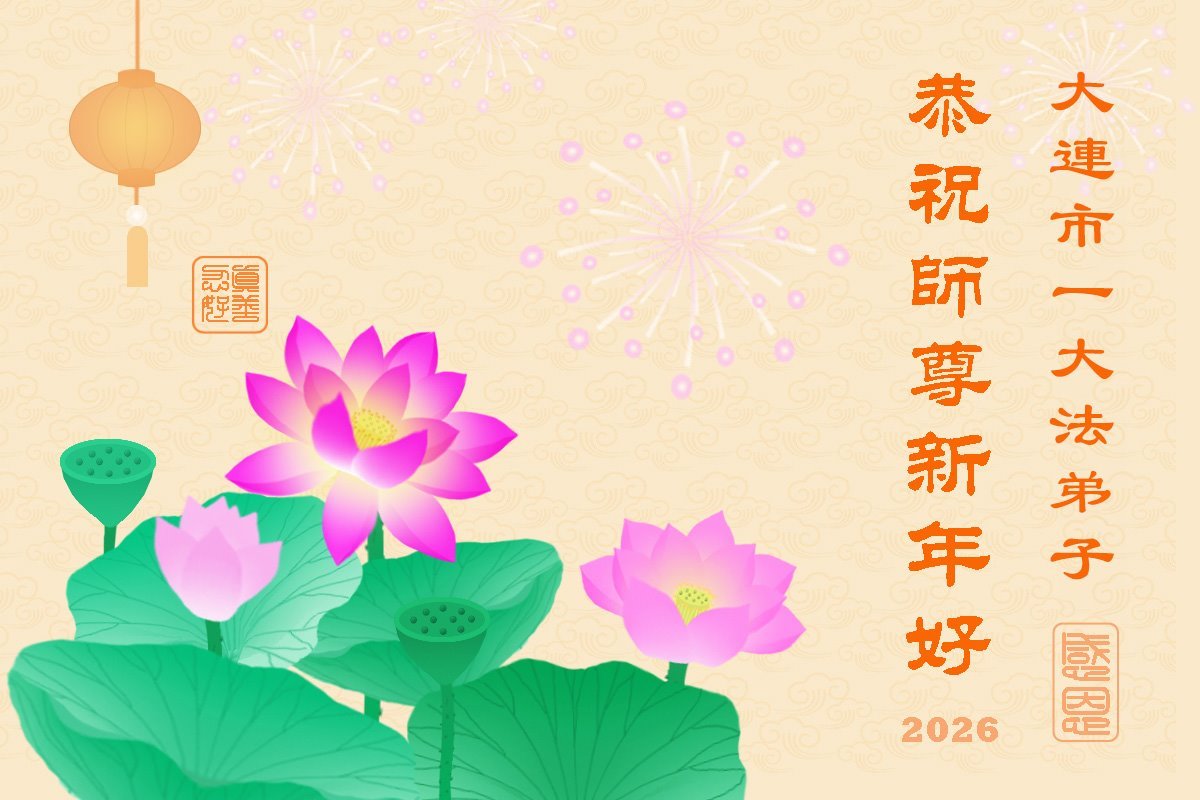 (Minghui.org) Zu Neujahr senden Falun-Dafa-Praktizierende auf der ganzen Welt traditionell Neujahrsgrüße, Grußkarten, Gedichte und Fotos an die Minghui-Website. Damit wünschen sie ihrem verehrten Meister Li Hongzhi ein frohes neues Jahr und bringen dem Meister ihre Dankbarkeit für die barmherzige Errettung zum Ausdruck. Sie geloben, in ihrer Kultivierung fleißig voranzukommen und noch mehr Lebewesen zu erretten. Im Folgenden veröffentlichen wir einen Teil dieser Grüße aus der Provinz Liaoning: