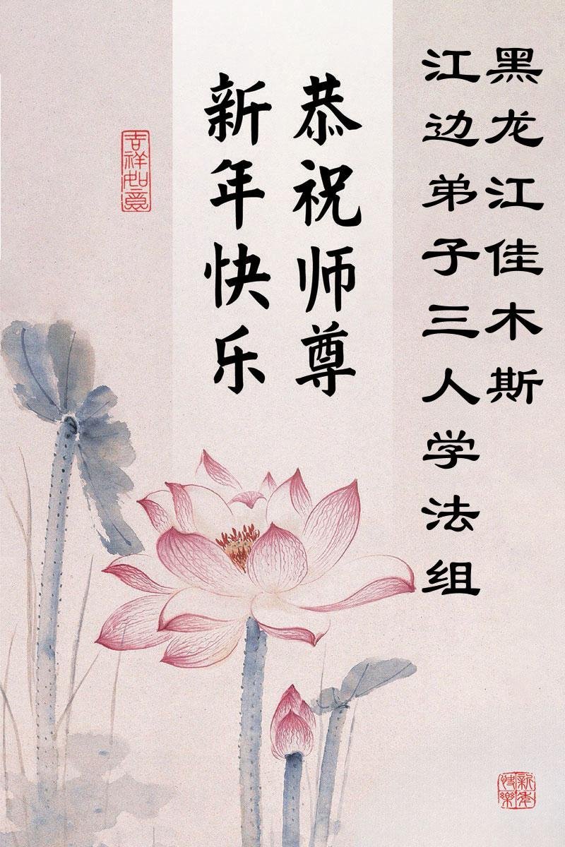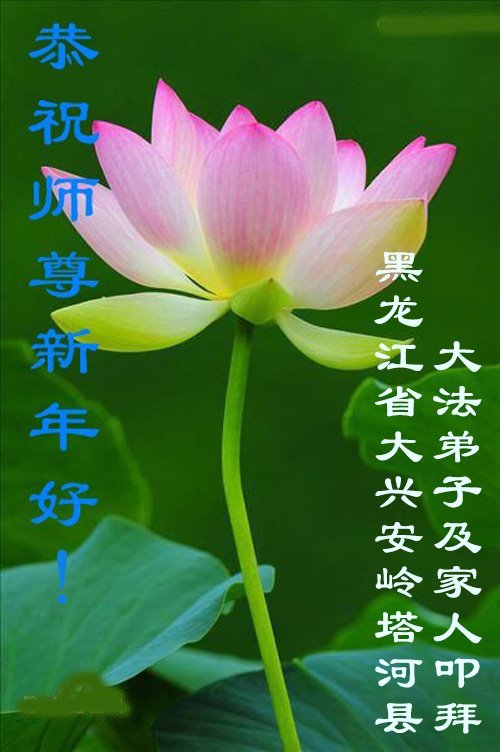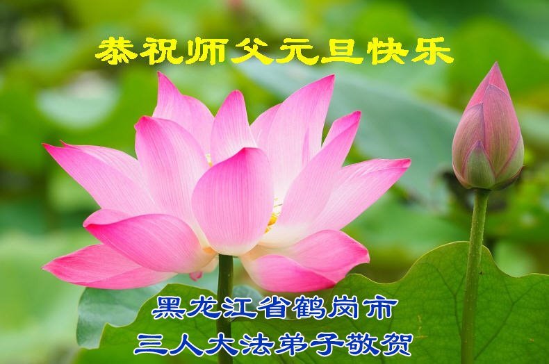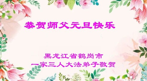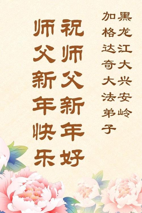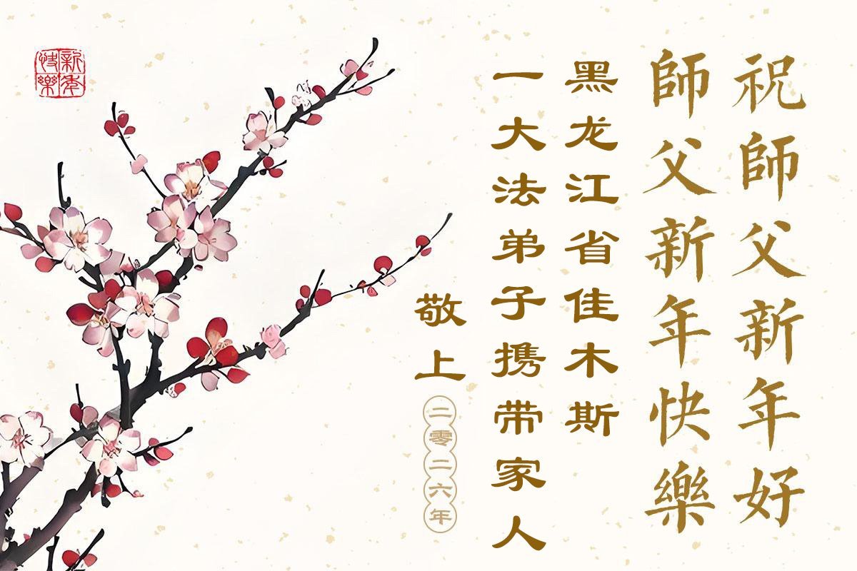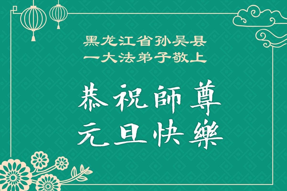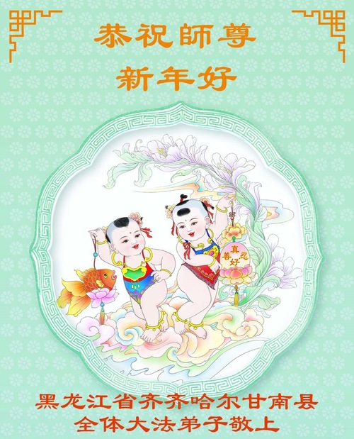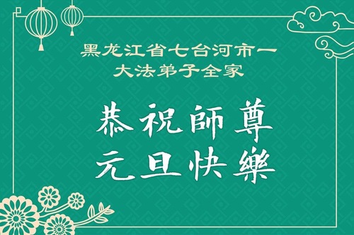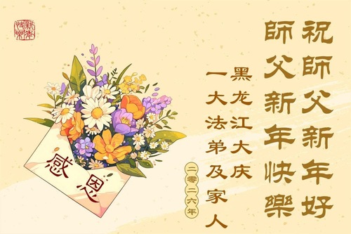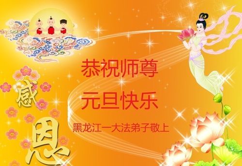 (Minghui.org) Zu Neujahr senden Falun-Dafa-Praktizierende auf der ganzen Welt traditionell Neujahrsgrüße, Grußkarten, Gedichte und Fotos an die Minghui-Website. Damit wünschen sie ihrem verehrten Meister Li Hongzhi ein frohes neues Jahr und bringen dem Meister ihre Dankbarkeit für die barmherzige Errettung zum Ausdruck. Sie geloben, in ihrer Kultivierung fleißig voranzukommen und noch mehr Lebewesen zu erretten. Im Folgenden veröffentlichen wir einen Teil dieser Grüße aus Heilongjiang: