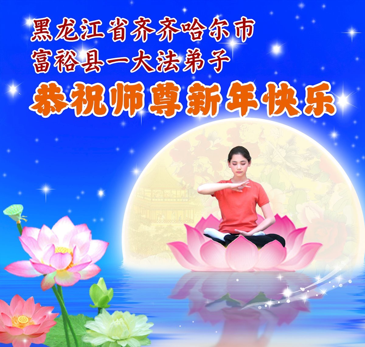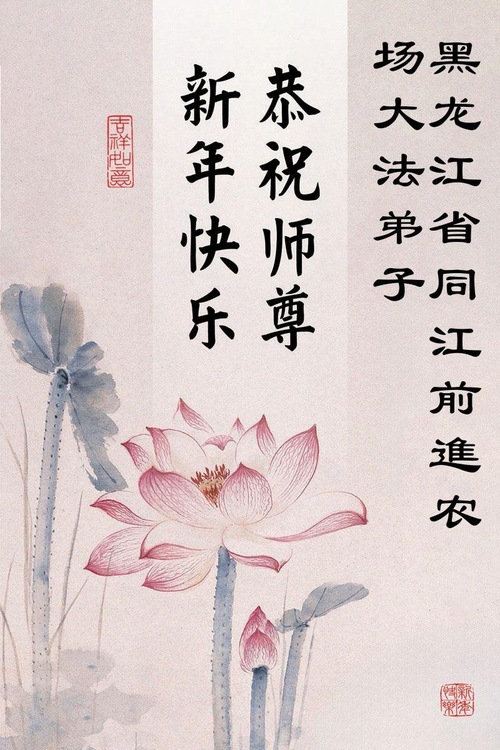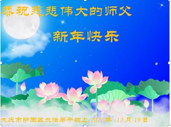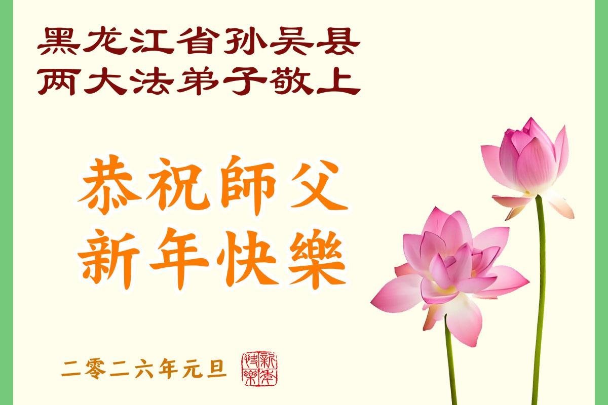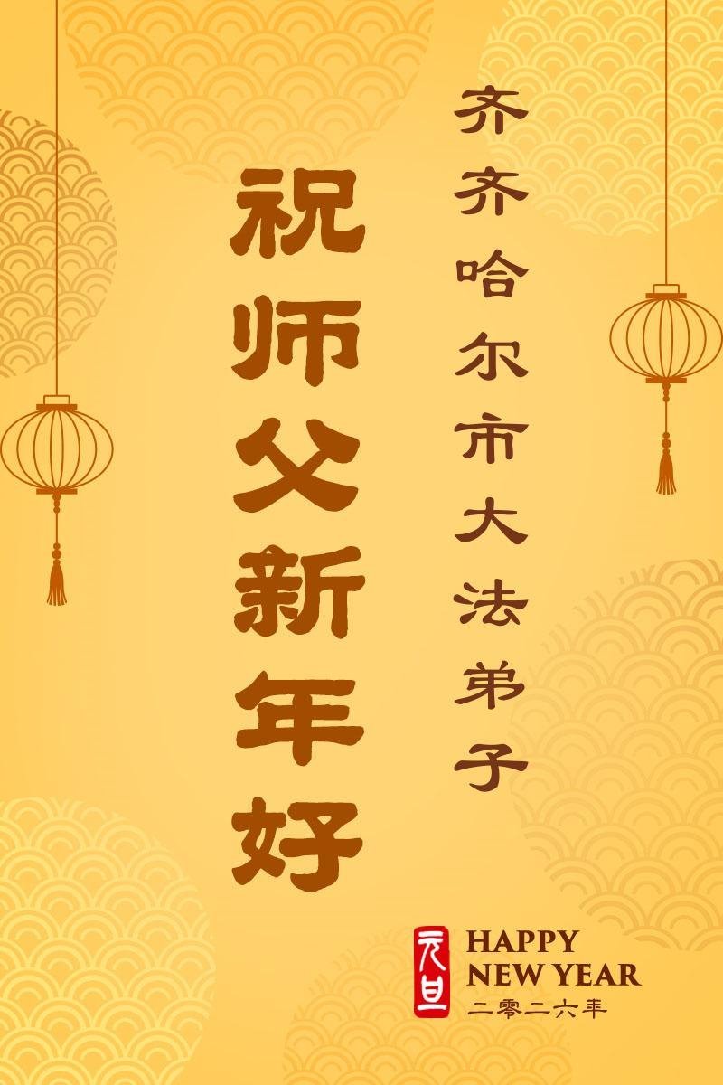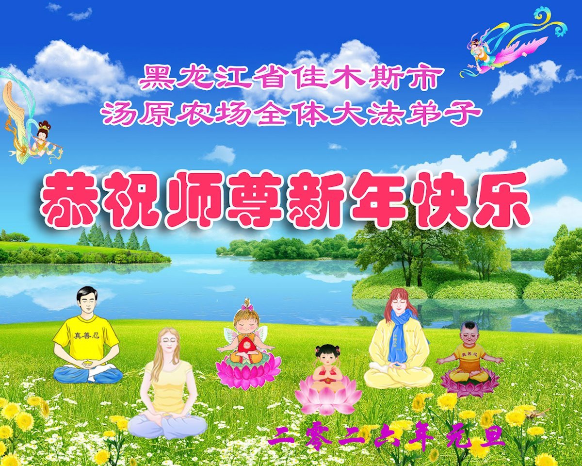 (Minghui.org) Zu Neujahr senden Falun-Dafa-Praktizierende auf der ganzen Welt traditionell Neujahrsgrüße, Grußkarten, Gedichte und Fotos an die Minghui-Website. Damit wünschen sie ihrem verehrten Meister Li Hongzhi ein frohes neues Jahr und bringen dem Meister ihre Dankbarkeit für die barmherzige Errettung zum Ausdruck. Sie geloben, in ihrer Kultivierung fleißig voranzukommen und noch mehr Lebewesen zu erretten. Im Folgenden veröffentlichen wir einen Teil dieser Grüße aus Heilongjiang: