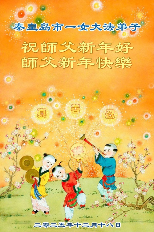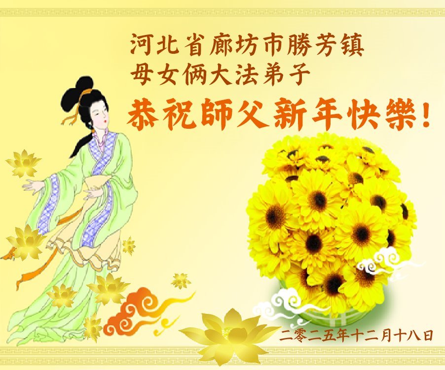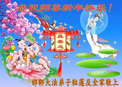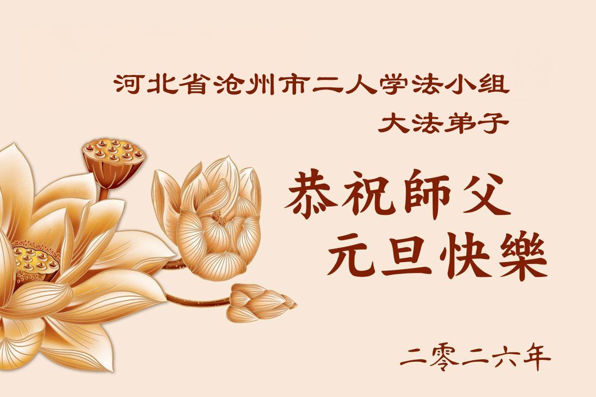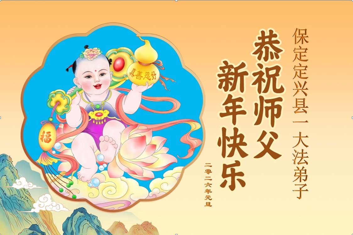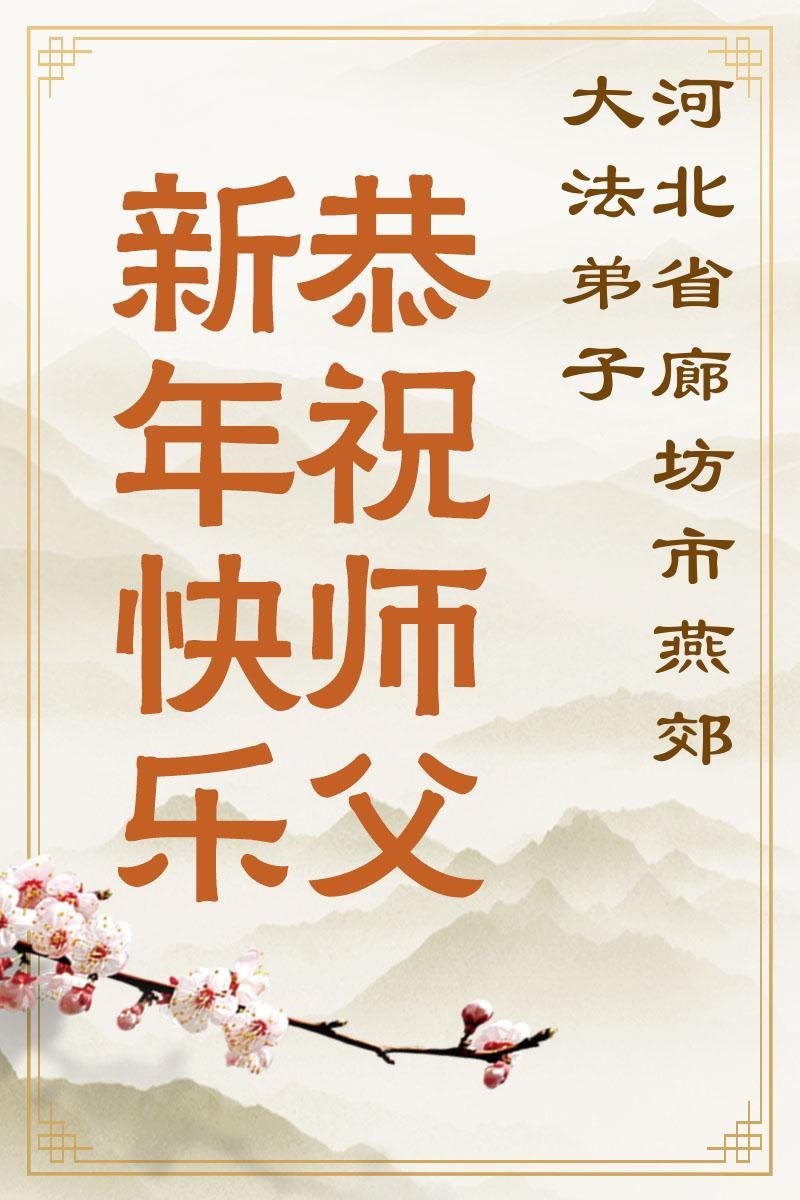 (Minghui.org) Zu Neujahr senden Falun-Dafa-Praktizierende auf der ganzen Welt traditionell Neujahrsgrüße, Grußkarten, Gedichte und Fotos an die Minghui-Website. Damit wünschen sie ihrem verehrten Meister Li Hongzhi ein frohes neues Jahr und bringen dem Meister ihre Dankbarkeit für die barmherzige Errettung zum Ausdruck. Sie geloben, in ihrer Kultivierung fleißig voranzukommen und noch mehr Lebewesen zu erretten. Im Folgenden veröffentlichen wir einen Teil dieser Grüße aus Hebei: