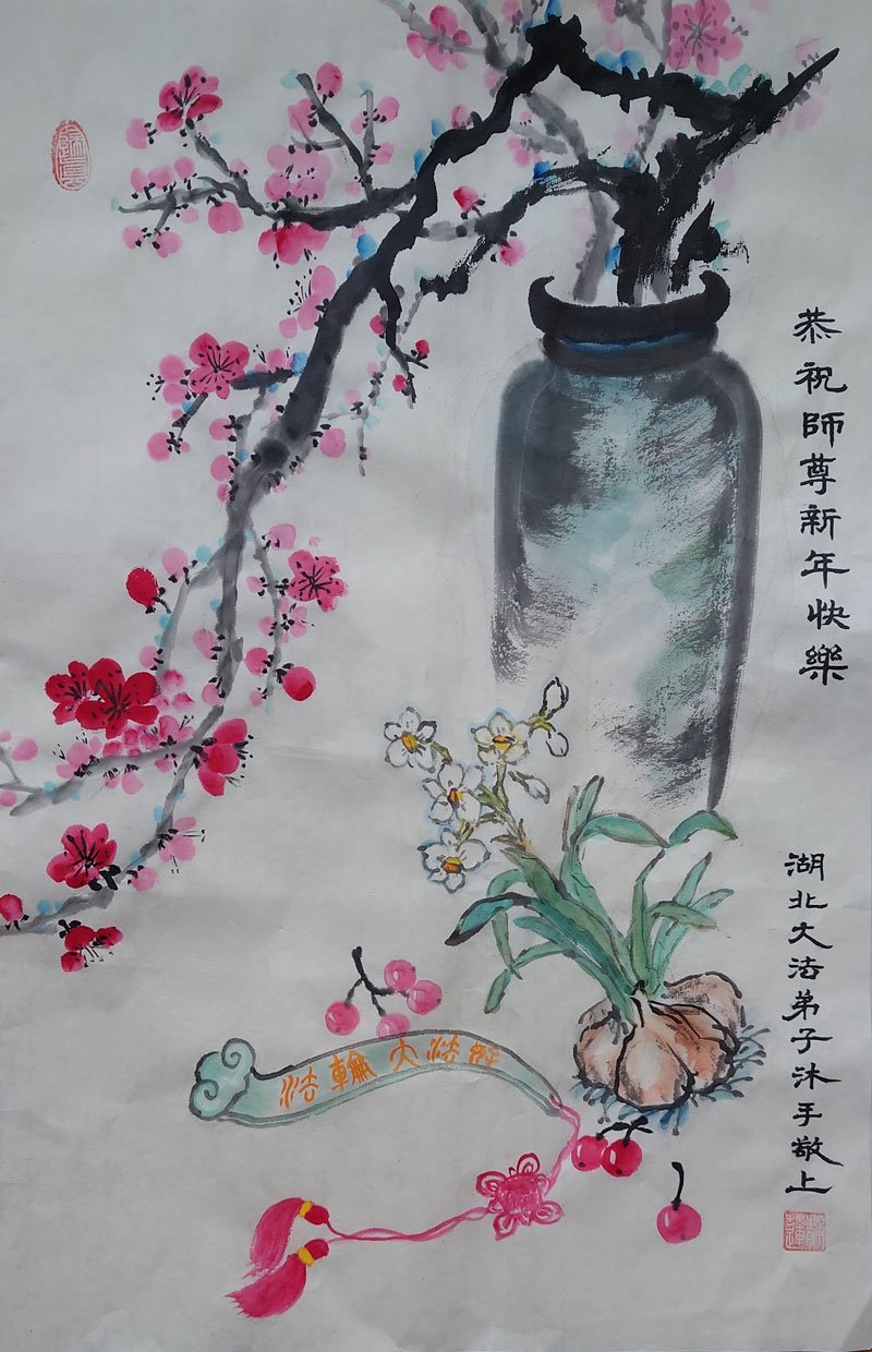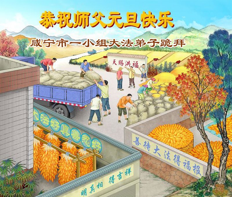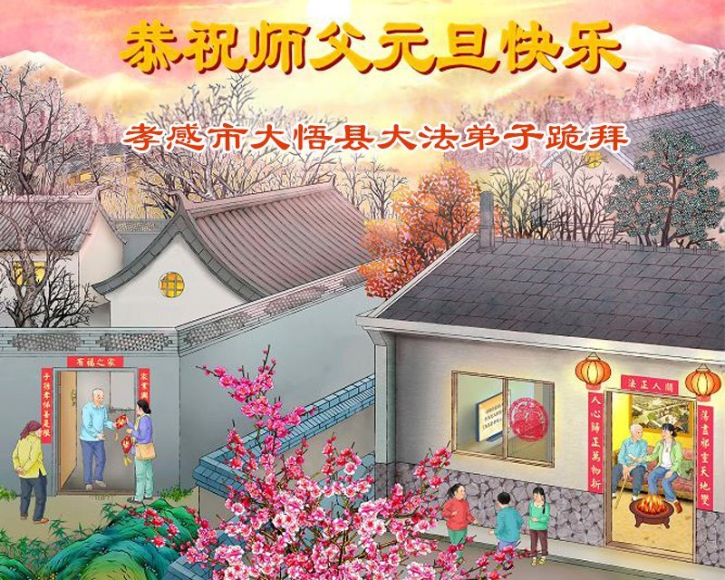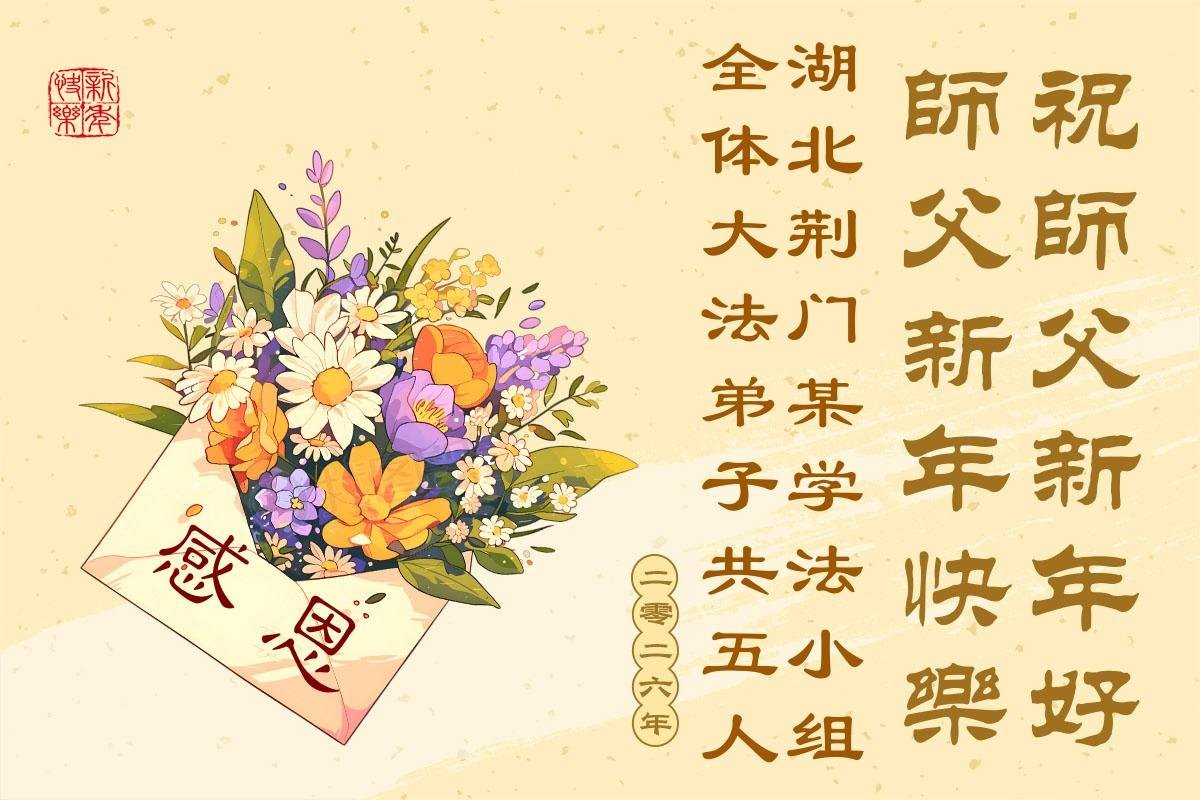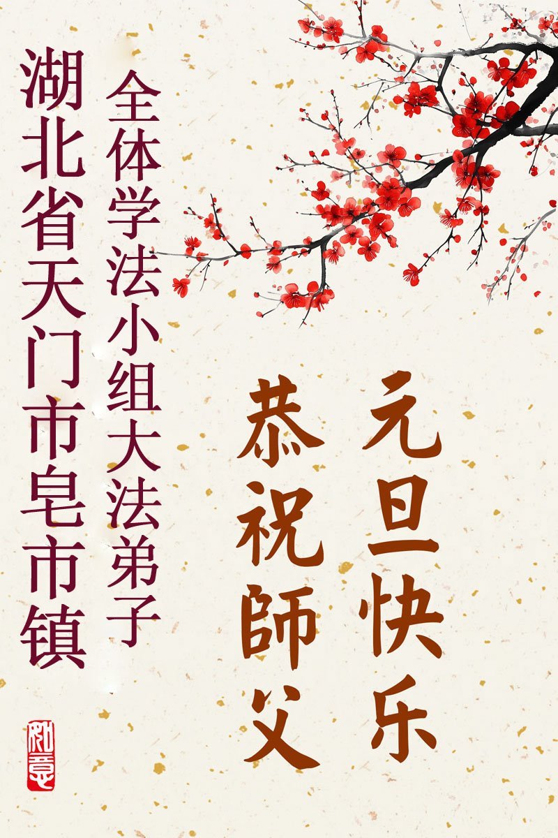 (Minghui.org) Zu Neujahr senden Falun-Dafa-Praktizierende auf der ganzen Welt traditionell Neujahrsgrüße, Grußkarten, Gedichte und Fotos an die Minghui-Website. Damit wünschen sie ihrem verehrten Meister Li Hongzhi ein frohes neues Jahr und bringen dem Meister ihre Dankbarkeit für die barmherzige Errettung zum Ausdruck. Sie geloben, in ihrer Kultivierung fleißig voranzukommen und noch mehr Lebewesen zu erretten. Im Folgenden veröffentlichen wir einen Teil dieser Grüße aus Hubei: