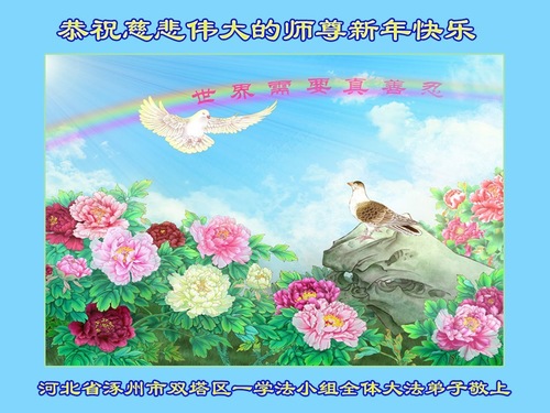 (Minghui.org) Zu Neujahr senden Falun-Dafa-Praktizierende auf der ganzen Welt traditionell Neujahrsgrüße, Grußkarten, Gedichte und Fotos an die Minghui-Website. Damit wünschen sie ihrem verehrten Meister Li Hongzhi ein frohes neues Jahr und bringen dem Meister ihre Dankbarkeit für die barmherzige Errettung zum Ausdruck. Sie geloben, in ihrer Kultivierung fleißig voranzukommen und noch mehr Lebewesen zu erretten.