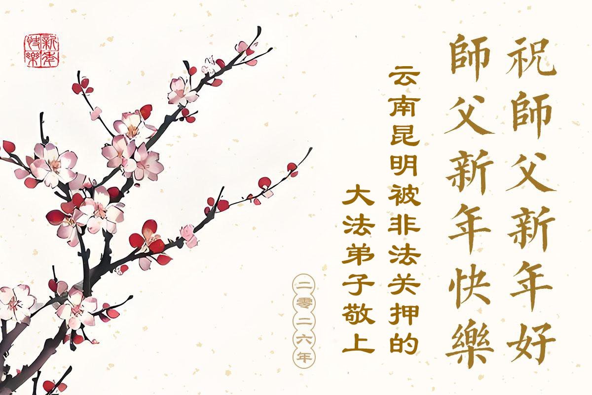 (Minghui.org) Zu Neujahr senden Falun-Dafa-Praktizierende auf der ganzen Welt traditionell Neujahrsgrüße, Grußkarten, Gedichte und Fotos an die Minghui-Website. Damit wünschen sie ihrem verehrten Meister Li Hongzhi ein frohes neues Jahr und bringen dem Meister ihre Dankbarkeit für die barmherzige Errettung zum Ausdruck. Sie geloben, in ihrer Kultivierung fleißig voranzukommen und noch mehr Lebewesen zu erretten.