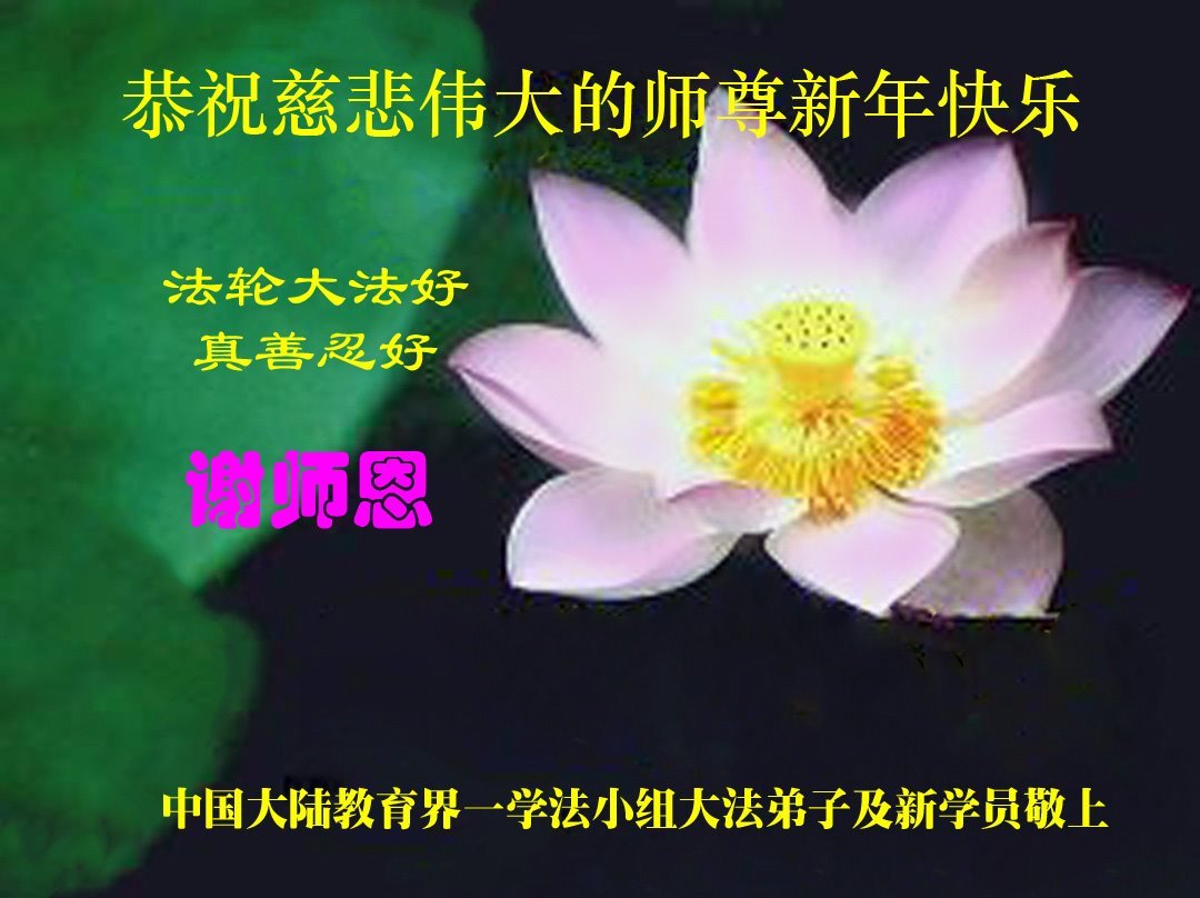 (Minghui.org) Zu Neujahr senden Falun-Dafa-Praktizierende auf der ganzen Welt traditionell Neujahrsgrüße, Grußkarten, Gedichte und Fotos an die Minghui-Website. Damit wünschen sie ihrem verehrten Meister Li Hongzhi ein frohes neues Jahr und bringen dem Meister ihre Dankbarkeit für die barmherzige Errettung zum Ausdruck. Sie geloben, in ihrer Kultivierung fleißig voranzukommen und noch mehr Lebewesen zu erretten.