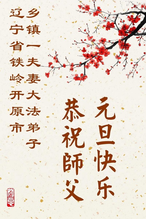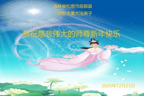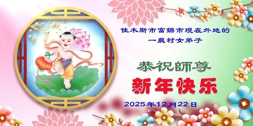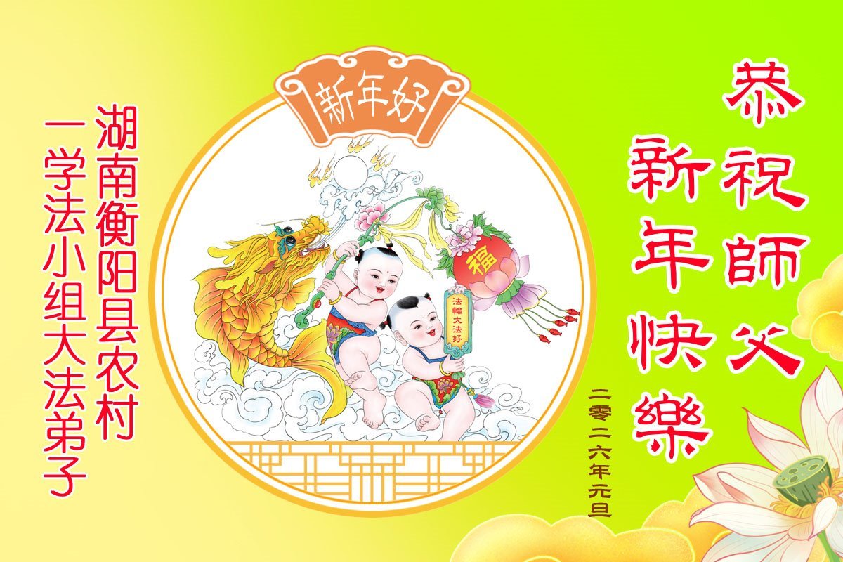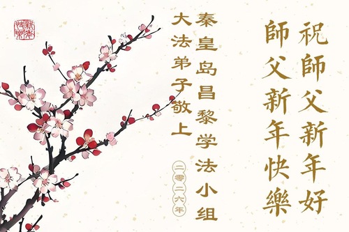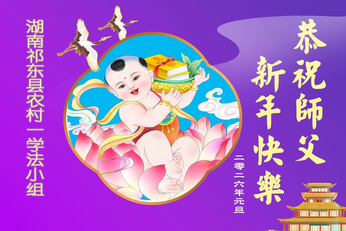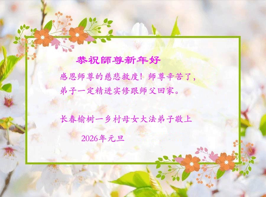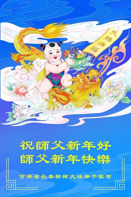 (Minghui.org) Zu Neujahr senden Falun-Dafa-Praktizierende auf der ganzen Welt traditionell Neujahrsgrüße, Grußkarten, Gedichte und Fotos an die Minghui-Website. Damit wünschen sie ihrem verehrten Meister Li Hongzhi ein frohes neues Jahr und bringen dem Meister ihre Dankbarkeit für die barmherzige Errettung zum Ausdruck. Sie geloben, in ihrer Kultivierung fleißig voranzukommen und noch mehr Lebewesen zu erretten. Im Folgenden veröffentlichen wir einen Teil dieser Grüße aus ländlichen Gebieten Chinas: