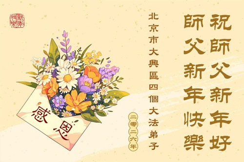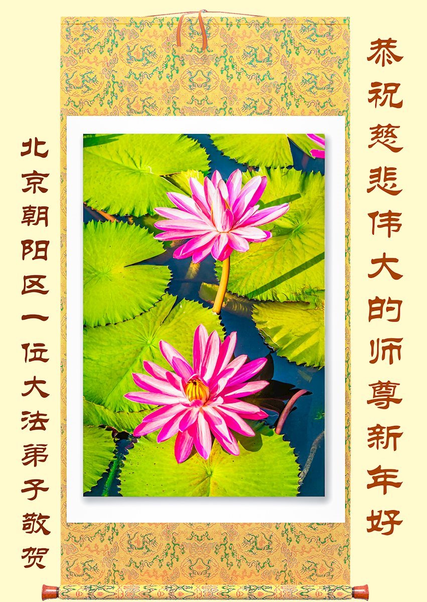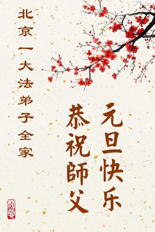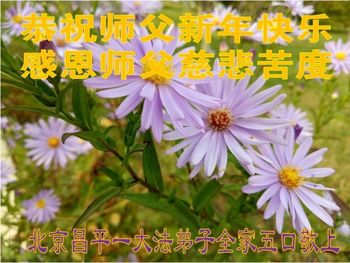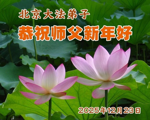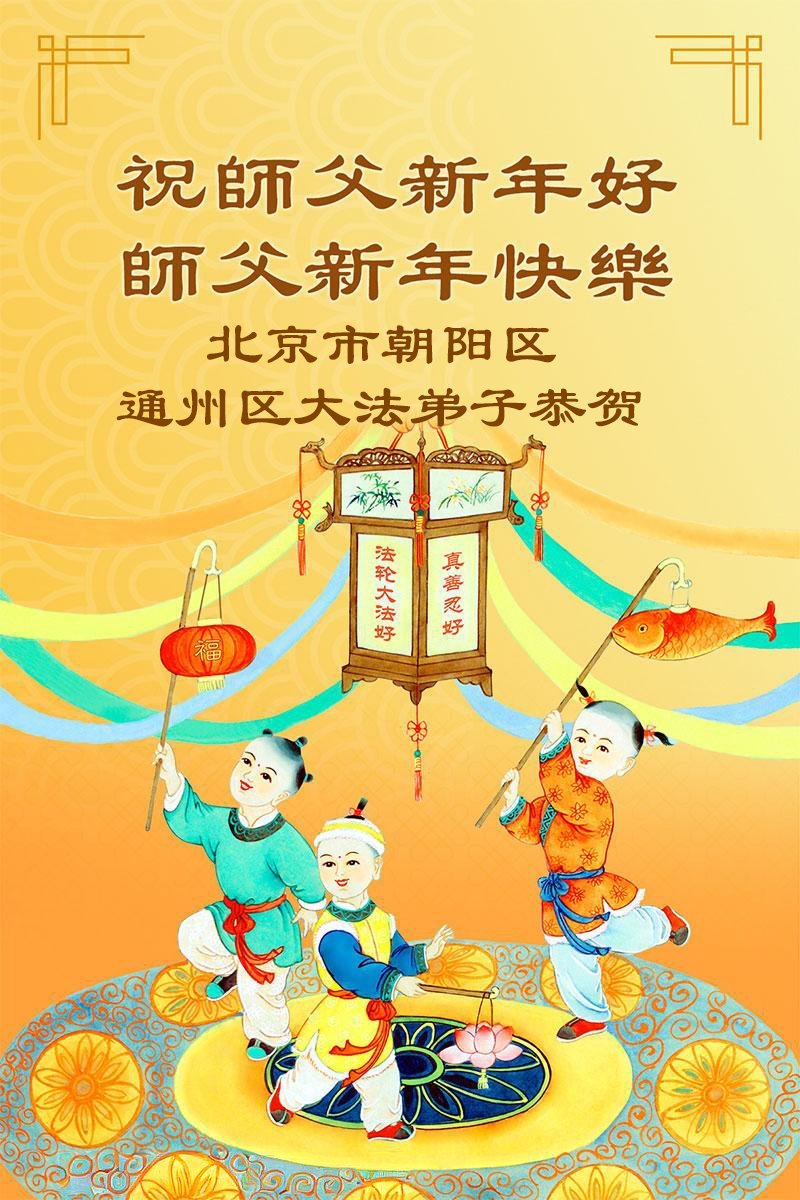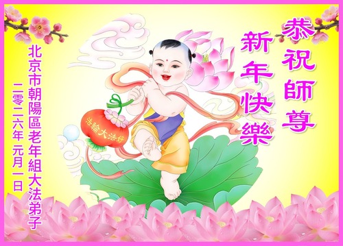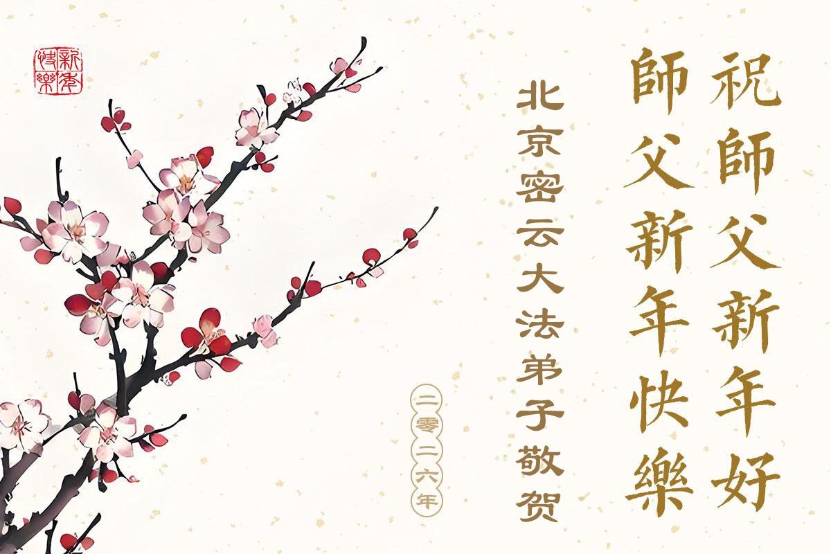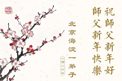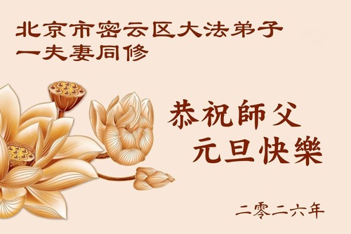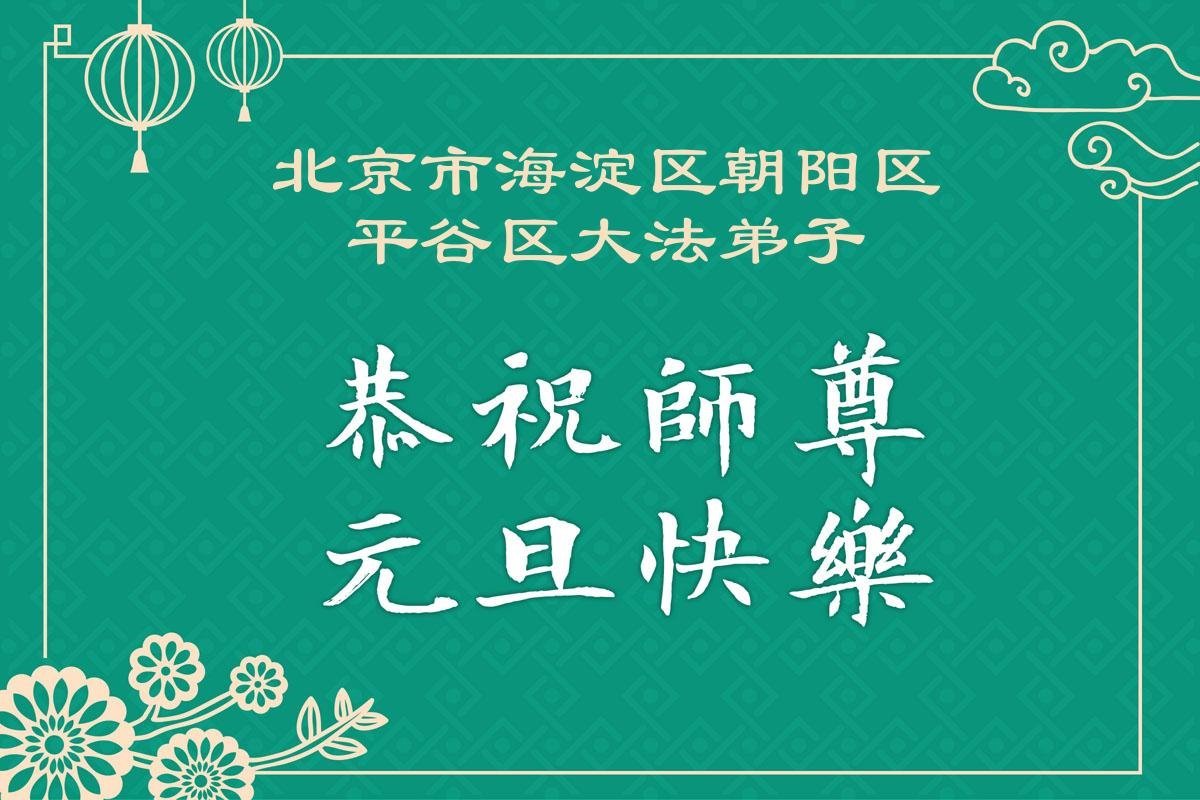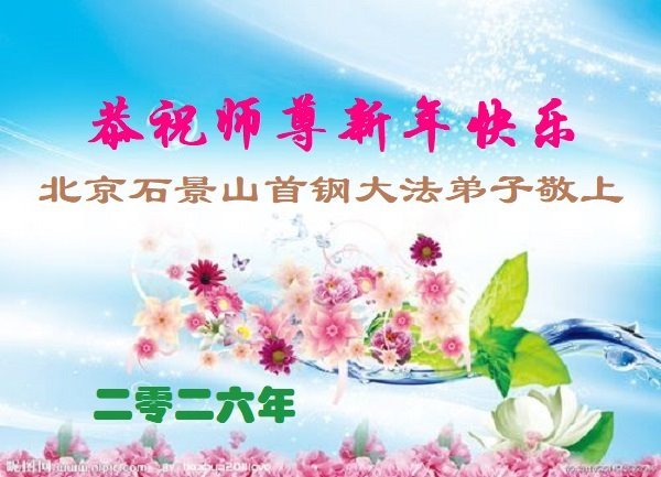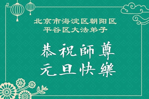 (Minghui.org) Zu Neujahr senden Falun-Dafa-Praktizierende auf der ganzen Welt traditionell Neujahrsgrüße, Grußkarten, Gedichte und Fotos an die Minghui-Website. Damit wünschen sie ihrem verehrten Meister Li Hongzhi ein frohes neues Jahr und bringen dem Meister ihre Dankbarkeit für die barmherzige Errettung zum Ausdruck. Sie geloben, in ihrer Kultivierung fleißig voranzukommen und noch mehr Lebewesen zu erretten. Im Folgenden veröffentlichen wir einen Teil dieser Grüße aus Peking: