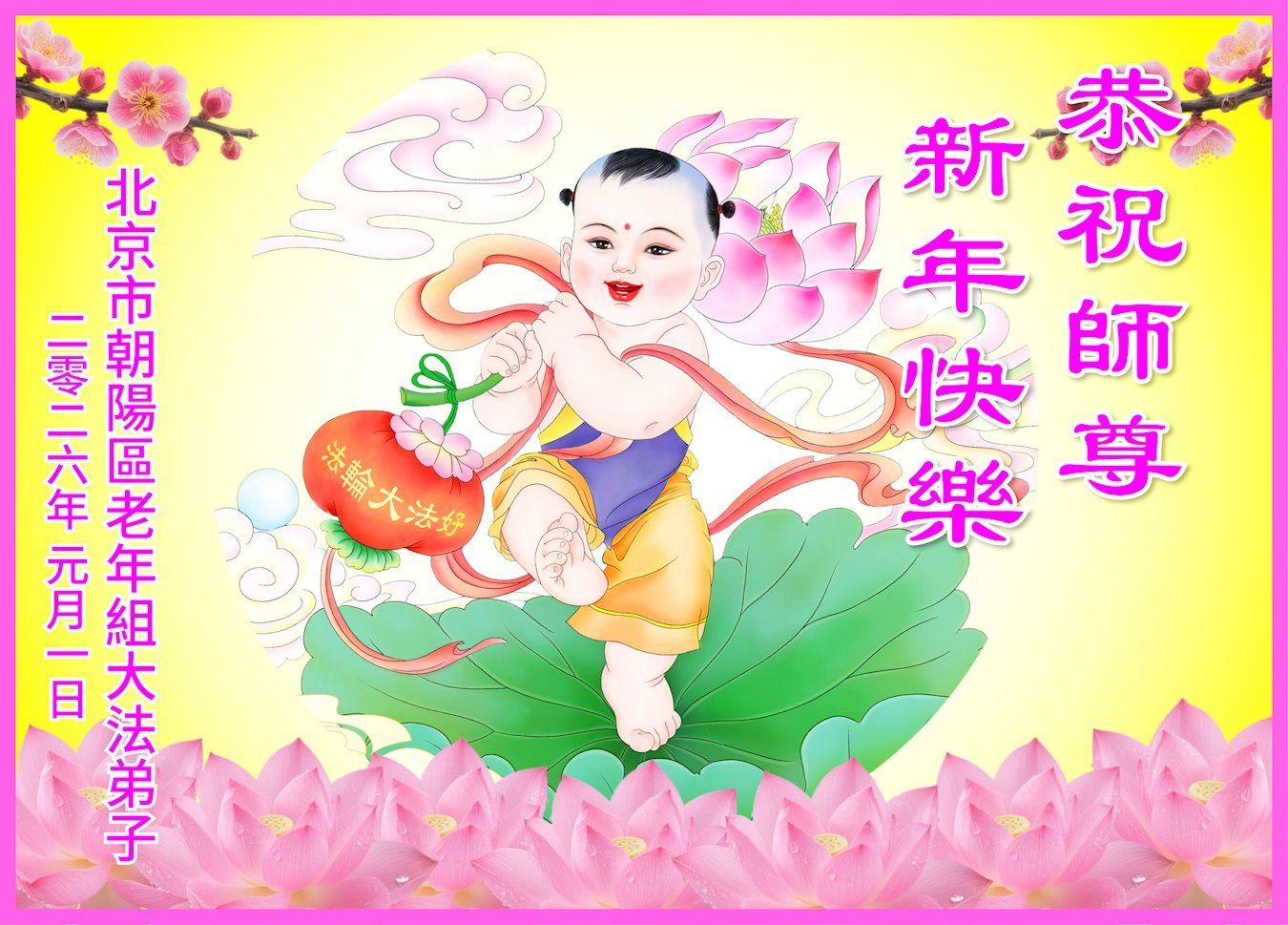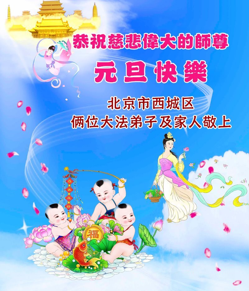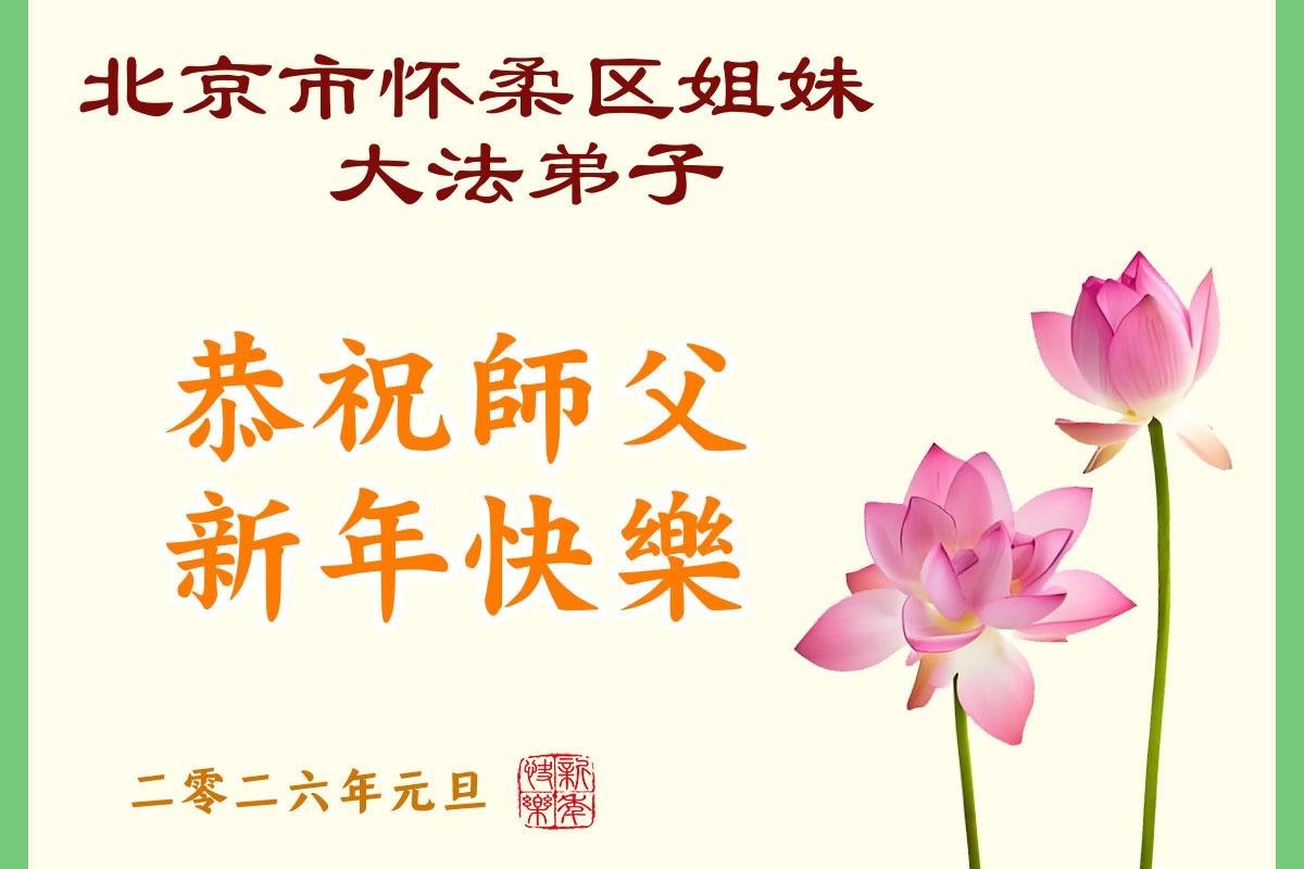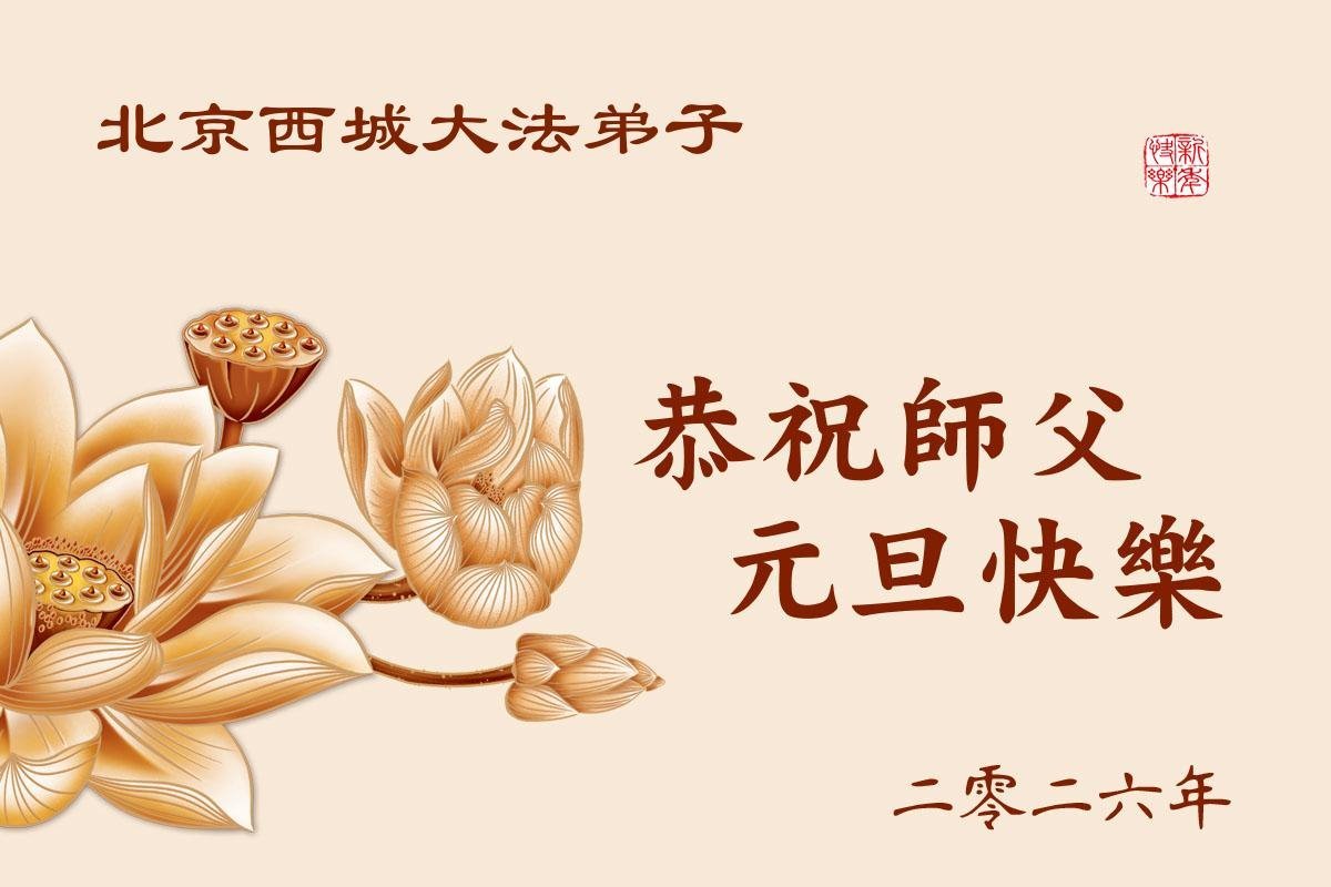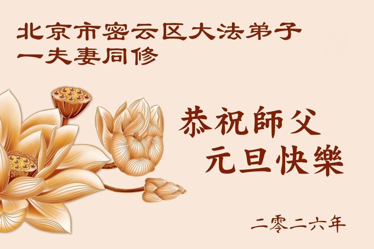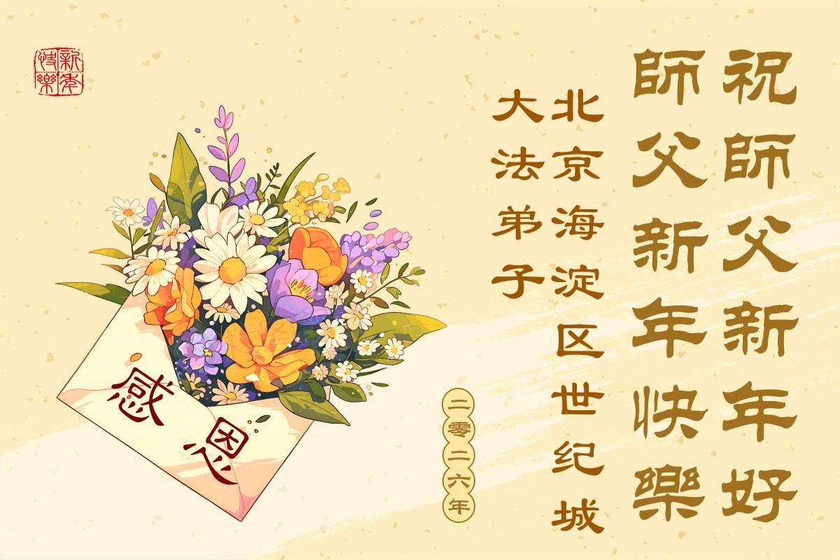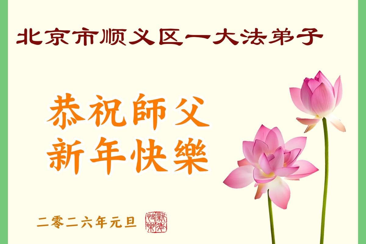 (Minghui.org) Zu Neujahr senden Falun-Dafa-Praktizierende auf der ganzen Welt traditionell Neujahrsgrüße, Grußkarten, Gedichte und Fotos an die Minghui-Website. Damit wünschen sie ihrem verehrten Meister Li Hongzhi ein frohes neues Jahr und bringen dem Meister ihre Dankbarkeit für die barmherzige Errettung zum Ausdruck. Sie geloben, in ihrer Kultivierung fleißig voranzukommen und noch mehr Lebewesen zu erretten. Im Folgenden veröffentlichen wir einen Teil dieser Grüße aus Peking: