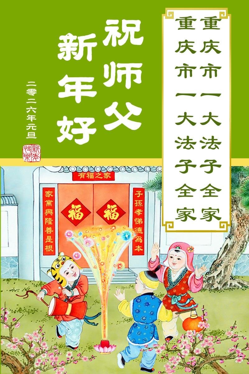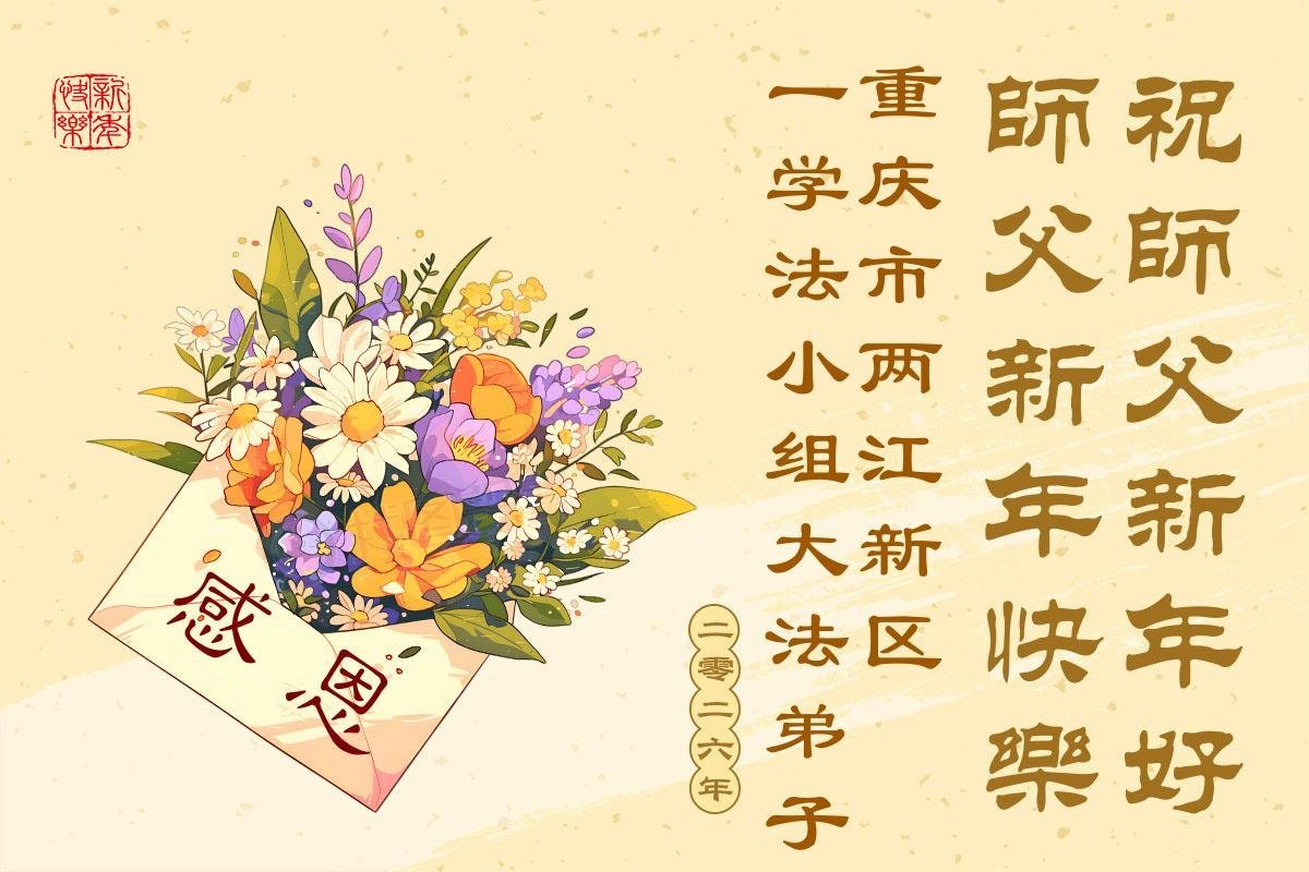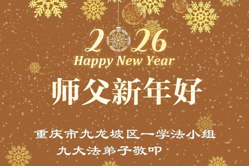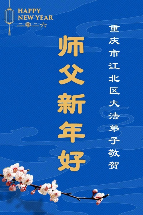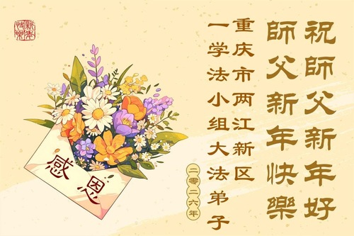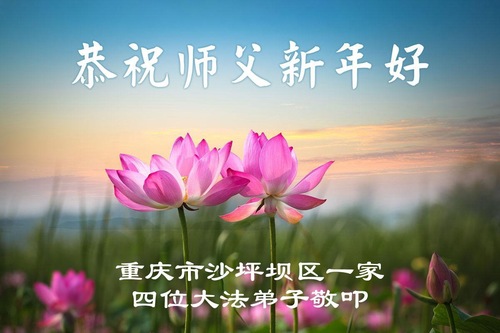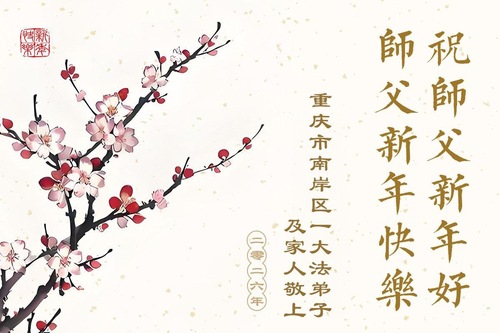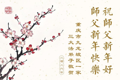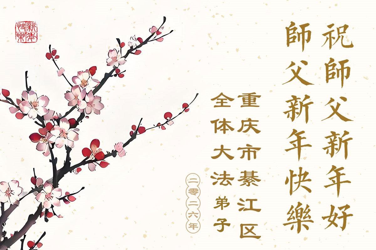 (Minghui.org) Zu Neujahr senden Falun-Dafa-Praktizierende auf der ganzen Welt traditionell Neujahrsgrüße, Grußkarten, Gedichte und Fotos an die Minghui-Website. Damit wünschen sie ihrem verehrten Meister Li Hongzhi ein frohes neues Jahr und bringen dem Meister ihre Dankbarkeit für die barmherzige Errettung zum Ausdruck. Sie geloben, in ihrer Kultivierung fleißig voranzukommen und noch mehr Lebewesen zu erretten. Im Folgenden veröffentlichen wir einen Teil dieser Grüße aus Chongqing: