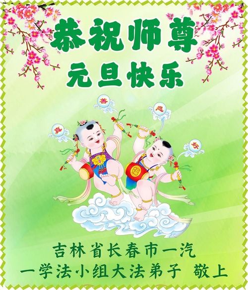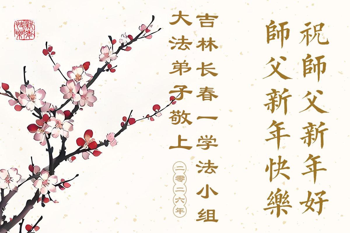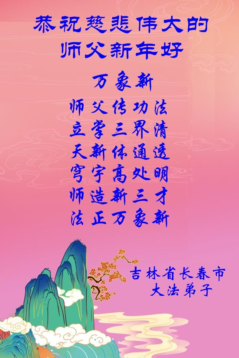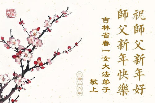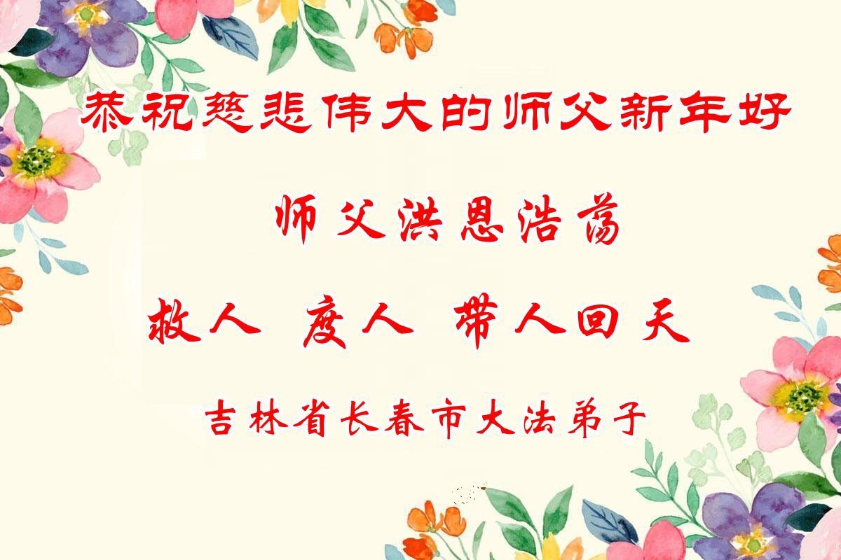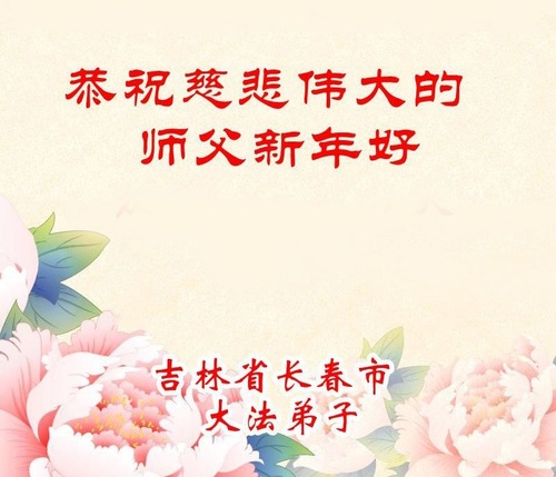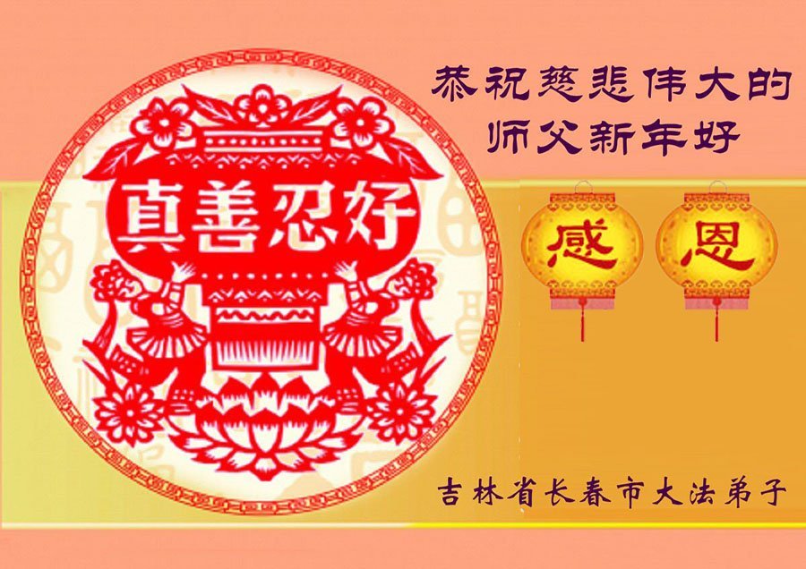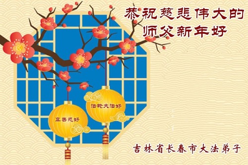 (Minghui.org) Zu Neujahr senden Falun-Dafa-Praktizierende auf der ganzen Welt traditionell Neujahrsgrüße, Grußkarten, Gedichte und Fotos an die Minghui-Website. Damit wünschen sie ihrem verehrten Meister Li Hongzhi ein frohes neues Jahr und bringen dem Meister ihre Dankbarkeit für die barmherzige Errettung zum Ausdruck. Sie geloben, in ihrer Kultivierung fleißig voranzukommen und noch mehr Lebewesen zu erretten. Im Folgenden veröffentlichen wir einen Teil dieser Grüße aus Changchun: