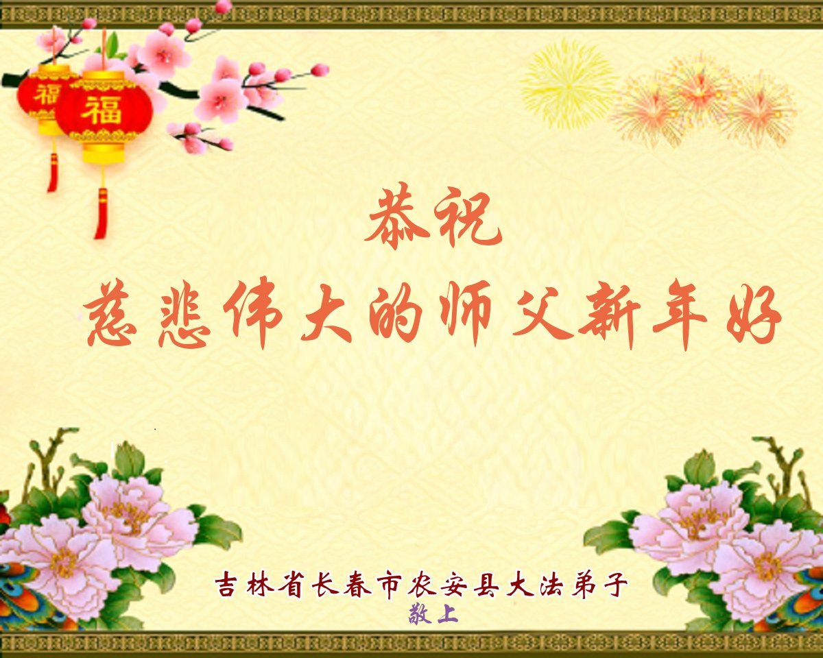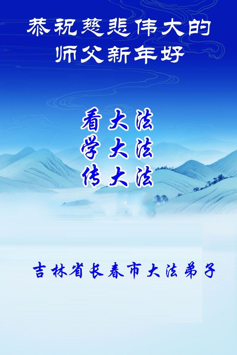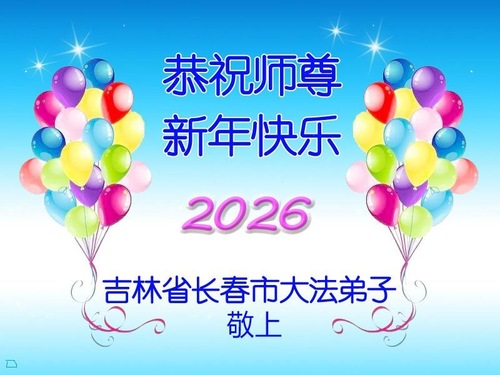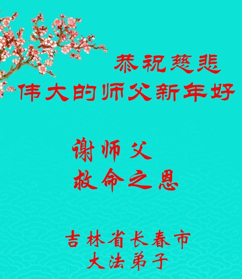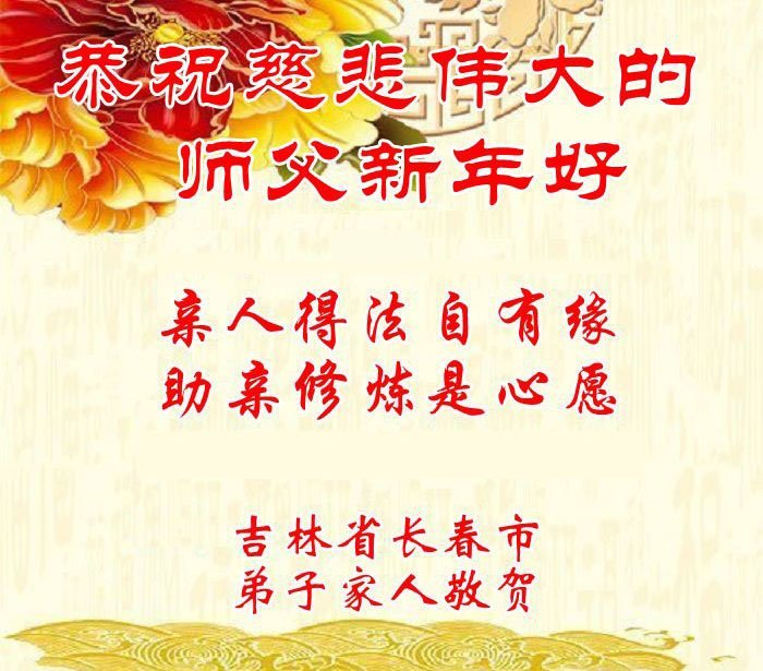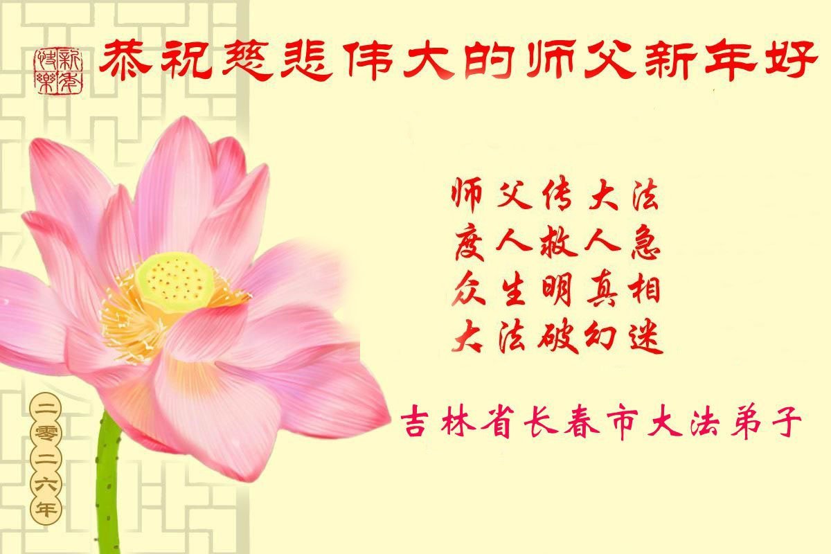 (Minghui.org) Zu Neujahr senden Falun-Dafa-Praktizierende auf der ganzen Welt traditionell Neujahrsgrüße, Grußkarten, Gedichte und Fotos an die Minghui-Website. Damit wünschen sie ihrem verehrten Meister Li Hongzhi ein frohes neues Jahr und bringen dem Meister ihre Dankbarkeit für die barmherzige Errettung zum Ausdruck. Sie geloben, in ihrer Kultivierung fleißig voranzukommen und noch mehr Lebewesen zu erretten. Im Folgenden veröffentlichen wir einen Teil dieser Grüße aus Changchun: