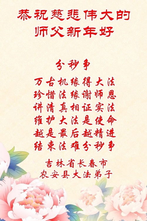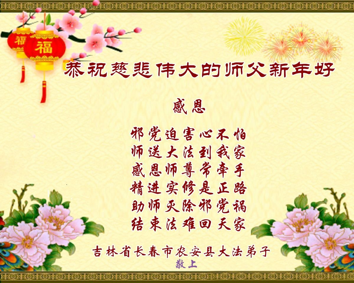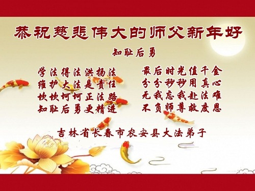Falun-Dafa-Praktizierende in der Stadt Changchun wünschen dem verehrten Meister respektvoll ein frohes neues Jahr (112 Grüße)