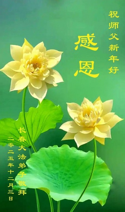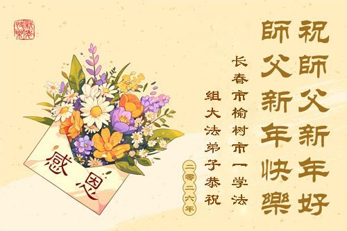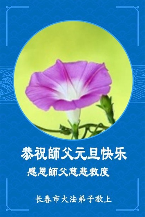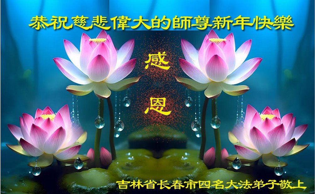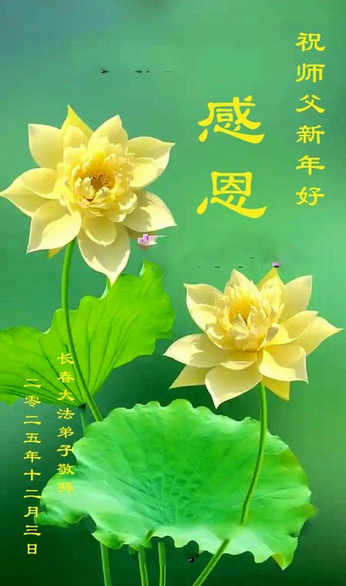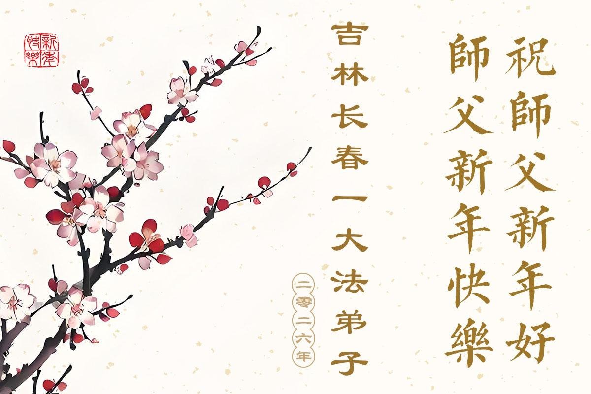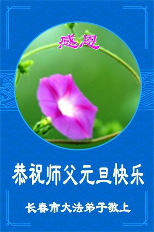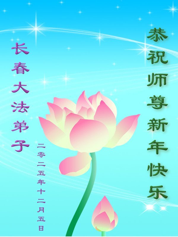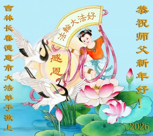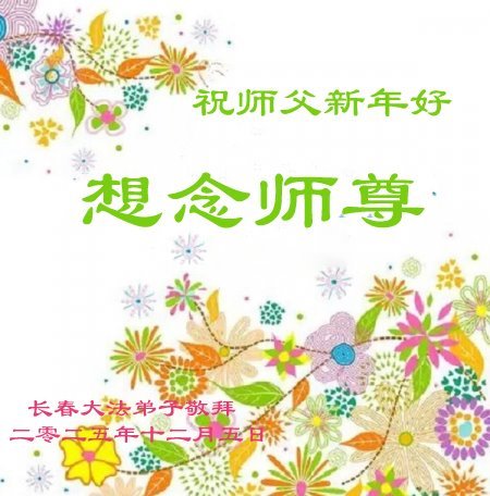 (Minghui.org) Zu Neujahr senden Falun-Dafa-Praktizierende auf der ganzen Welt traditionell Neujahrsgrüße, Grußkarten, Gedichte und Fotos an die Minghui-Website. Damit wünschen sie ihrem verehrten Meister Li Hongzhi ein frohes neues Jahr und bringen dem Meister ihre Dankbarkeit für die barmherzige Errettung zum Ausdruck. Sie geloben, in ihrer Kultivierung fleißig voranzukommen und noch mehr Lebewesen zu erretten. Im Folgenden veröffentlichen wir einen Teil dieser Grüße aus Changchun: