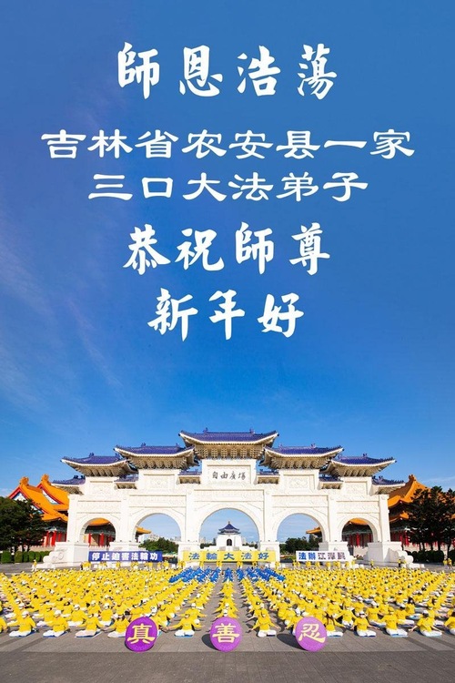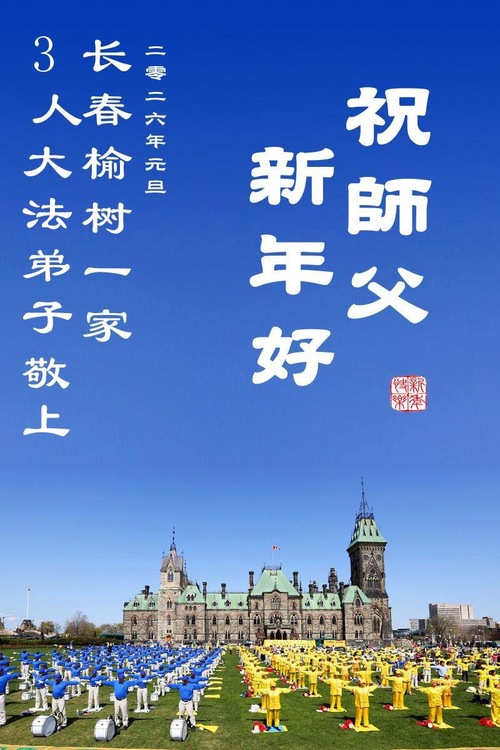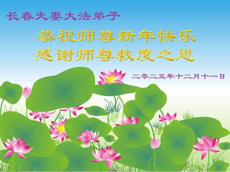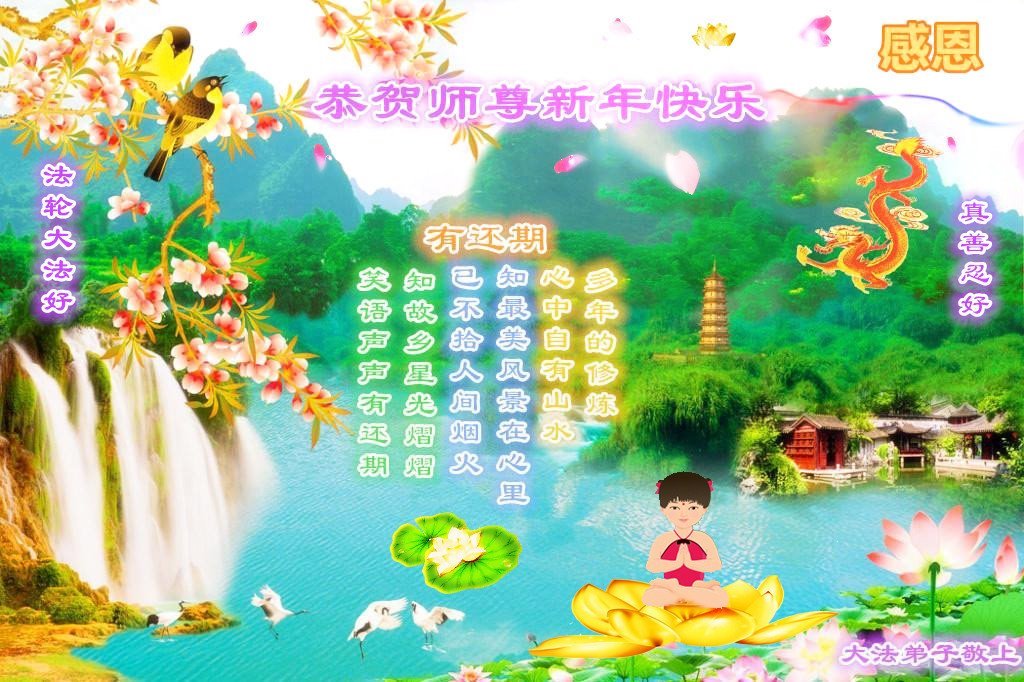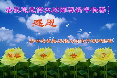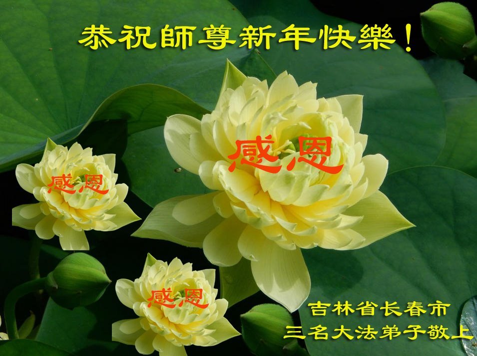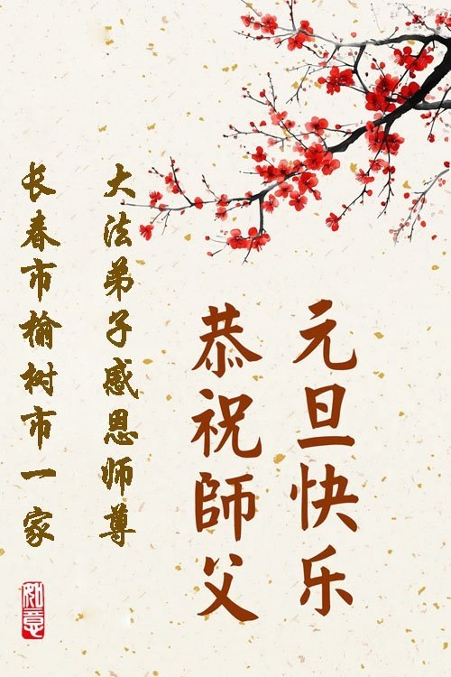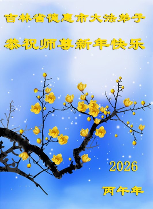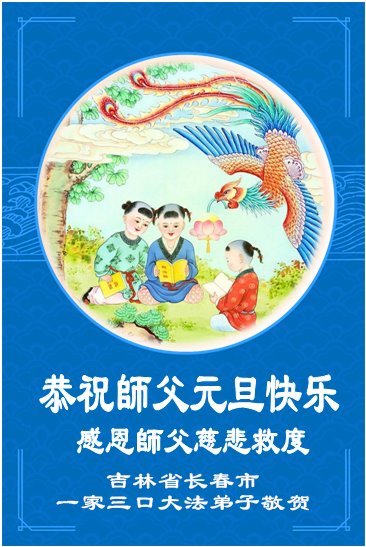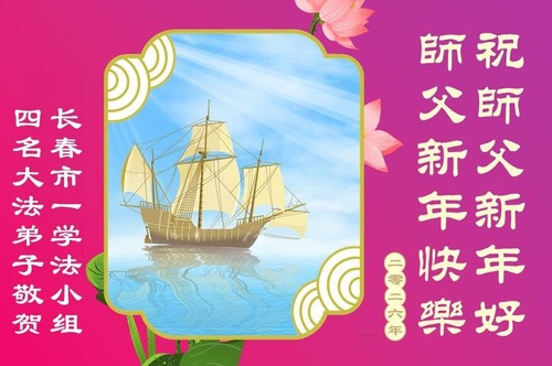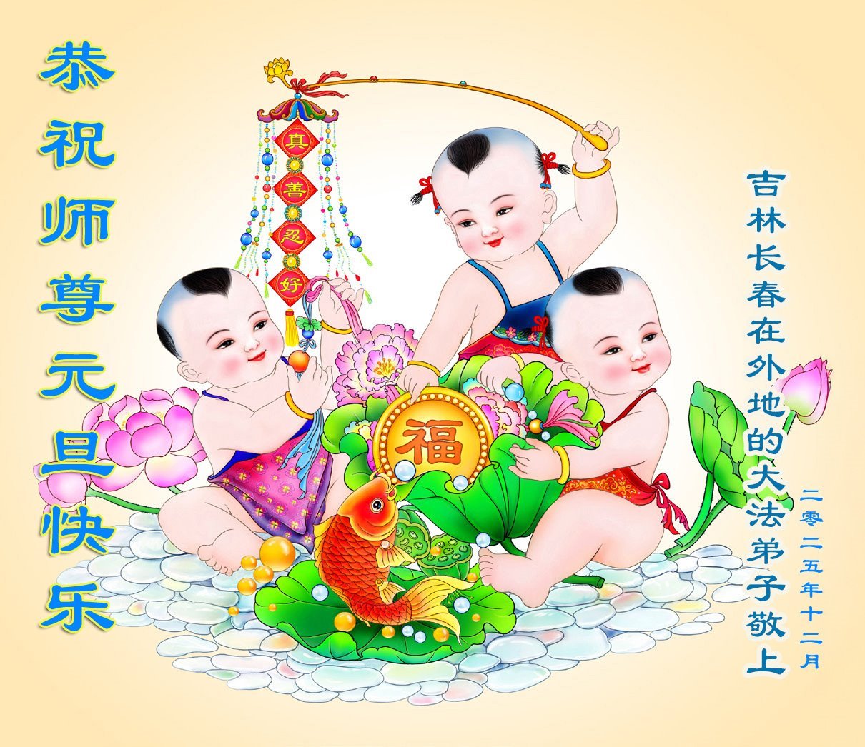 (Minghui.org) Zu Neujahr senden Falun-Dafa-Praktizierende auf der ganzen Welt traditionell Neujahrsgrüße, Grußkarten, Gedichte und Fotos an die Minghui-Website. Damit wünschen sie ihrem verehrten Meister Li Hongzhi ein frohes neues Jahr und bringen dem Meister ihre Dankbarkeit für die barmherzige Errettung zum Ausdruck. Sie geloben, in ihrer Kultivierung fleißig voranzukommen und noch mehr Lebewesen zu erretten. Im Folgenden veröffentlichen wir einen Teil dieser Grüße aus Changchun: