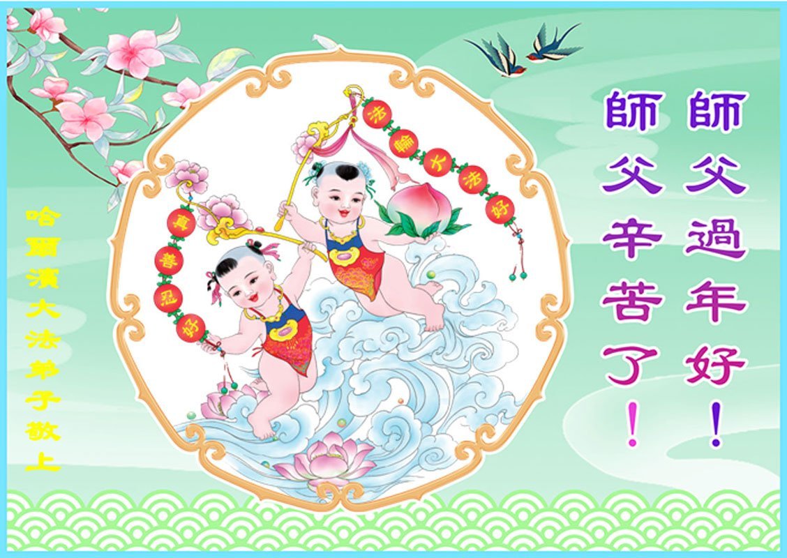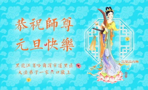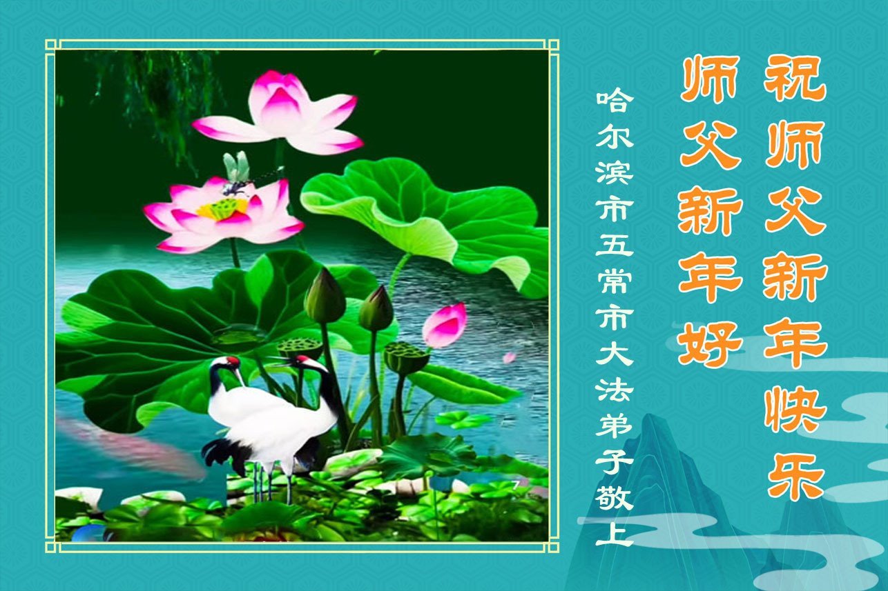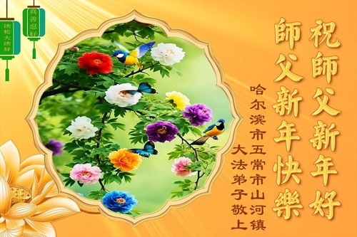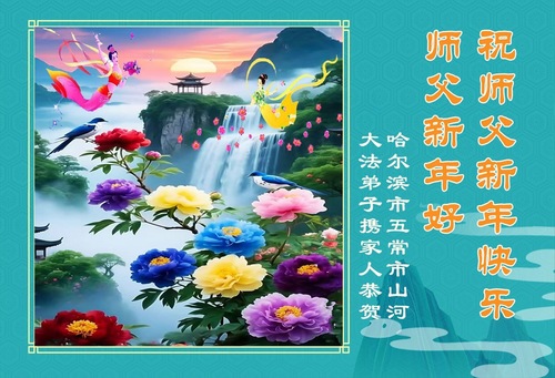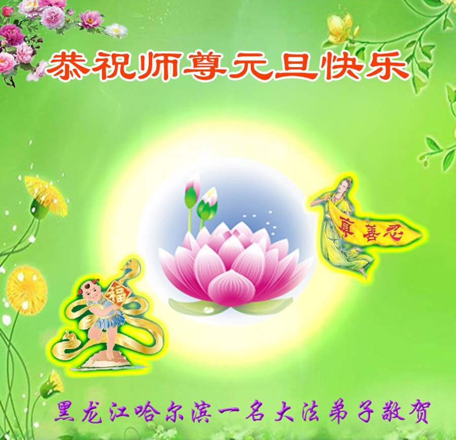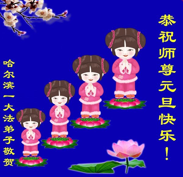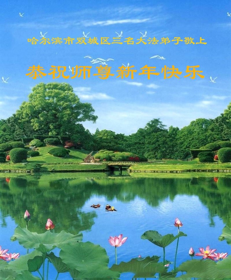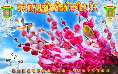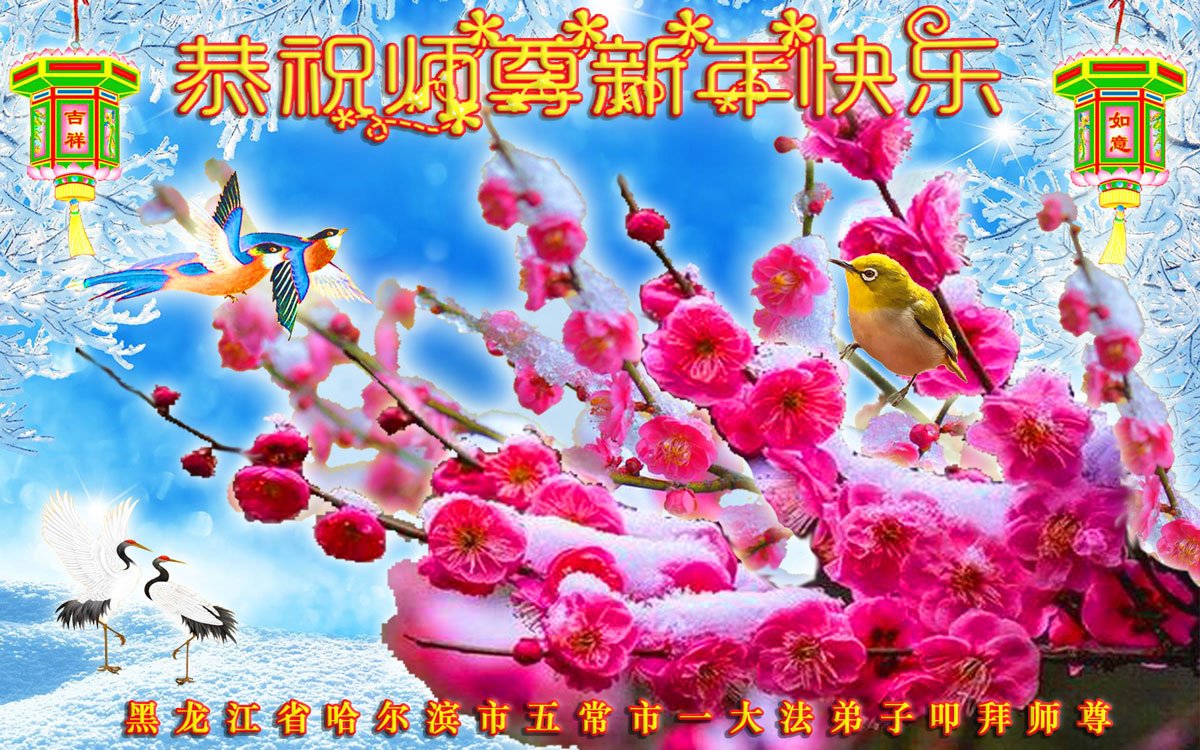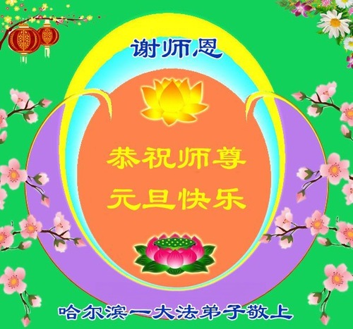 (Minghui.org) Zu Neujahr senden Falun-Dafa-Praktizierende auf der ganzen Welt traditionell Neujahrsgrüße, Grußkarten, Gedichte und Fotos an die Minghui-Website. Damit wünschen sie ihrem verehrten Meister Li Hongzhi ein frohes neues Jahr und bringen dem Meister ihre Dankbarkeit für die barmherzige Errettung zum Ausdruck. Sie geloben, in ihrer Kultivierung fleißig voranzukommen und noch mehr Lebewesen zu erretten. Im Folgenden veröffentlichen wir einen Teil dieser Grüße aus Harbin: