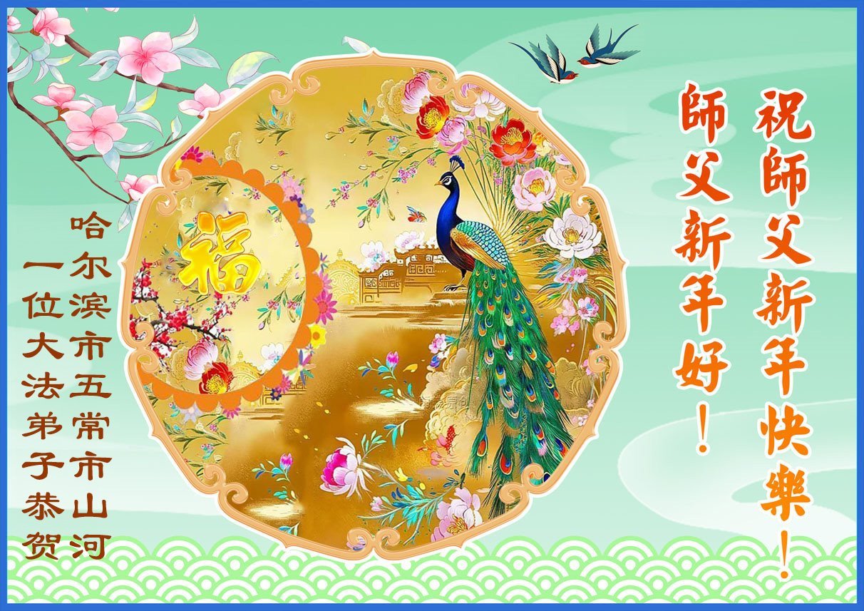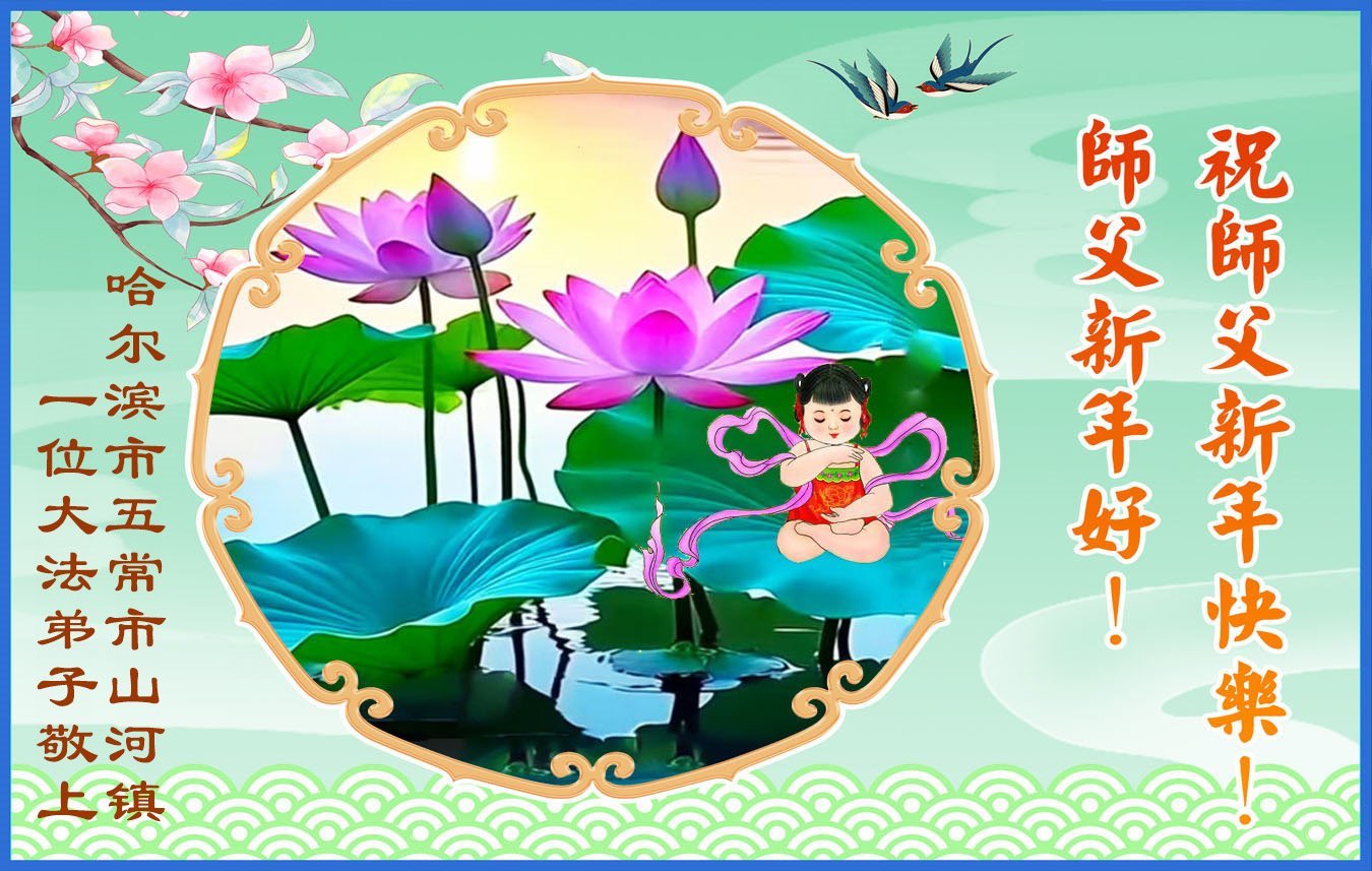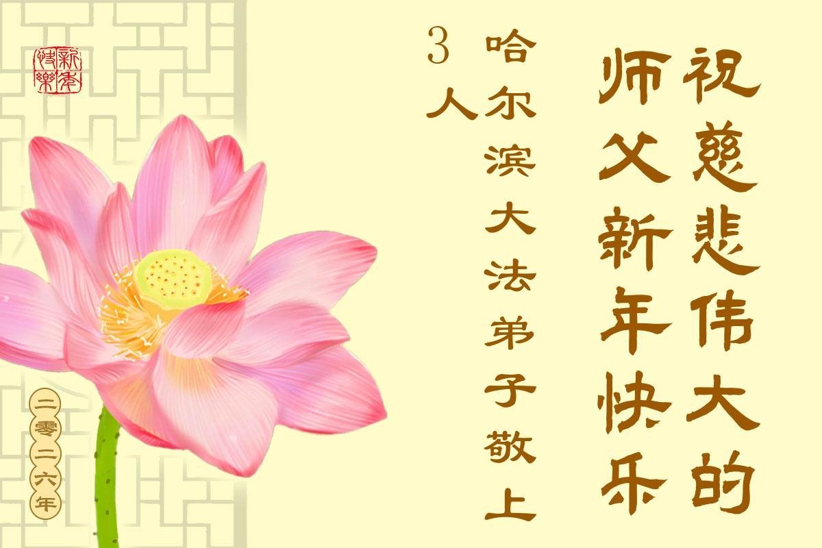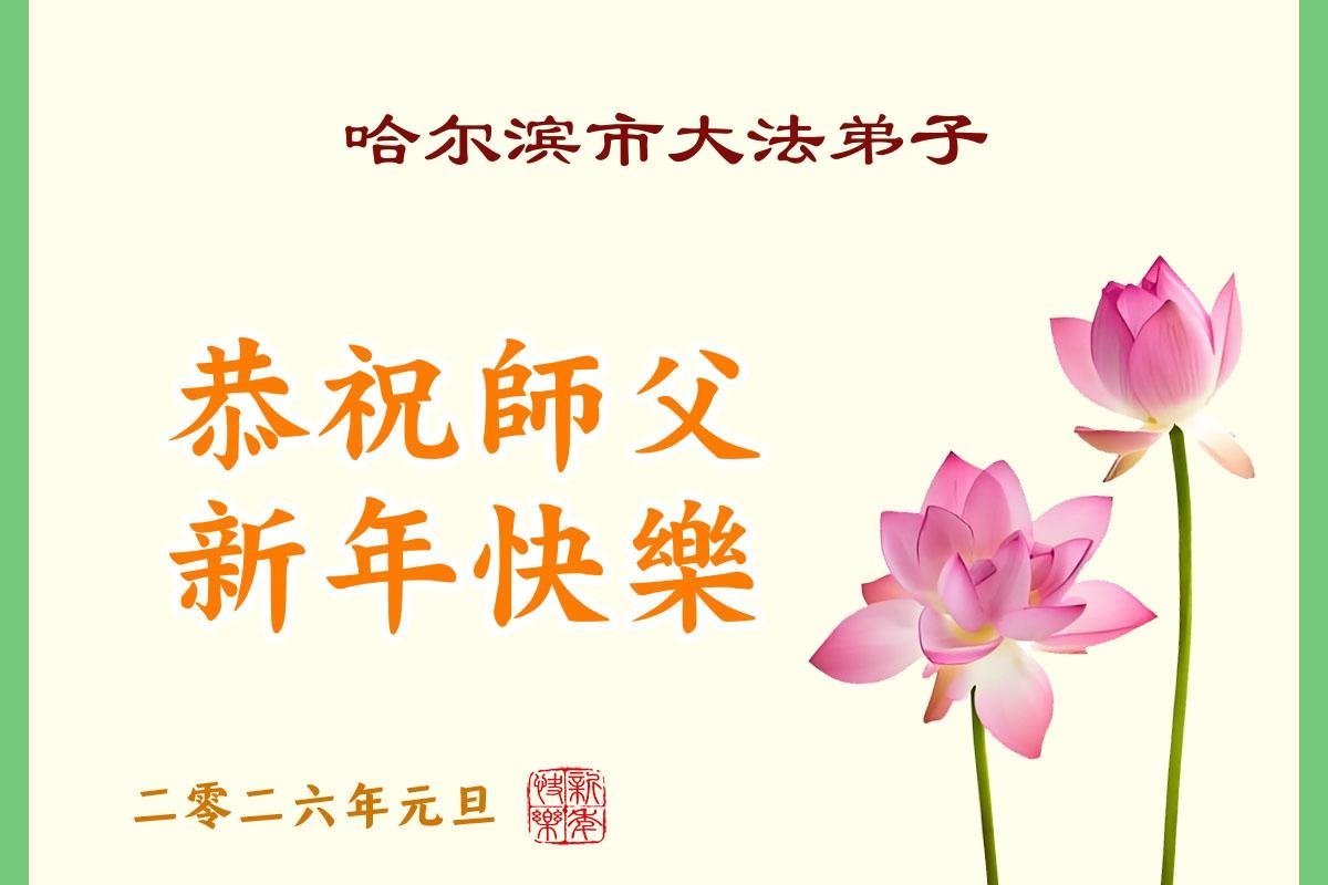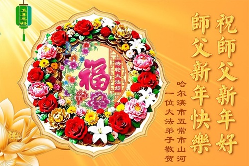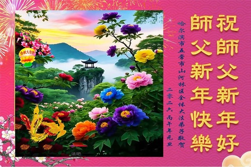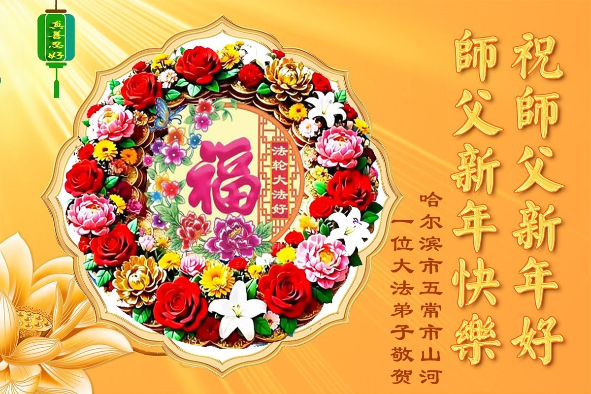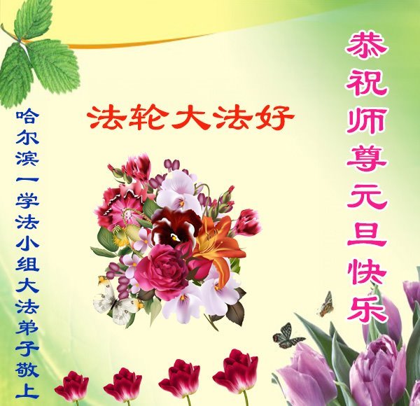 (Minghui.org) Zu Neujahr senden Falun-Dafa-Praktizierende auf der ganzen Welt traditionell Neujahrsgrüße, Grußkarten, Gedichte und Fotos an die Minghui-Website. Damit wünschen sie ihrem verehrten Meister Li Hongzhi ein frohes neues Jahr und bringen dem Meister ihre Dankbarkeit für die barmherzige Errettung zum Ausdruck. Sie geloben, in ihrer Kultivierung fleißig voranzukommen und noch mehr Lebewesen zu erretten. Im Folgenden veröffentlichen wir einen Teil dieser Grüße aus Harbin: