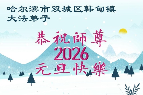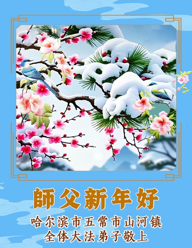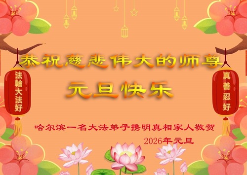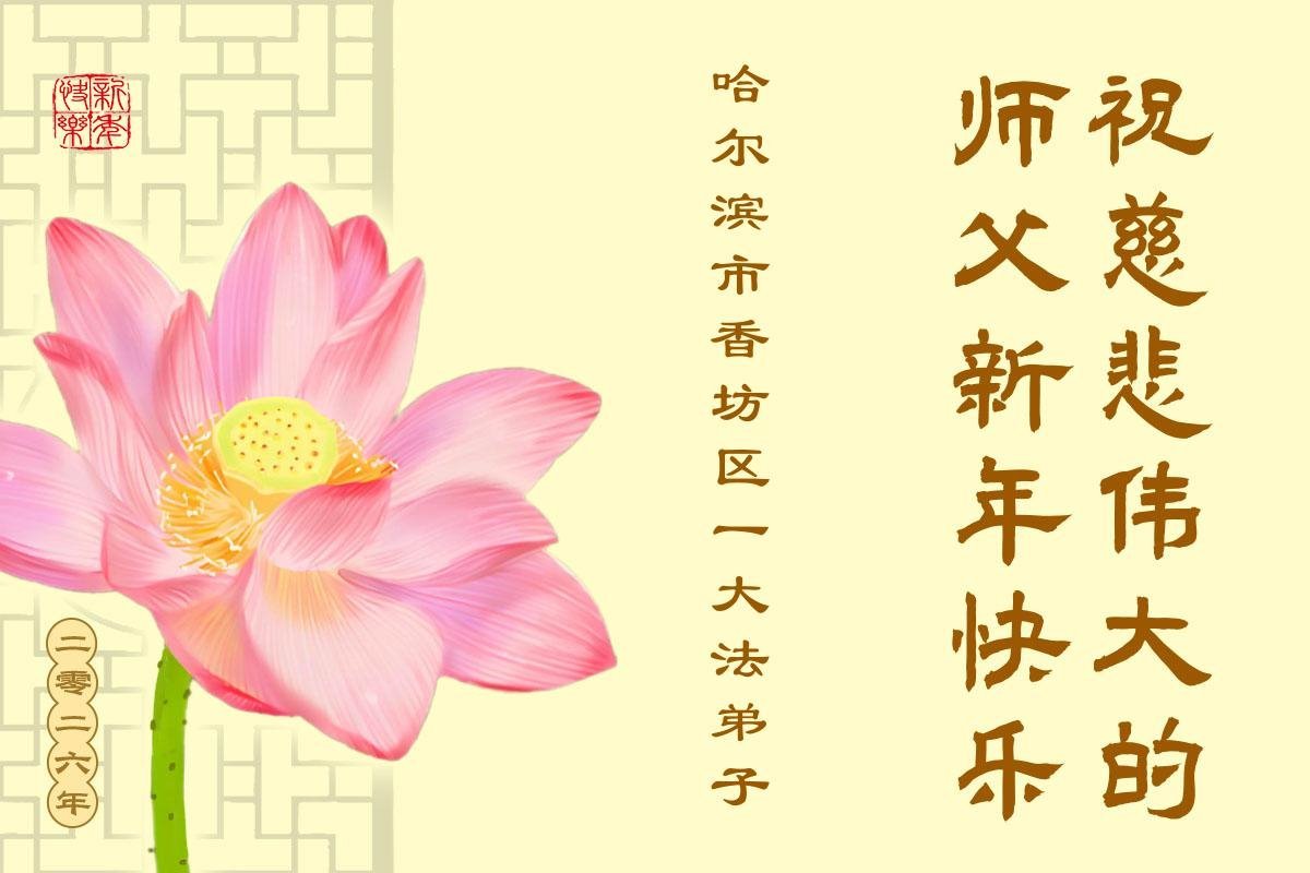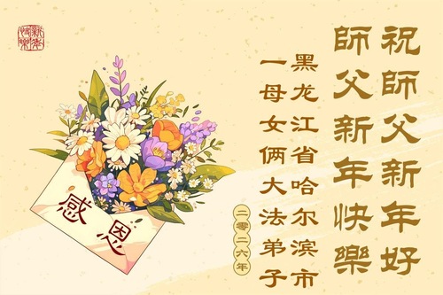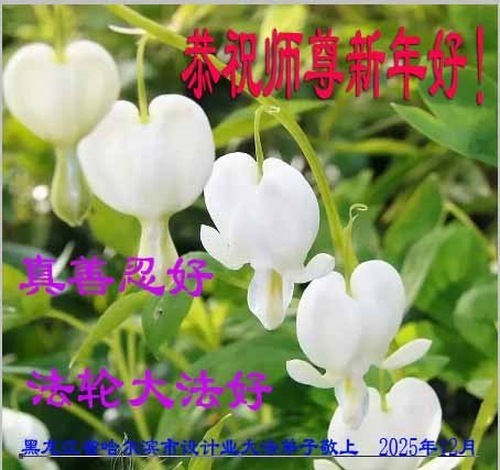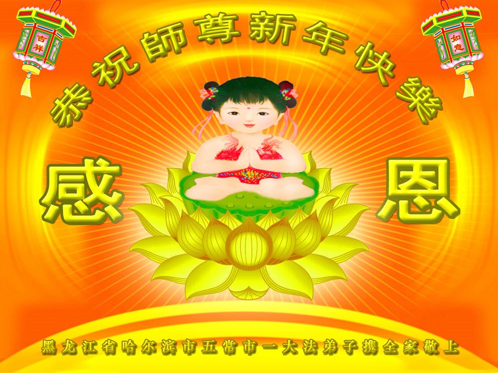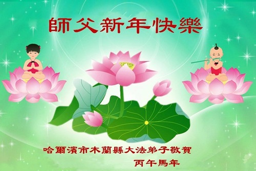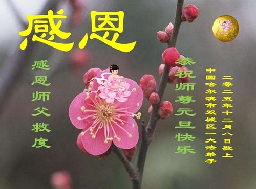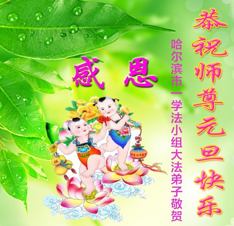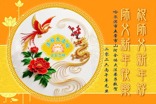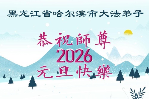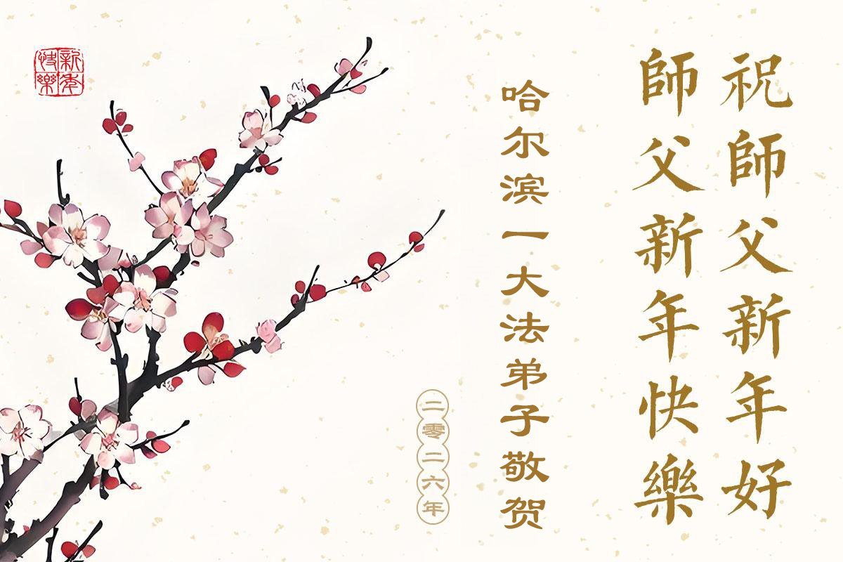 (Minghui.org) Zu Neujahr senden Falun-Dafa-Praktizierende auf der ganzen Welt traditionell Neujahrsgrüße, Grußkarten, Gedichte und Fotos an die Minghui-Website. Damit wünschen sie ihrem verehrten Meister Li Hongzhi ein frohes neues Jahr und bringen dem Meister ihre Dankbarkeit für die barmherzige Errettung zum Ausdruck. Sie geloben, in ihrer Kultivierung fleißig voranzukommen und noch mehr Lebewesen zu erretten. Im Folgenden veröffentlichen wir einen Teil dieser Grüße aus Harbin:
