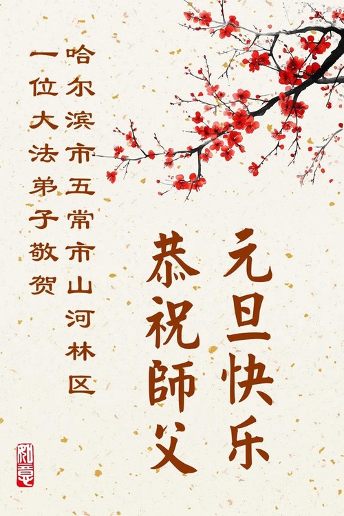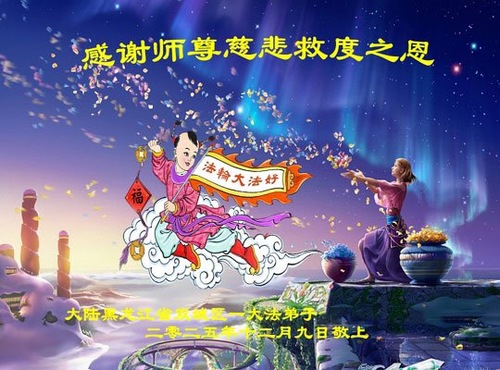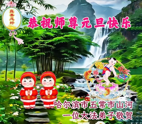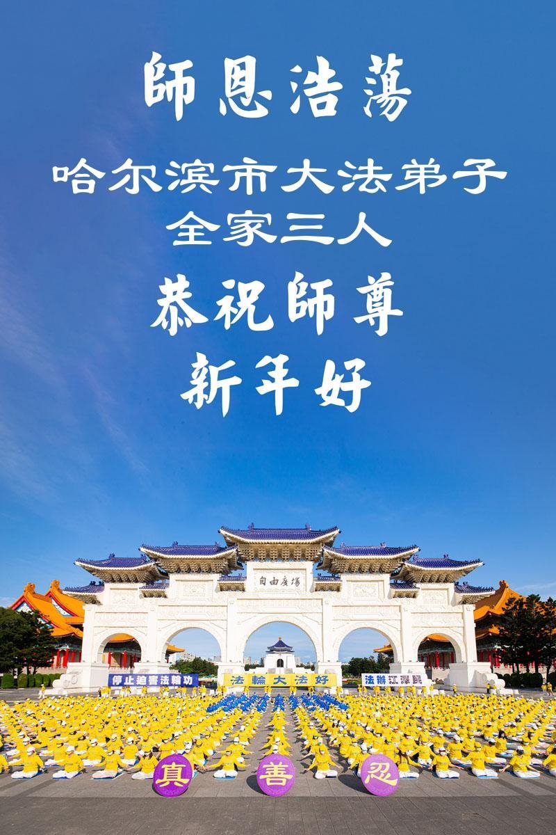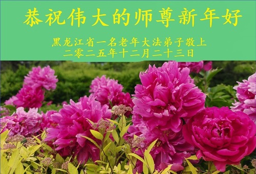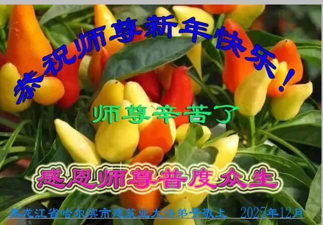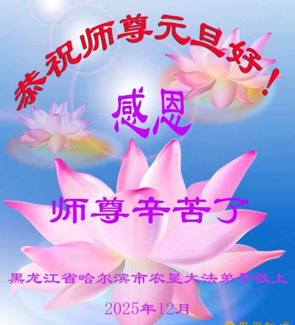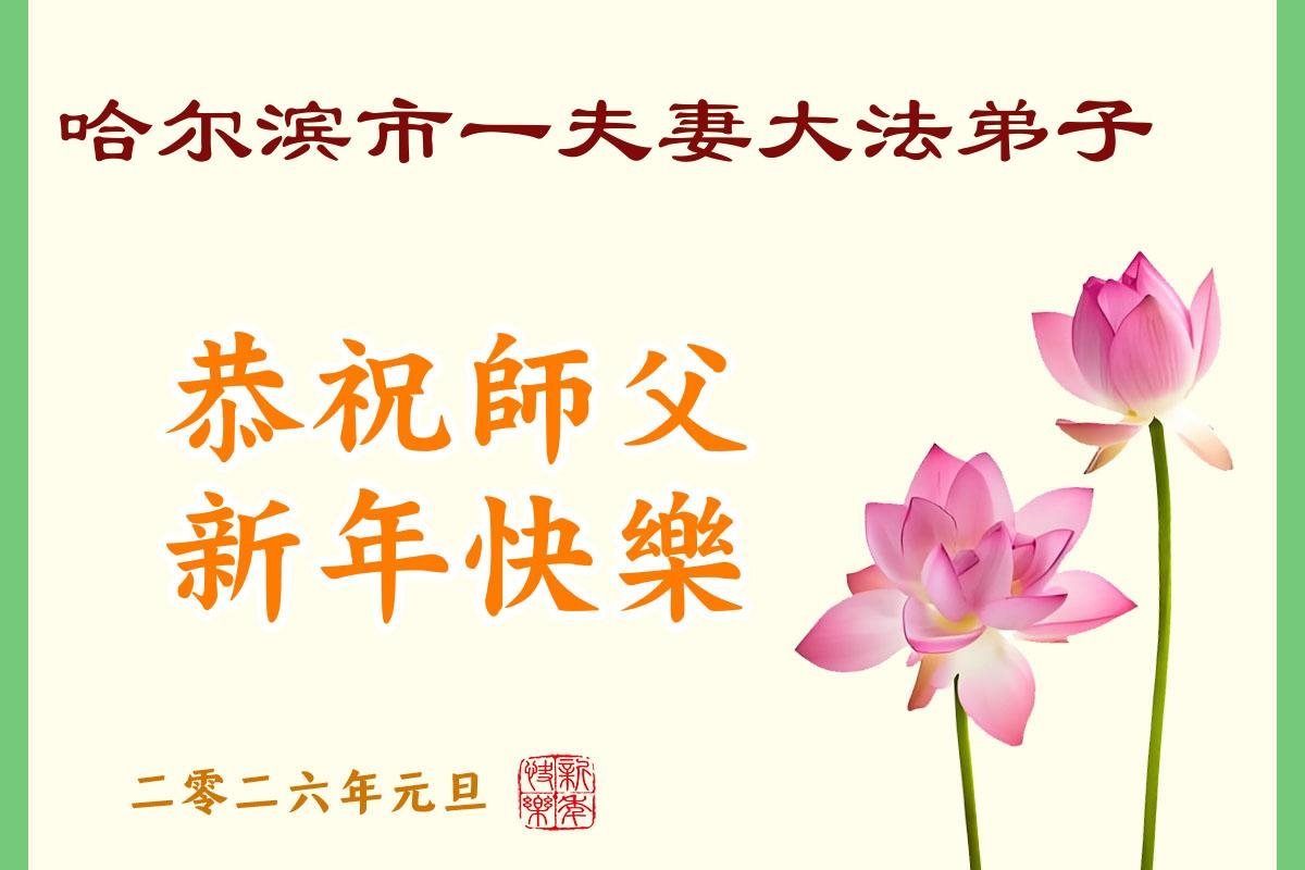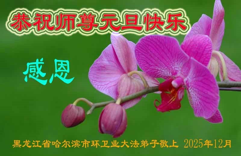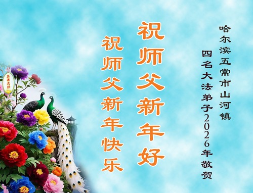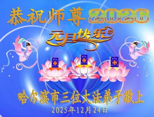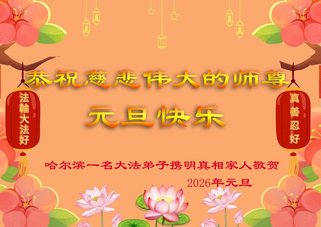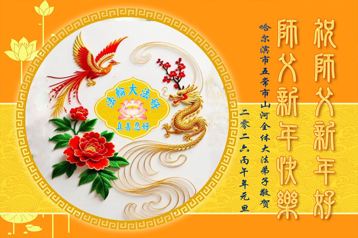 (Minghui.org) Zu Neujahr senden Falun-Dafa-Praktizierende auf der ganzen Welt traditionell Neujahrsgrüße, Grußkarten, Gedichte und Fotos an die Minghui-Website. Damit wünschen sie ihrem verehrten Meister Li Hongzhi ein frohes neues Jahr und bringen dem Meister ihre Dankbarkeit für die barmherzige Errettung zum Ausdruck. Sie geloben, in ihrer Kultivierung fleißig voranzukommen und noch mehr Lebewesen zu erretten. Im Folgenden veröffentlichen wir einen Teil dieser Grüße aus Harbin:
