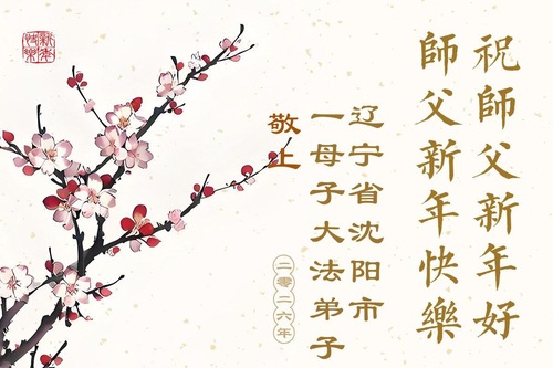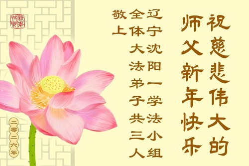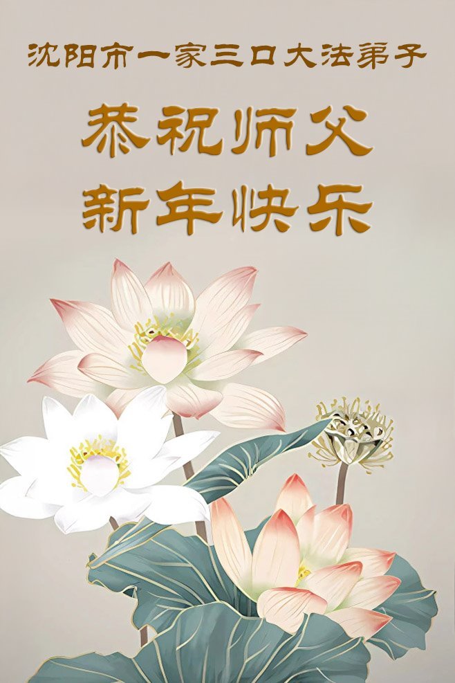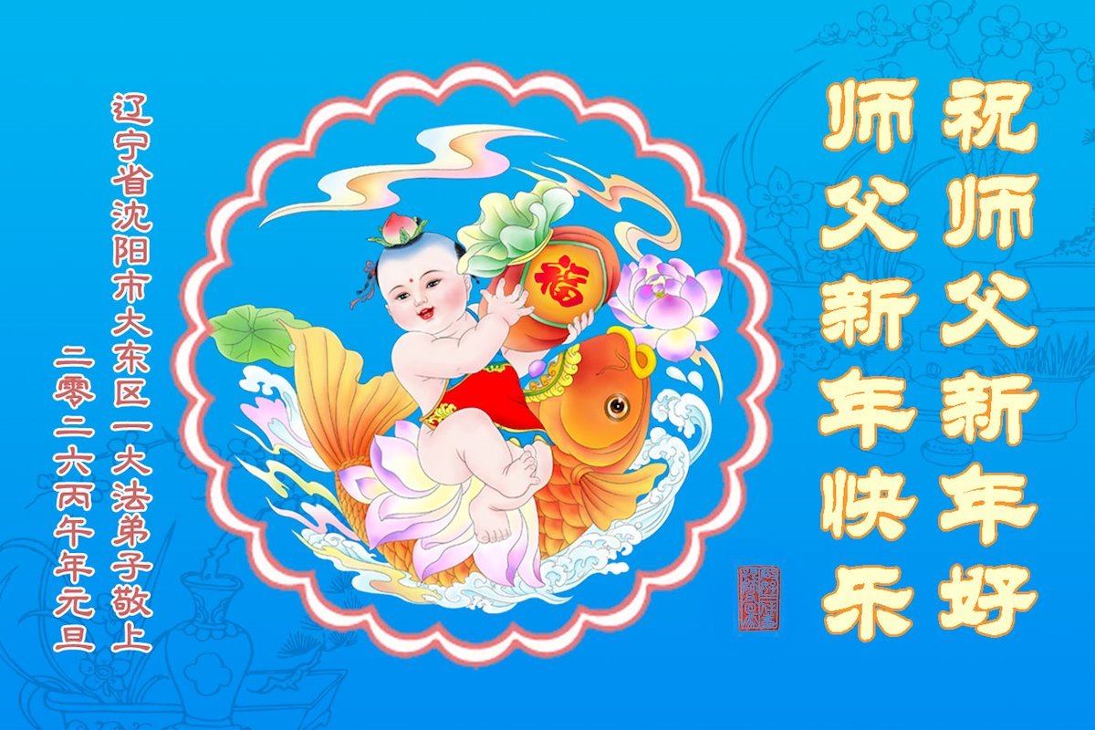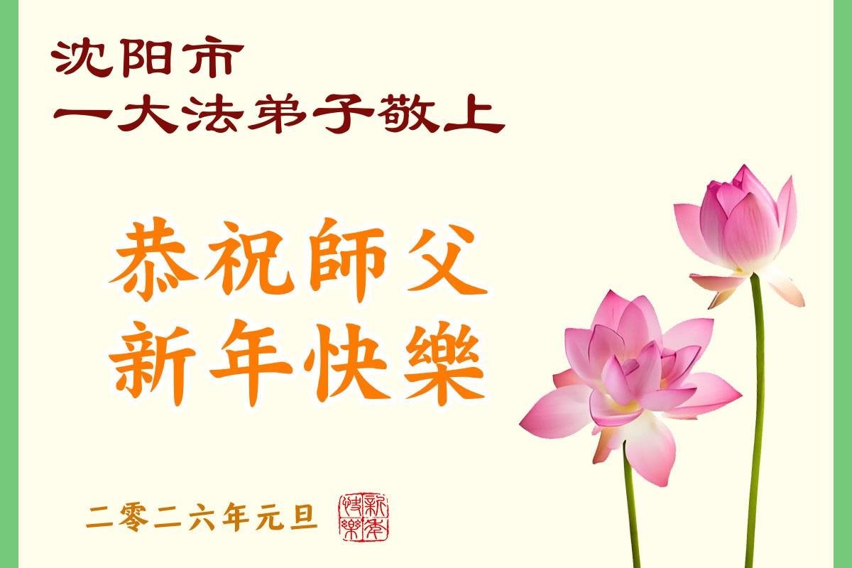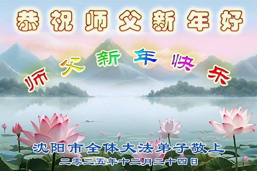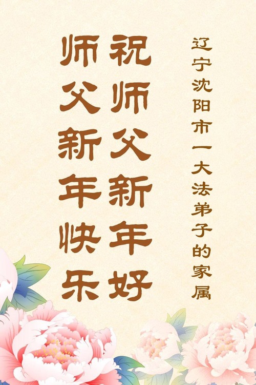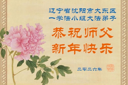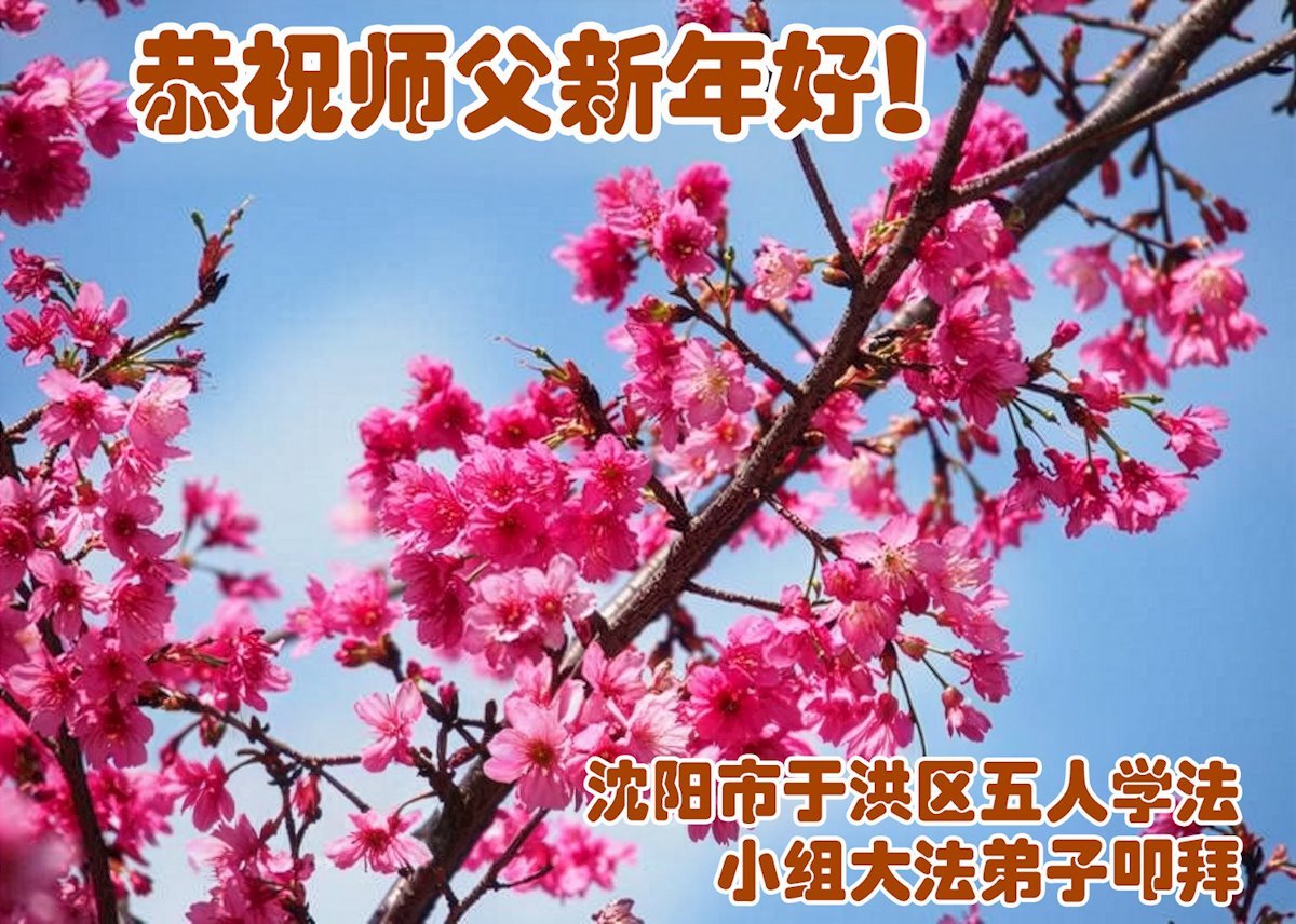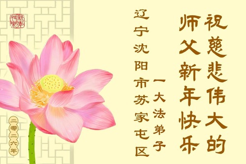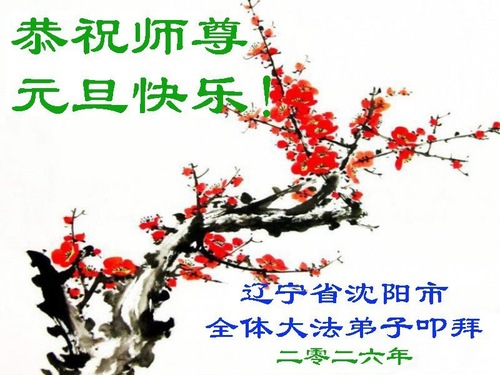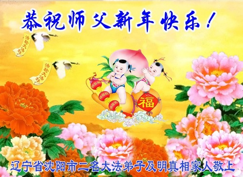(Minghui.org) Zu Neujahr senden Falun-Dafa-Praktizierende auf der ganzen Welt traditionell Neujahrsgrüße, Grußkarten, Gedichte und Fotos an die Minghui-Website. Damit wünschen sie ihrem verehrten Meister Li Hongzhi ein frohes neues Jahr und bringen dem Meister ihre Dankbarkeit für die barmherzige Errettung zum Ausdruck. Sie geloben, in ihrer Kultivierung fleißig voranzukommen und noch mehr Lebewesen zu erretten. Im Folgenden veröffentlichen wir einen Teil dieser Grüße aus Shenyang: