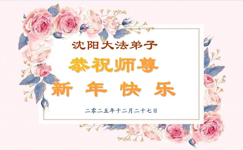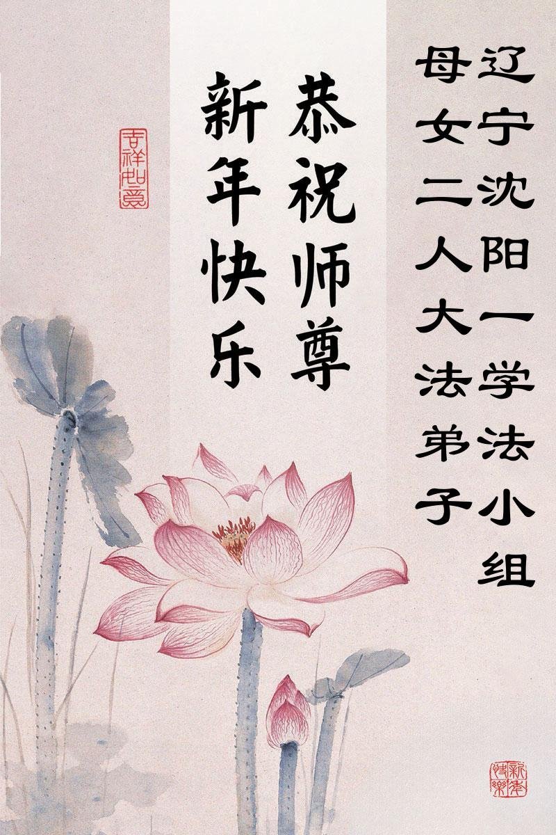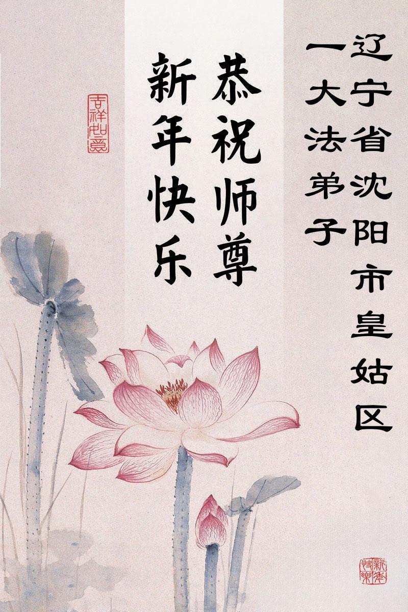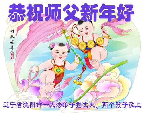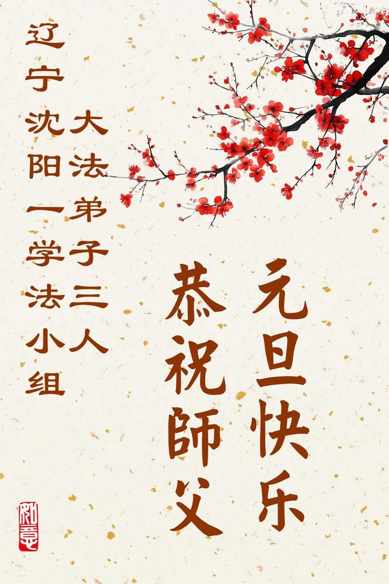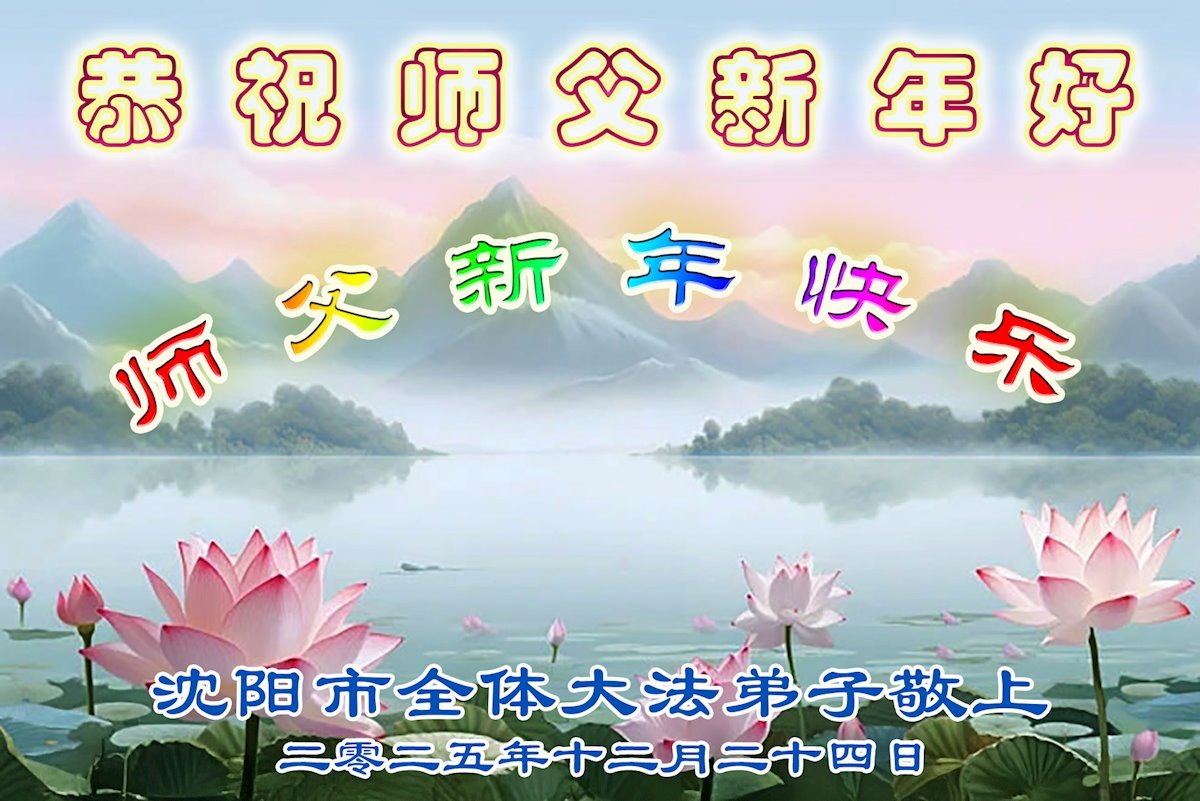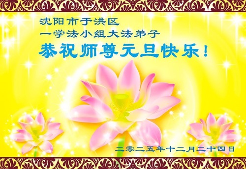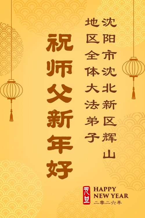 (Minghui.org) Zu Neujahr senden Falun-Dafa-Praktizierende auf der ganzen Welt traditionell Neujahrsgrüße, Grußkarten, Gedichte und Fotos an die Minghui-Website. Damit wünschen sie ihrem verehrten Meister Li Hongzhi ein frohes neues Jahr und bringen dem Meister ihre Dankbarkeit für die barmherzige Errettung zum Ausdruck. Sie geloben, in ihrer Kultivierung fleißig voranzukommen und noch mehr Lebewesen zu erretten. Im Folgenden veröffentlichen wir einen Teil dieser Grüße aus Shenyang: