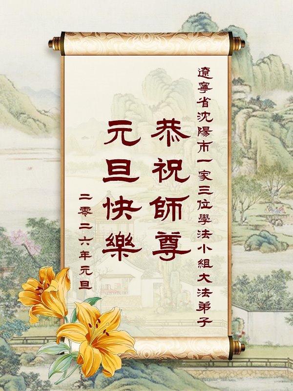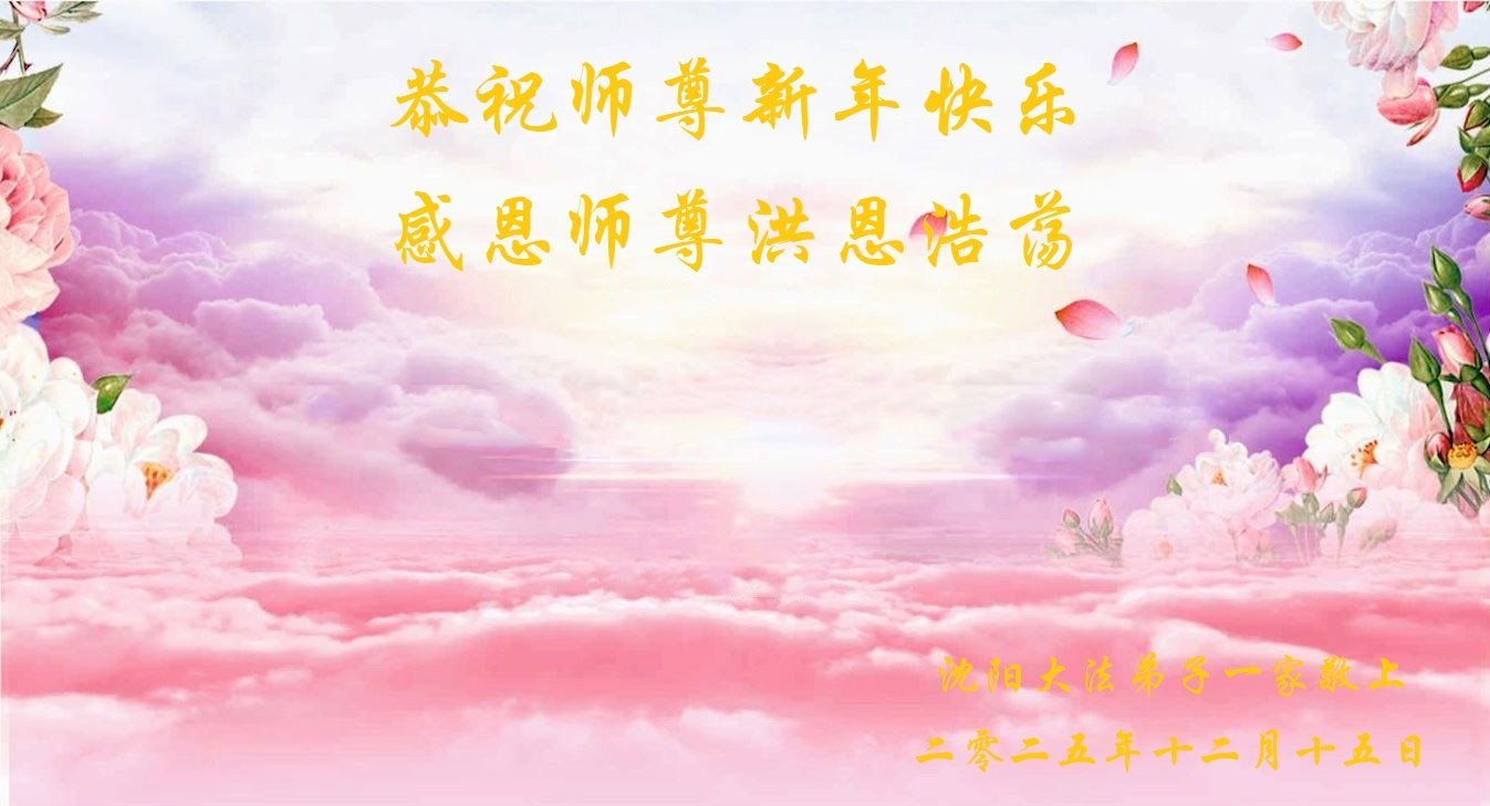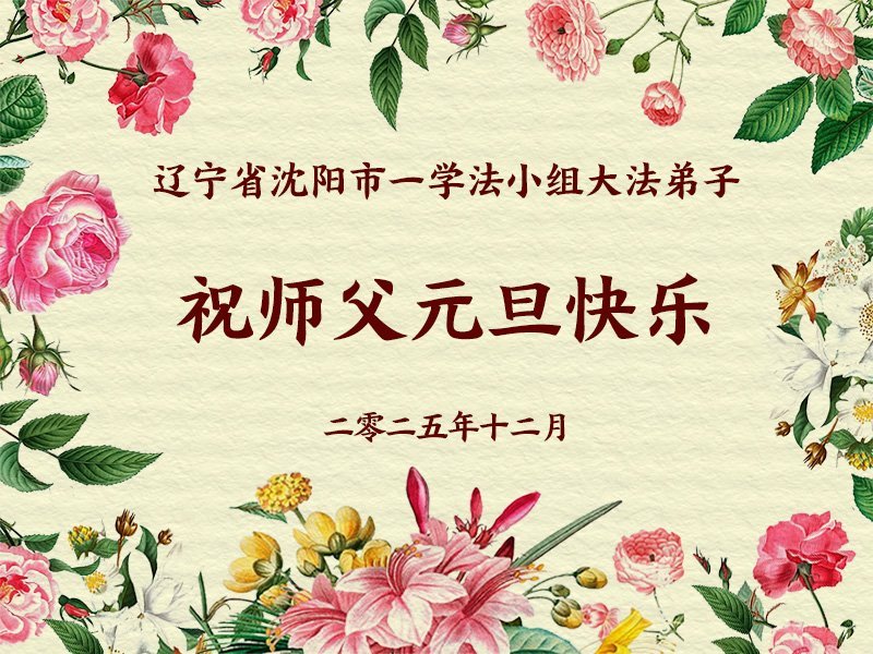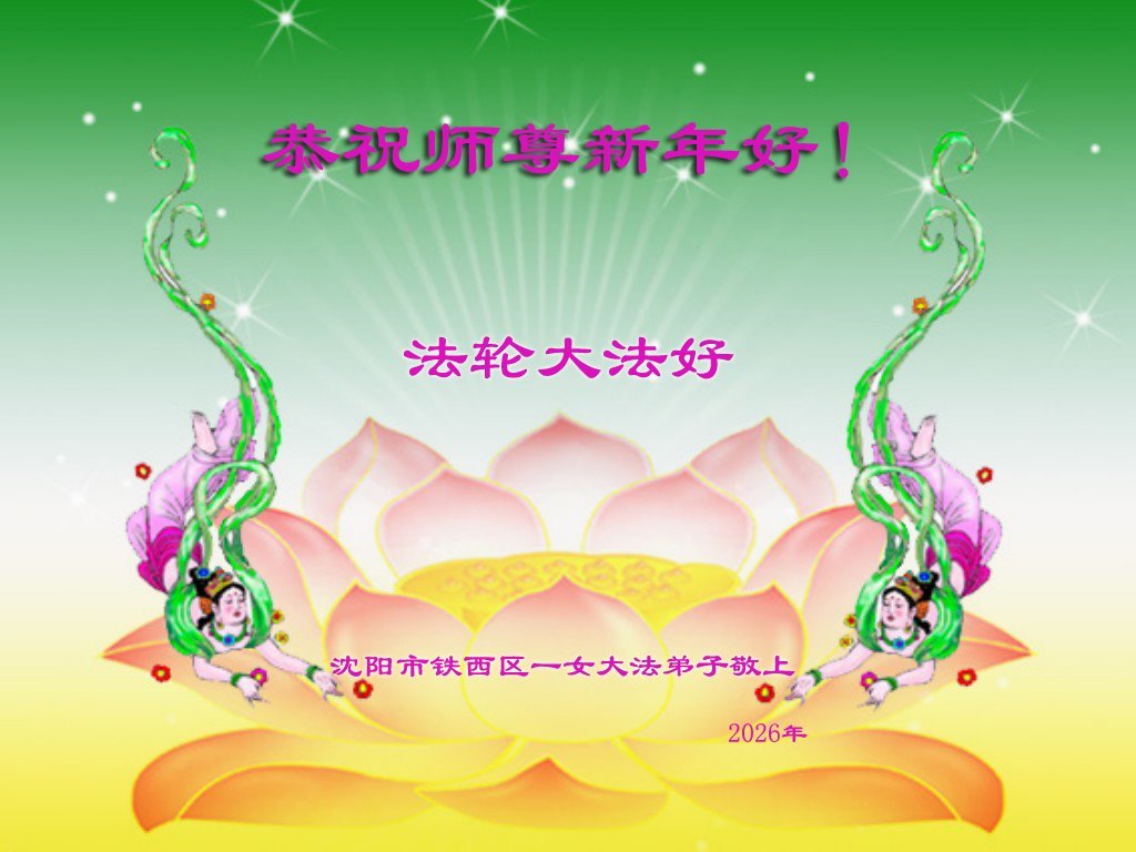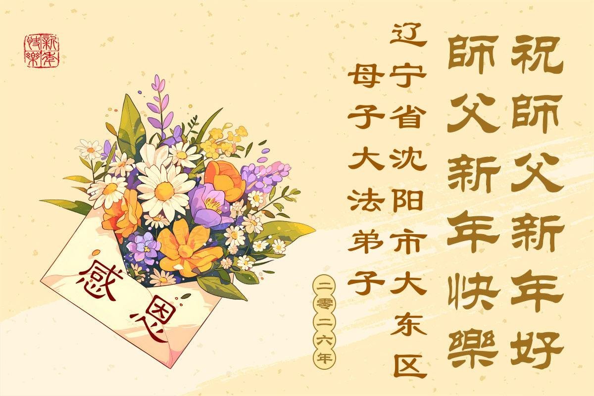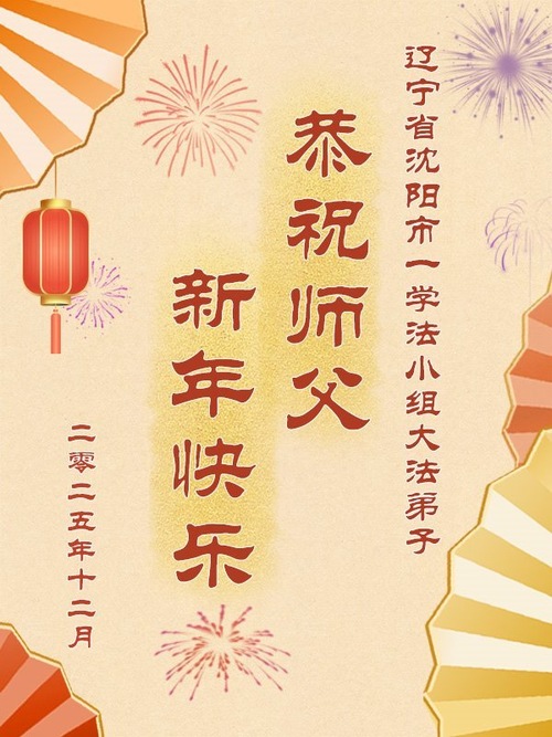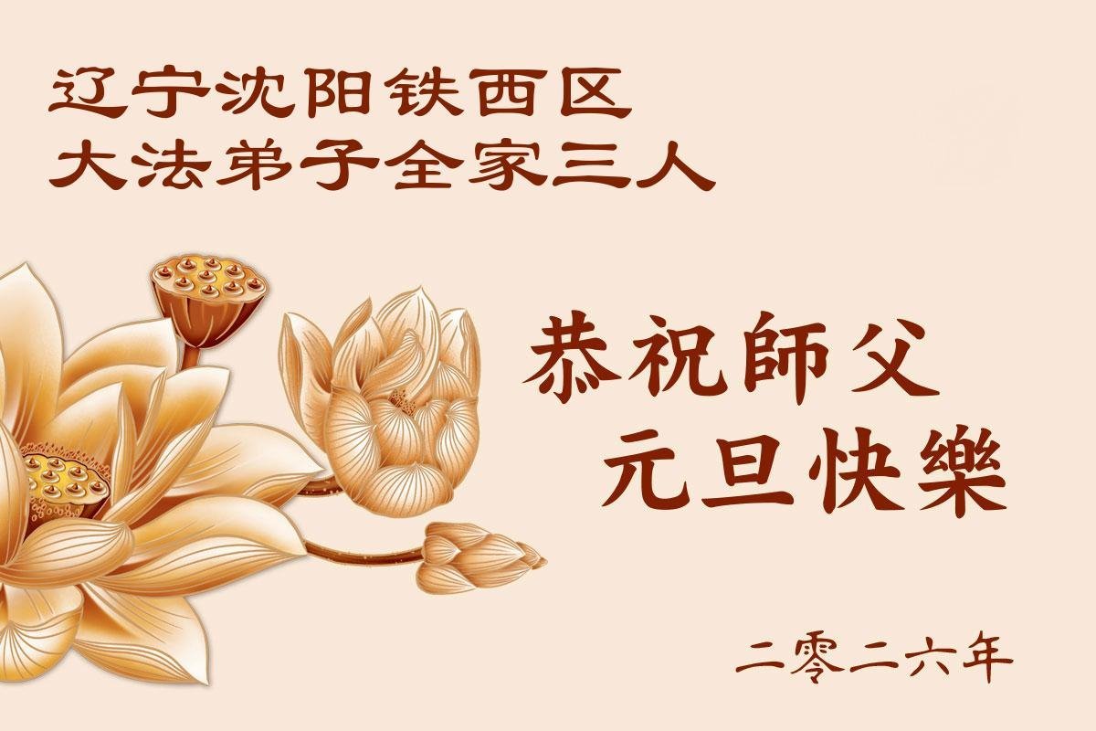 (Minghui.org) Zu Neujahr senden Falun-Dafa-Praktizierende auf der ganzen Welt traditionell Neujahrsgrüße, Grußkarten, Gedichte und Fotos an die Minghui-Website. Damit wünschen sie ihrem verehrten Meister Li Hongzhi ein frohes neues Jahr und bringen dem Meister ihre Dankbarkeit für die barmherzige Errettung zum Ausdruck. Sie geloben, in ihrer Kultivierung fleißig voranzukommen und noch mehr Lebewesen zu erretten. Im Folgenden veröffentlichen wir einen Teil dieser Grüße aus Shenyang: