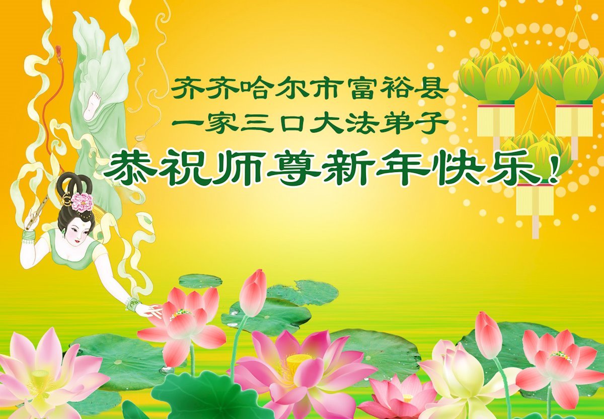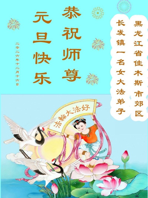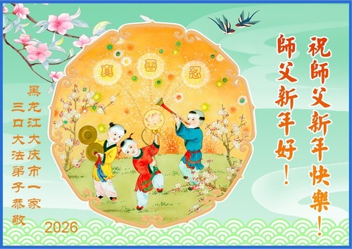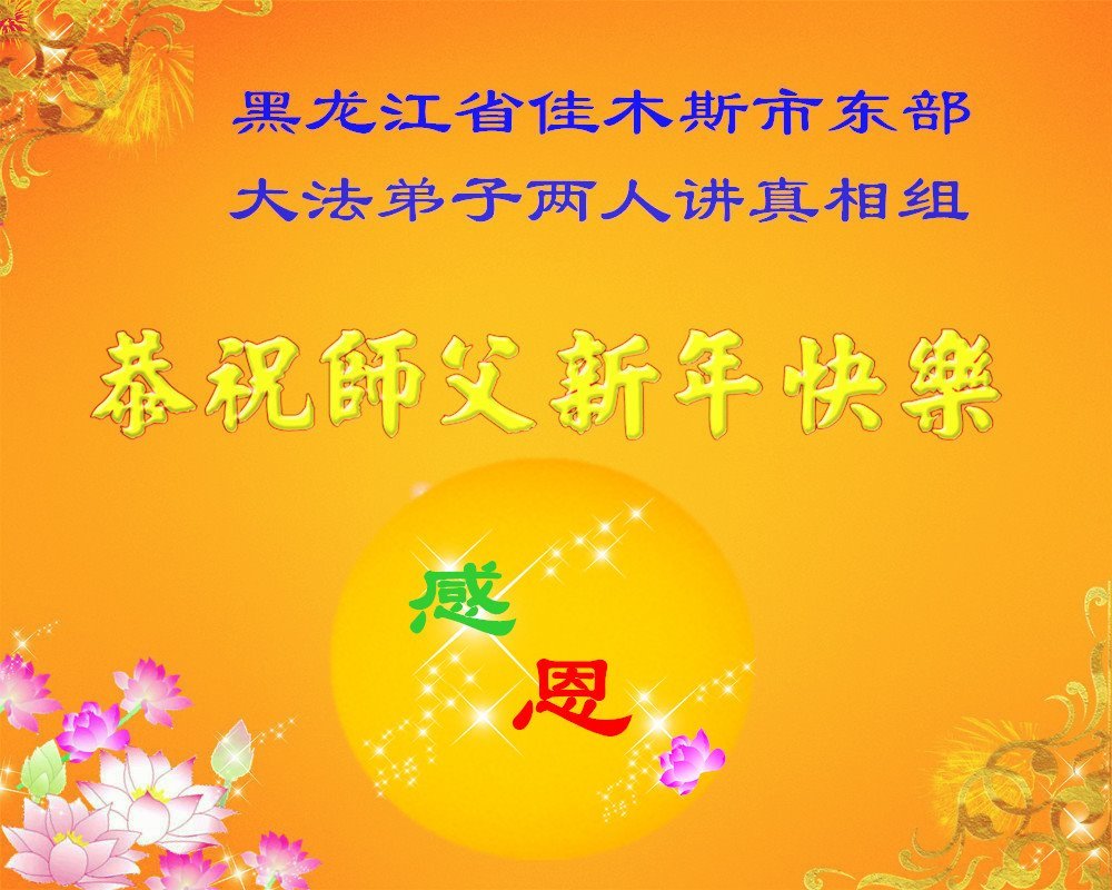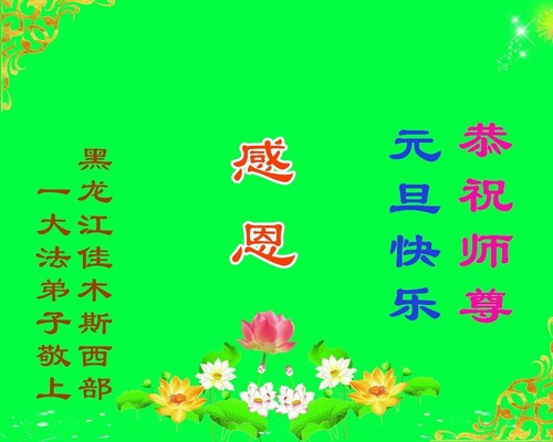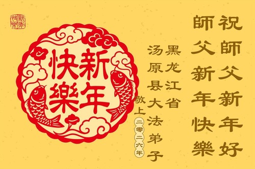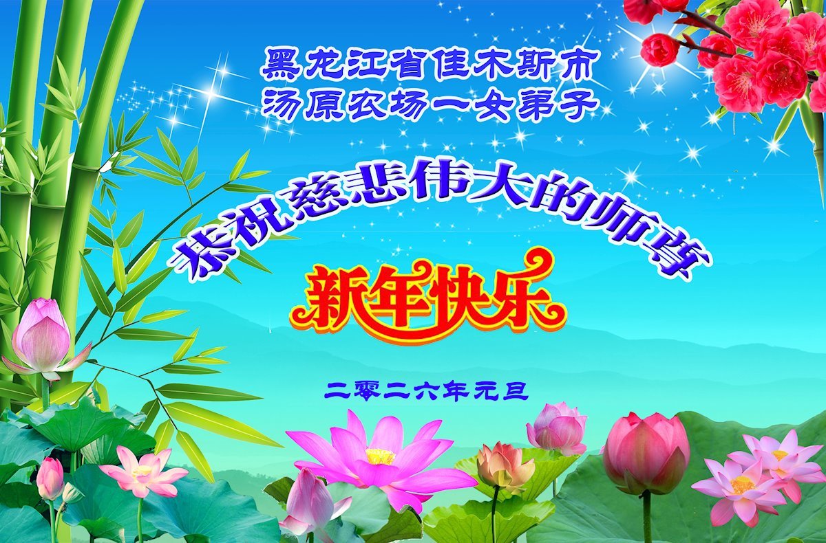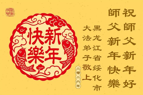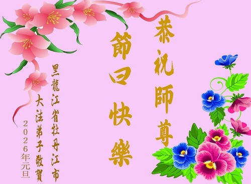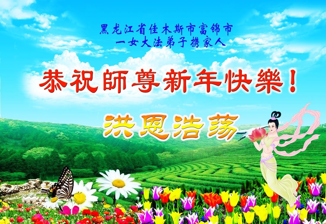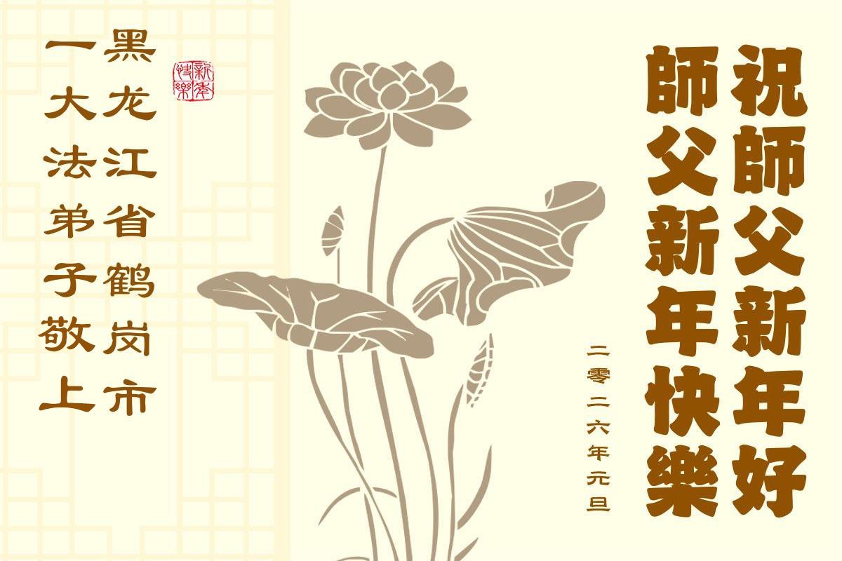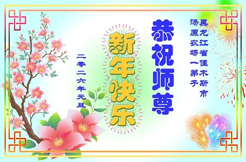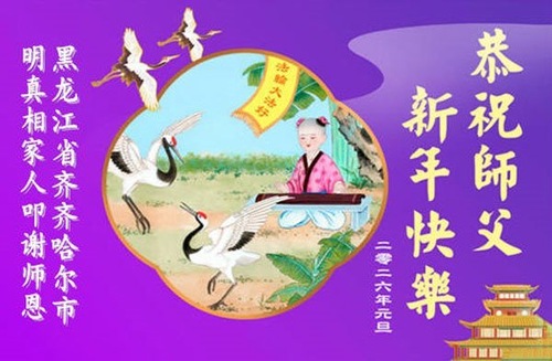 (Minghui.org) Zu Neujahr senden Falun-Dafa-Praktizierende auf der ganzen Welt traditionell Neujahrsgrüße, Grußkarten, Gedichte und Fotos an die Minghui-Website. Damit wünschen sie ihrem verehrten Meister Li Hongzhi ein frohes neues Jahr und bringen dem Meister ihre Dankbarkeit für die barmherzige Errettung zum Ausdruck. Sie geloben, in ihrer Kultivierung fleißig voranzukommen und noch mehr Lebewesen zu erretten. Im Folgenden veröffentlichen wir einen Teil dieser Grüße aus Heilongjiang: