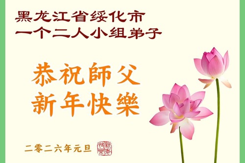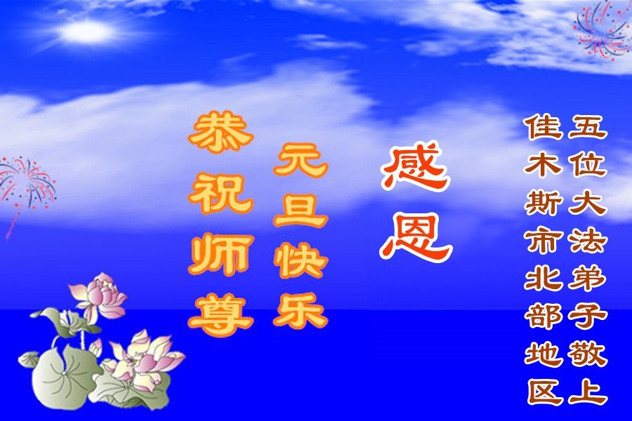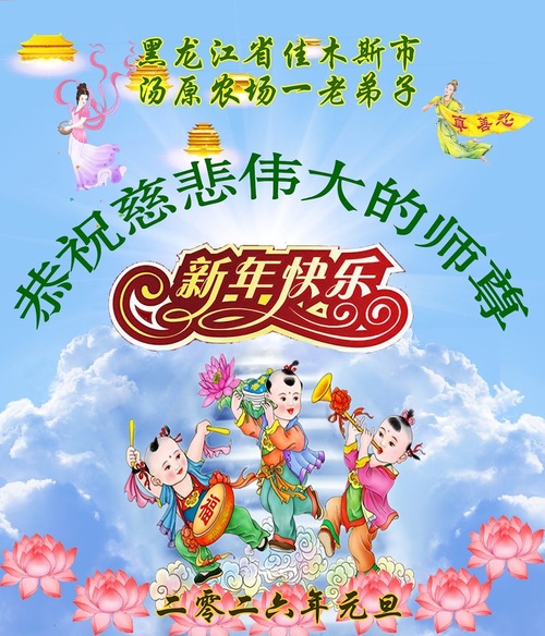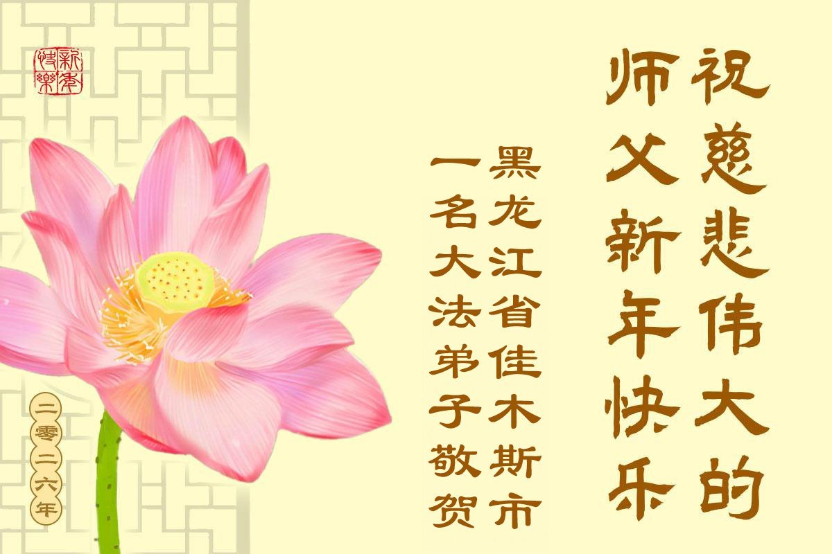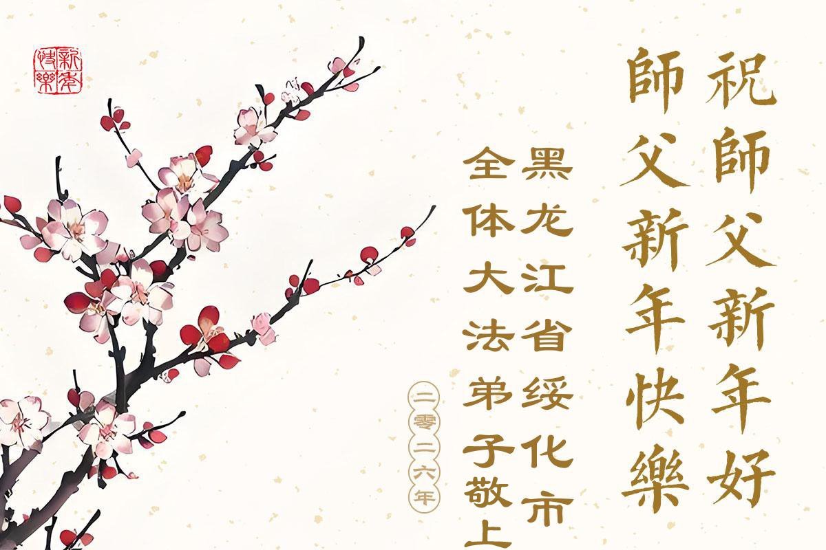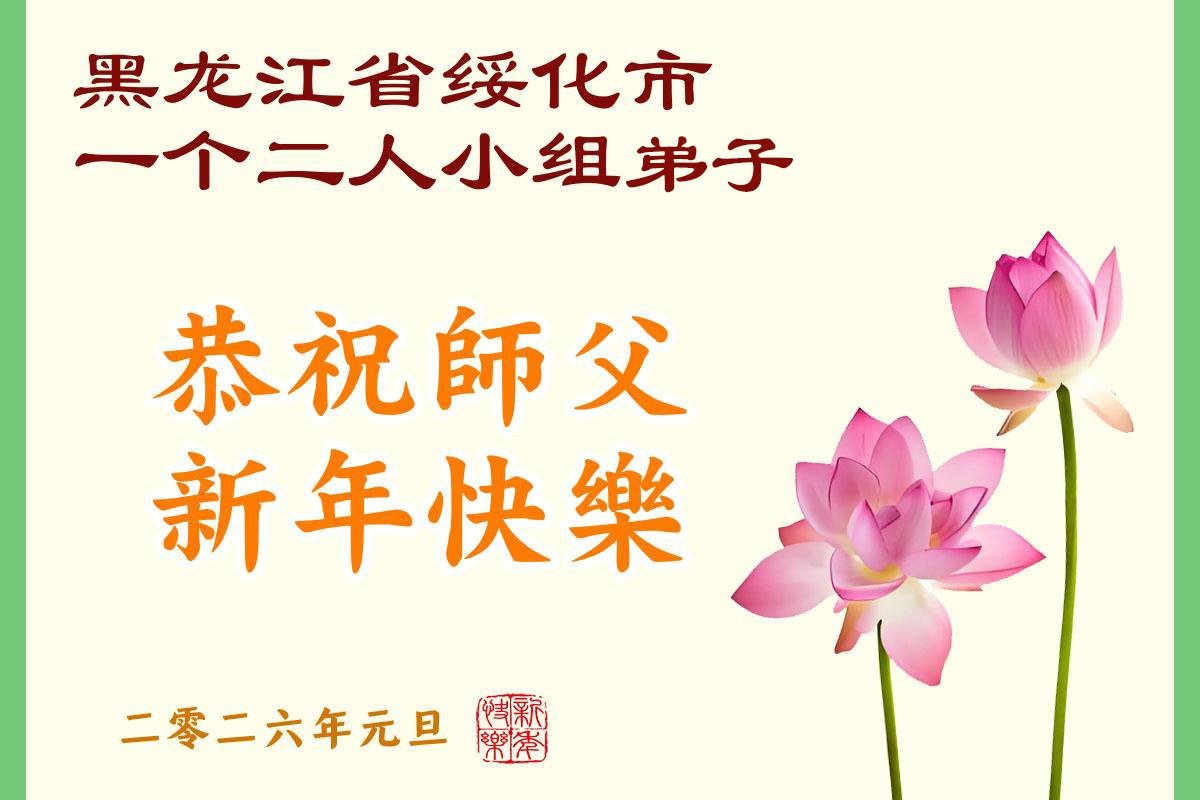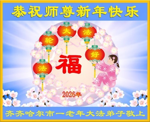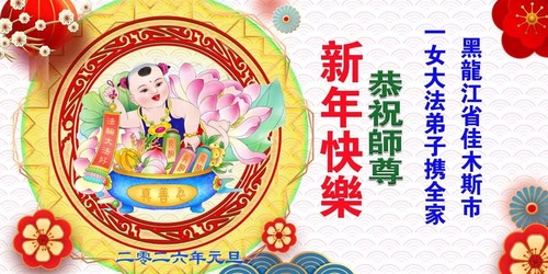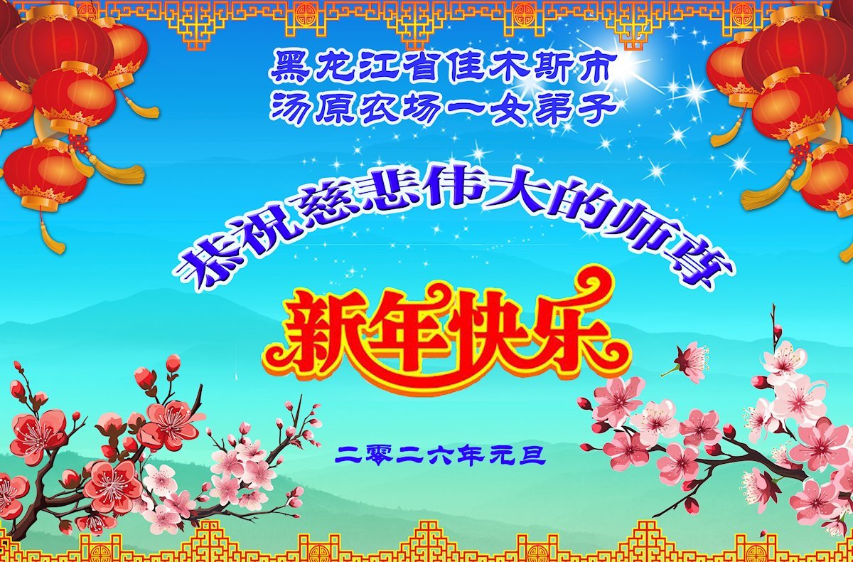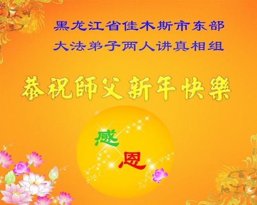 (Minghui.org) Zu Neujahr senden Falun-Dafa-Praktizierende auf der ganzen Welt traditionell Neujahrsgrüße, Grußkarten, Gedichte und Fotos an die Minghui-Website. Damit wünschen sie ihrem verehrten Meister Li Hongzhi ein frohes neues Jahr und bringen dem Meister ihre Dankbarkeit für die barmherzige Errettung zum Ausdruck. Sie geloben, in ihrer Kultivierung fleißig voranzukommen und noch mehr Lebewesen zu erretten. Im Folgenden veröffentlichen wir einen Teil dieser Grüße aus Heilongjiang:
