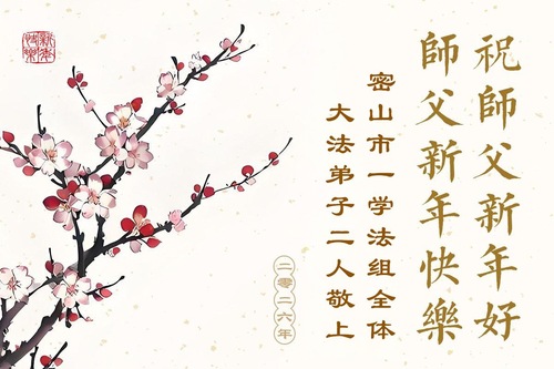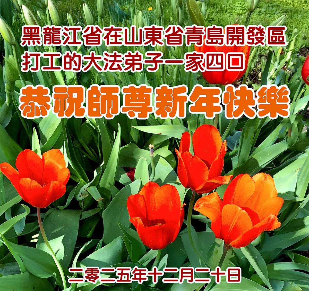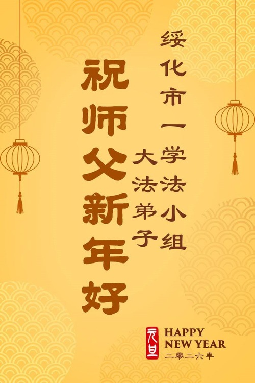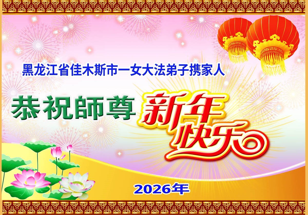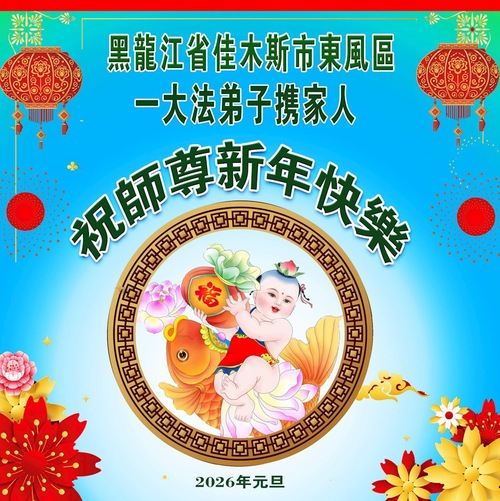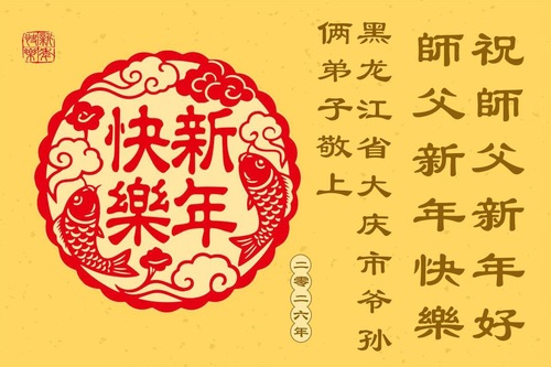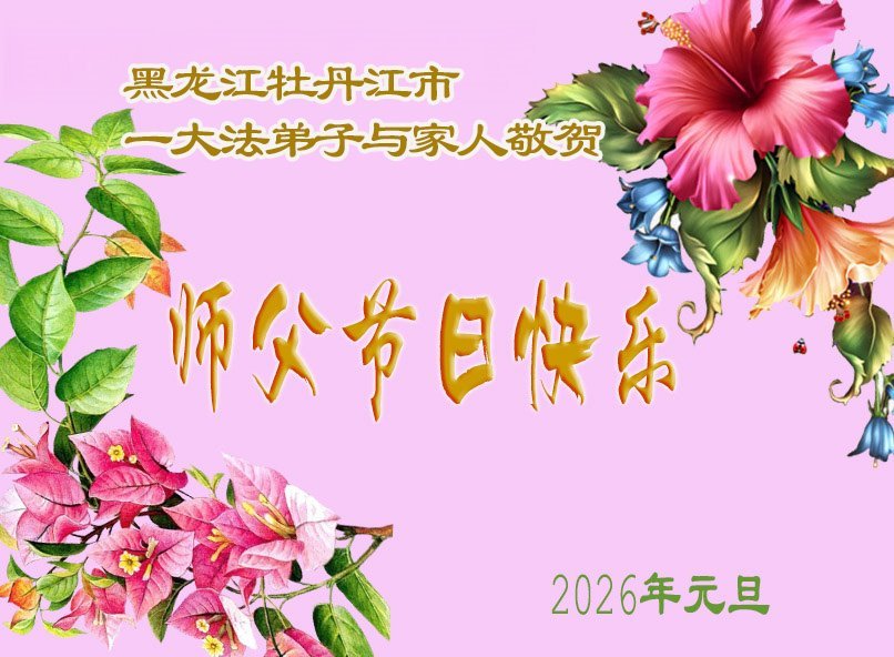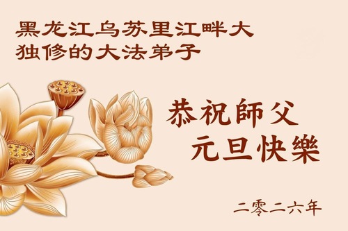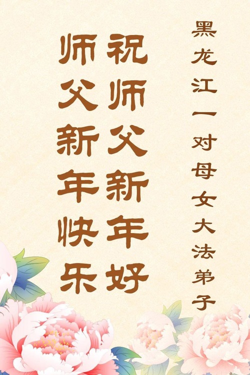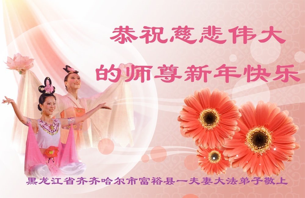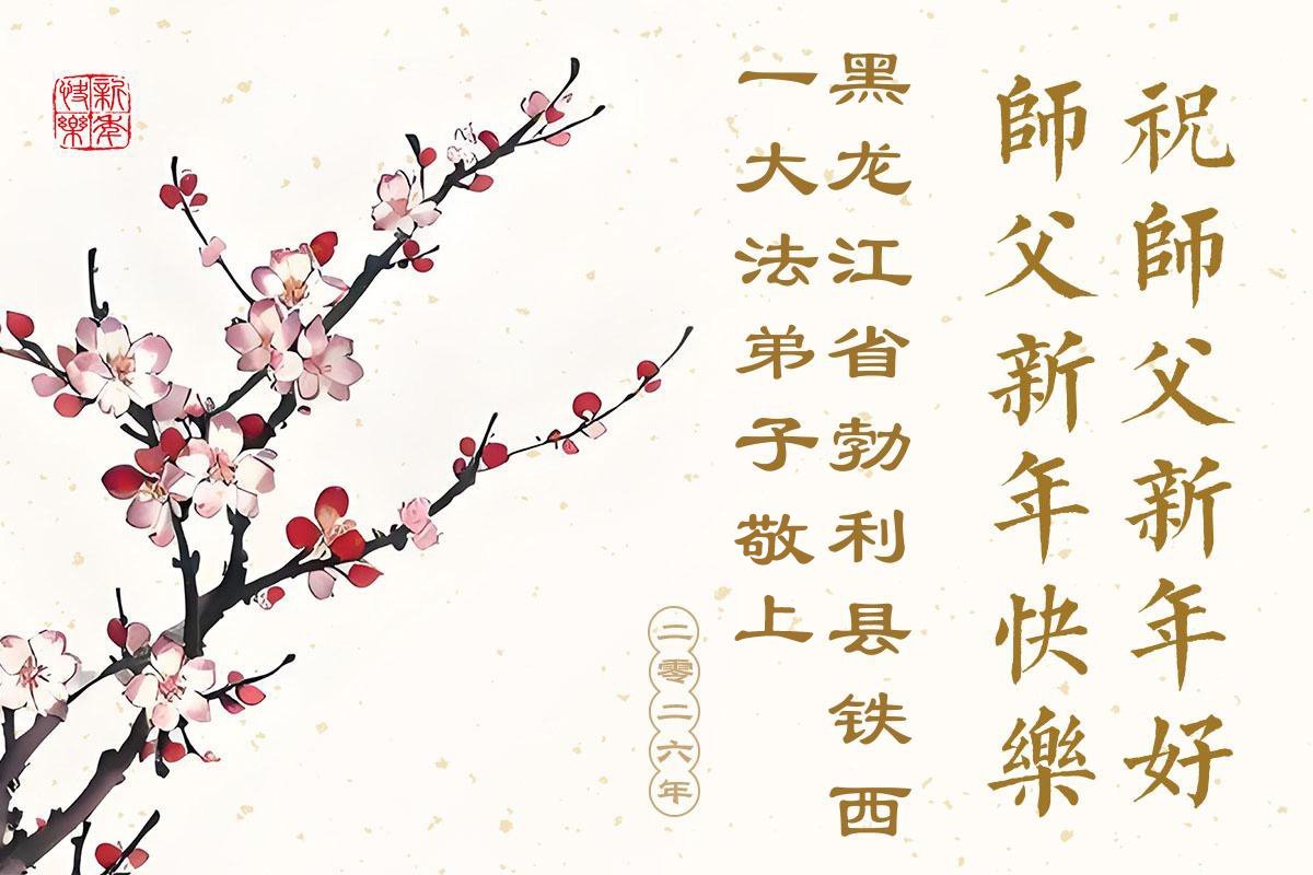 (Minghui.org) Zu Neujahr senden Falun-Dafa-Praktizierende auf der ganzen Welt traditionell Neujahrsgrüße, Grußkarten, Gedichte und Fotos an die Minghui-Website. Damit wünschen sie ihrem verehrten Meister Li Hongzhi ein frohes neues Jahr und bringen dem Meister ihre Dankbarkeit für die barmherzige Errettung zum Ausdruck. Sie geloben, in ihrer Kultivierung fleißig voranzukommen und noch mehr Lebewesen zu erretten. Im Folgenden veröffentlichen wir einen Teil dieser Grüße aus Heilongjiang: