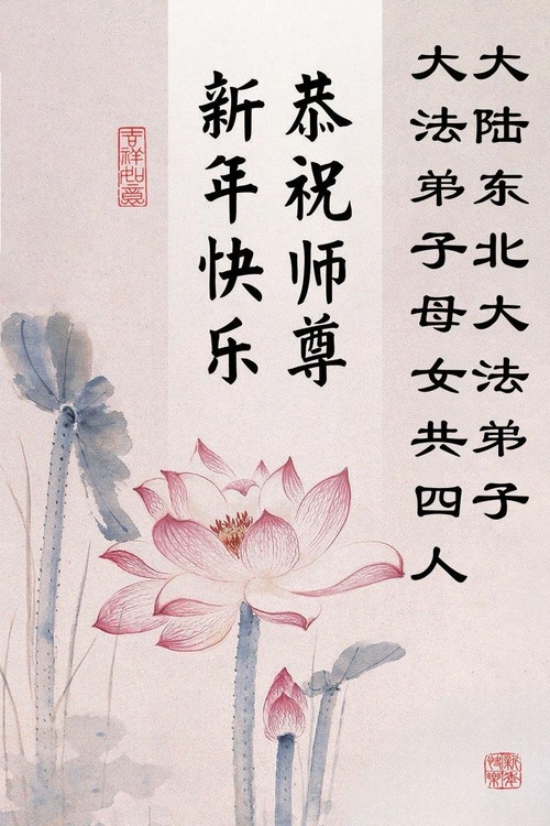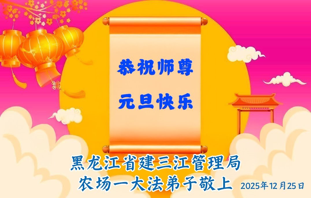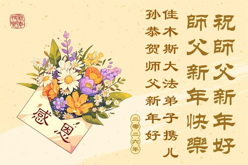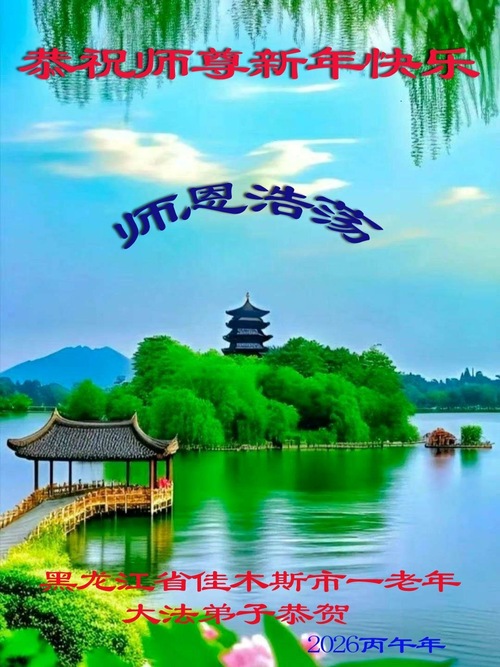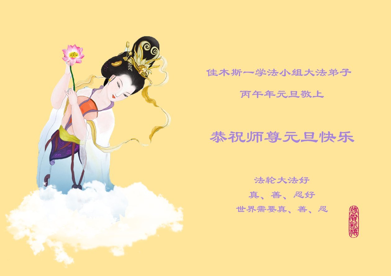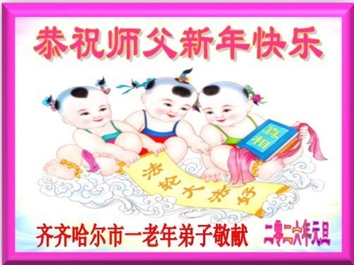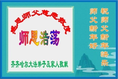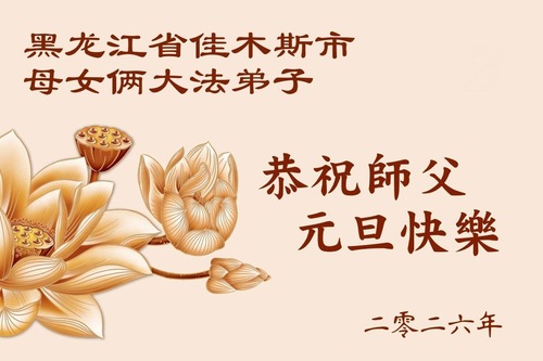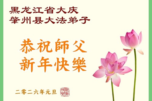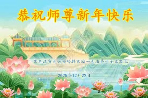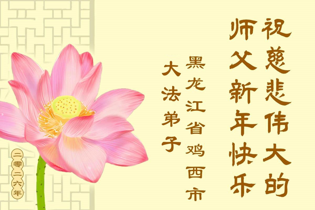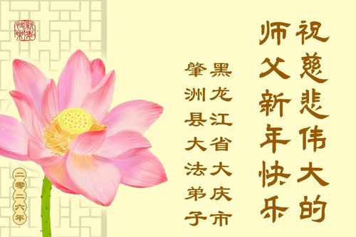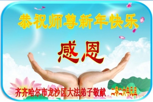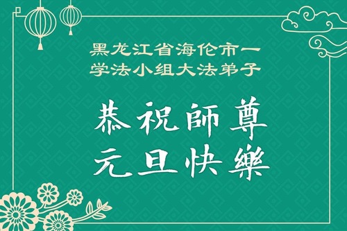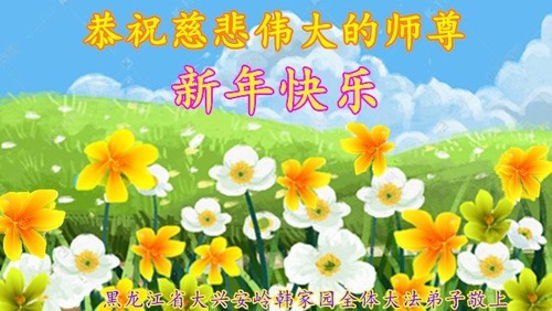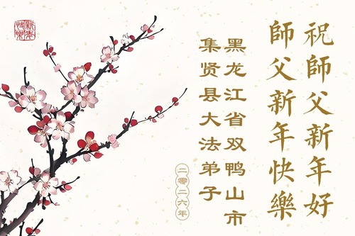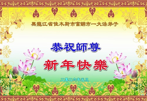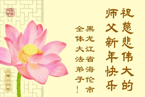 (Minghui.org) Zu Neujahr senden Falun-Dafa-Praktizierende auf der ganzen Welt traditionell Neujahrsgrüße, Grußkarten, Gedichte und Fotos an die Minghui-Website. Damit wünschen sie ihrem verehrten Meister Li Hongzhi ein frohes neues Jahr und bringen dem Meister ihre Dankbarkeit für die barmherzige Errettung zum Ausdruck. Sie geloben, in ihrer Kultivierung fleißig voranzukommen und noch mehr Lebewesen zu erretten. Im Folgenden veröffentlichen wir einen Teil dieser Grüße aus Heilongjiang: