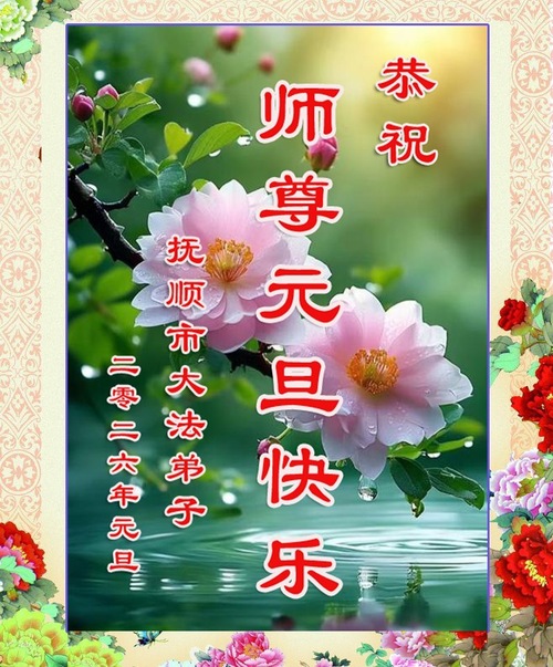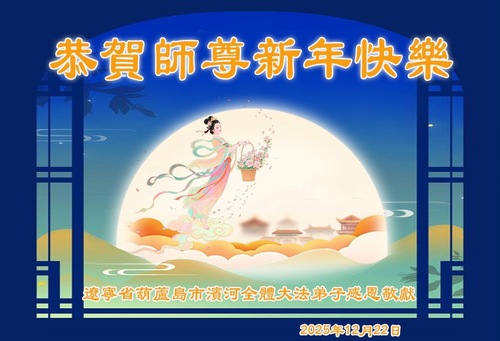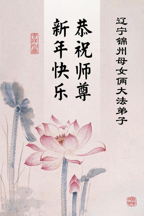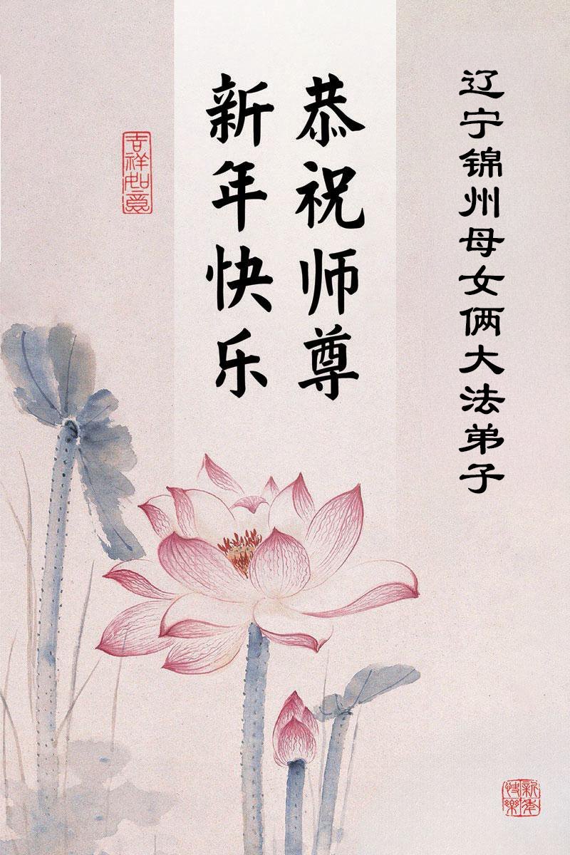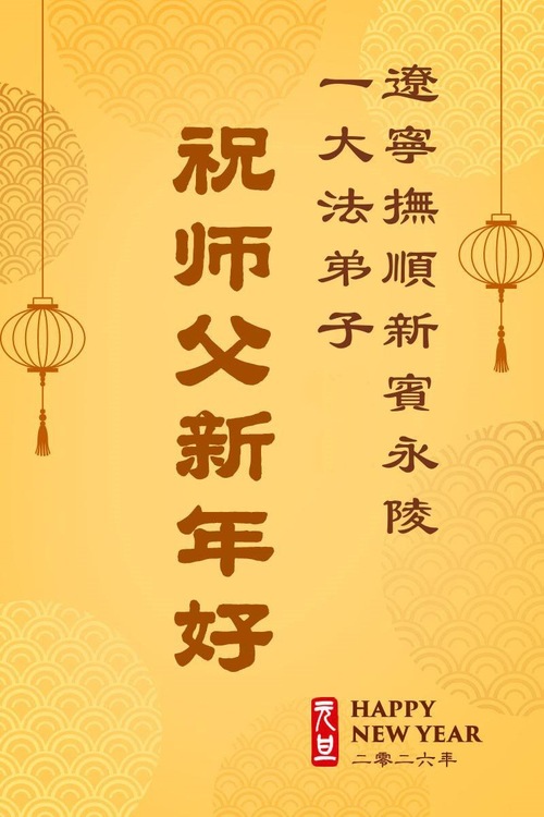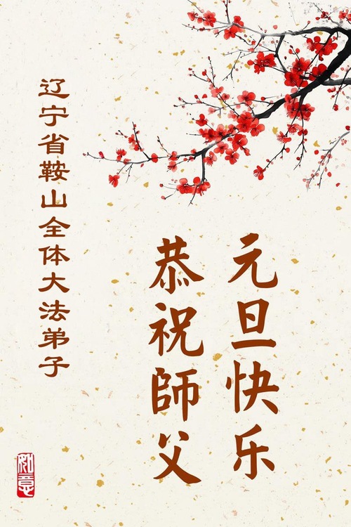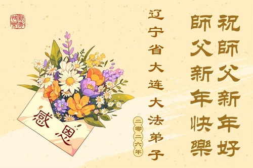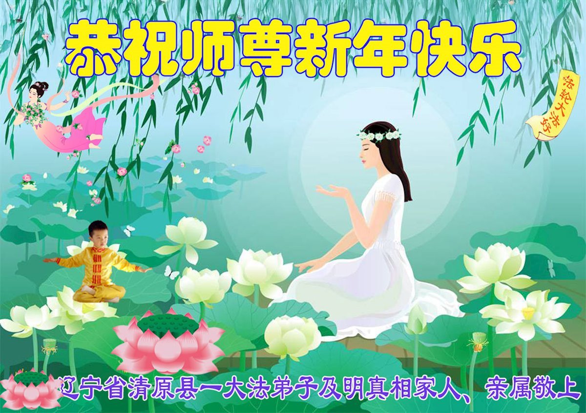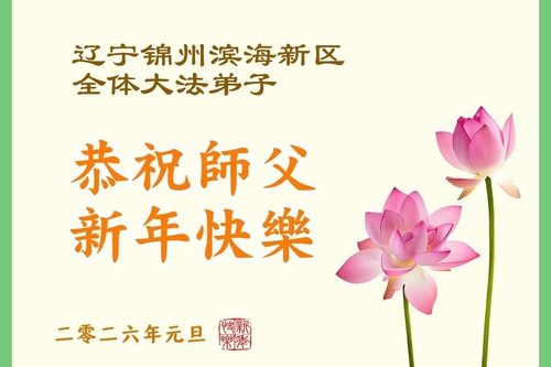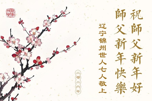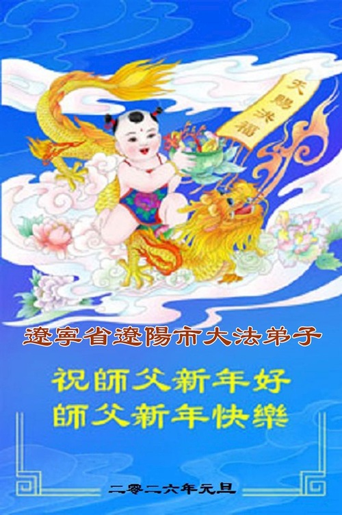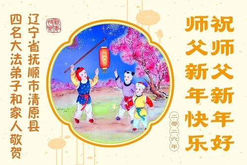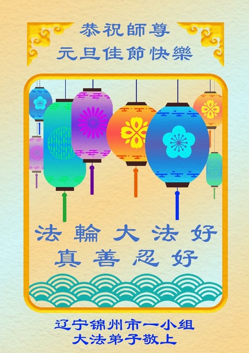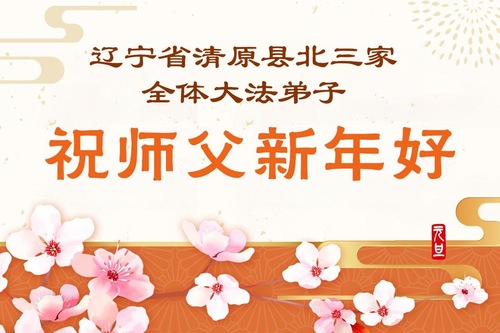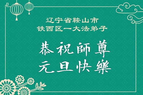 (Minghui.org) Zu Neujahr senden Falun-Dafa-Praktizierende auf der ganzen Welt traditionell Neujahrsgrüße, Grußkarten, Gedichte und Fotos an die Minghui-Website. Damit wünschen sie ihrem verehrten Meister Li Hongzhi ein frohes neues Jahr und bringen dem Meister ihre Dankbarkeit für die barmherzige Errettung zum Ausdruck. Sie geloben, in ihrer Kultivierung fleißig voranzukommen und noch mehr Lebewesen zu erretten. Im Folgenden veröffentlichen wir einen Teil dieser Grüße aus Liaoning: