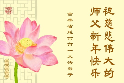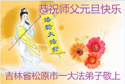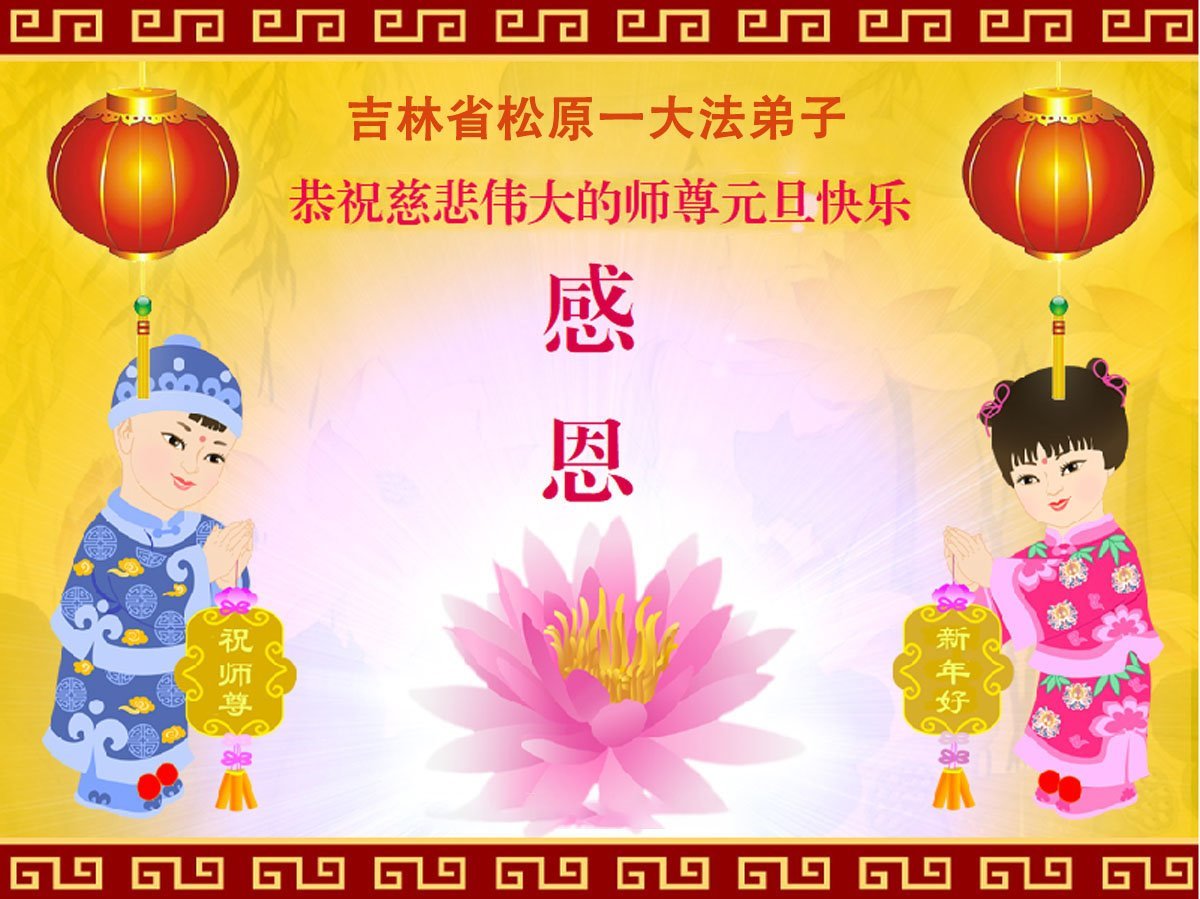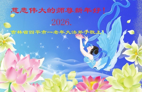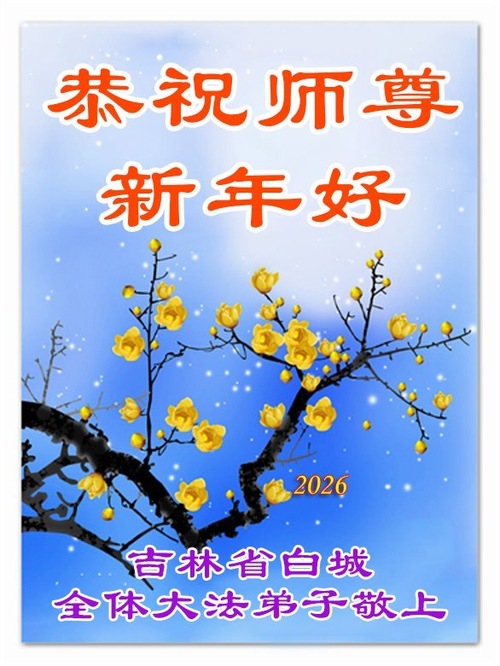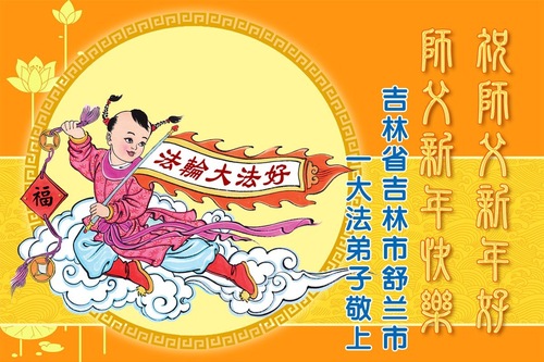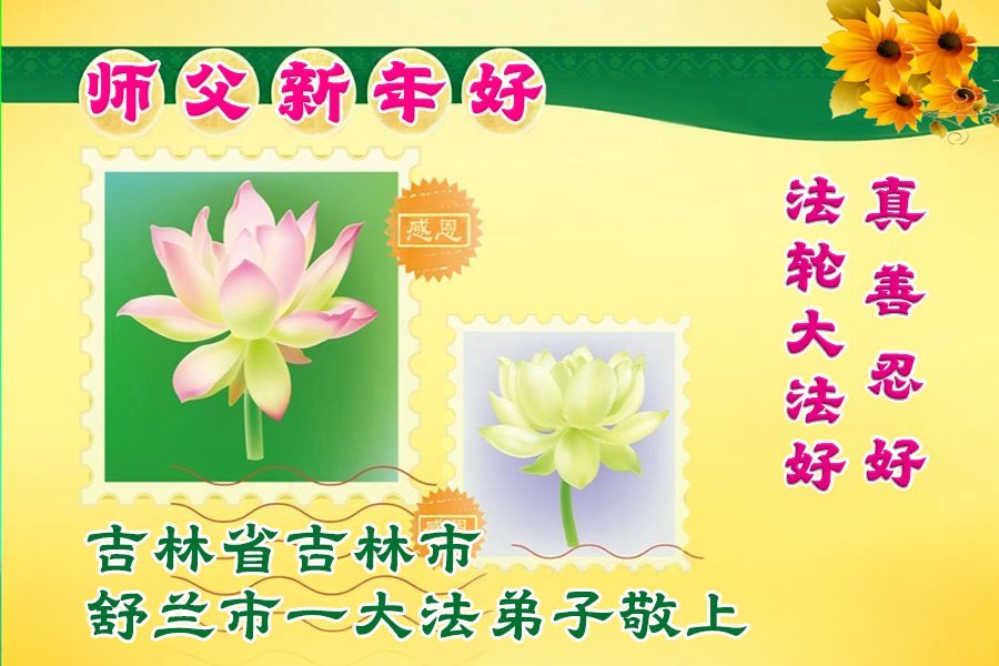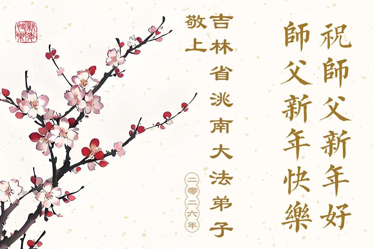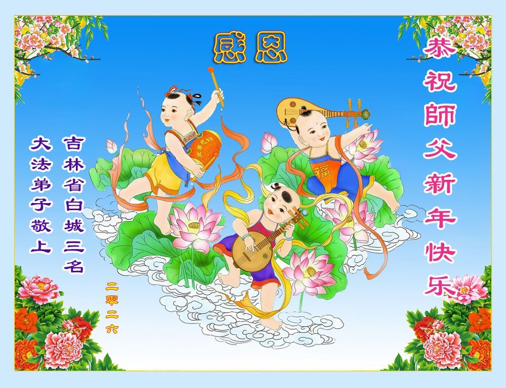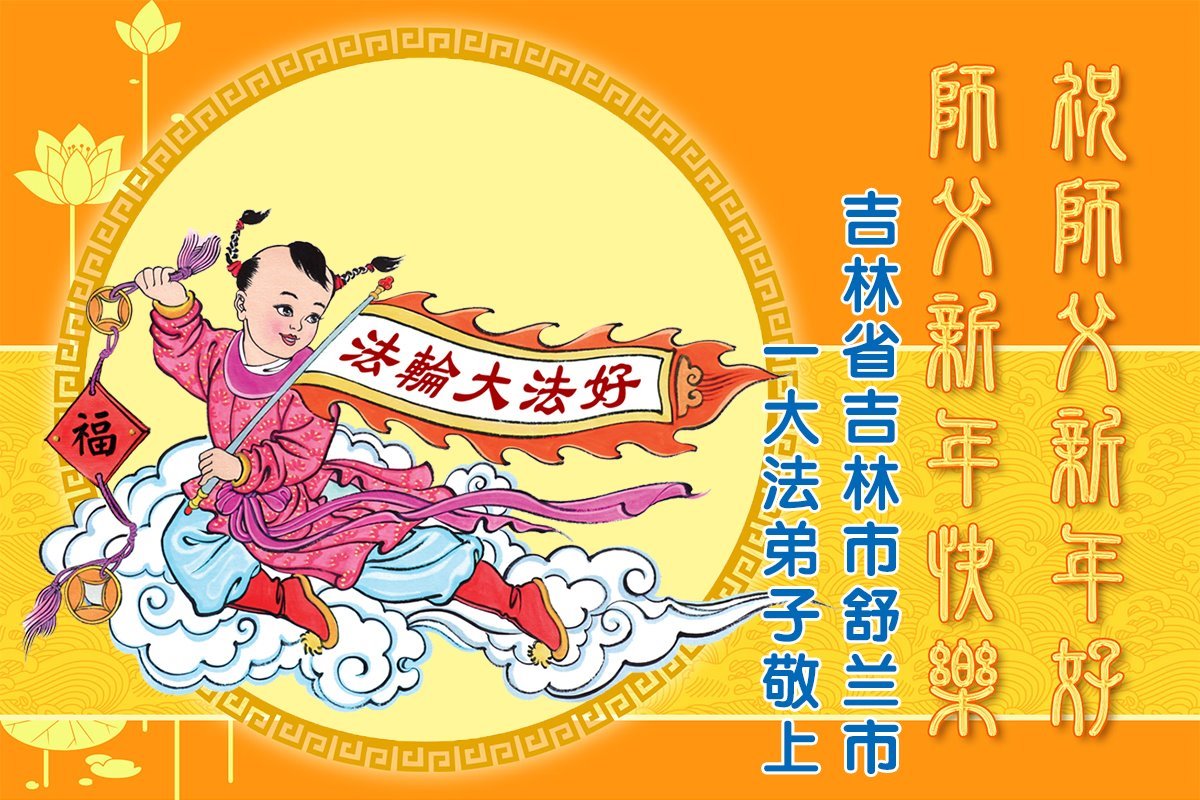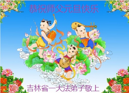 (Minghui.org) Zu Neujahr senden Falun-Dafa-Praktizierende auf der ganzen Welt traditionell Neujahrsgrüße, Grußkarten, Gedichte und Fotos an die Minghui-Website. Damit wünschen sie ihrem verehrten Meister Li Hongzhi ein frohes neues Jahr und bringen dem Meister ihre Dankbarkeit für die barmherzige Errettung zum Ausdruck. Sie geloben, in ihrer Kultivierung fleißig voranzukommen und noch mehr Lebewesen zu erretten. Im Folgenden veröffentlichen wir einen Teil dieser Grüße aus Jilin: