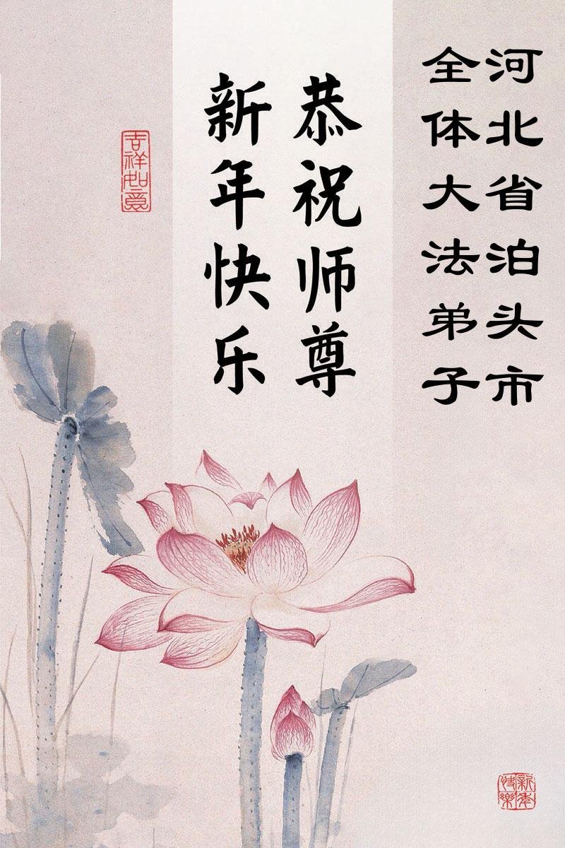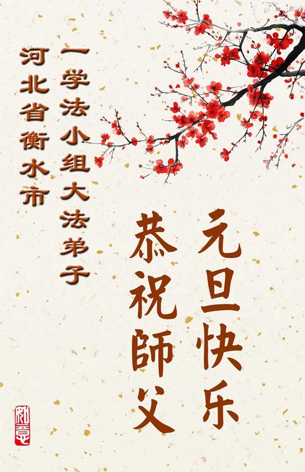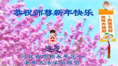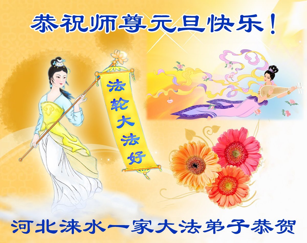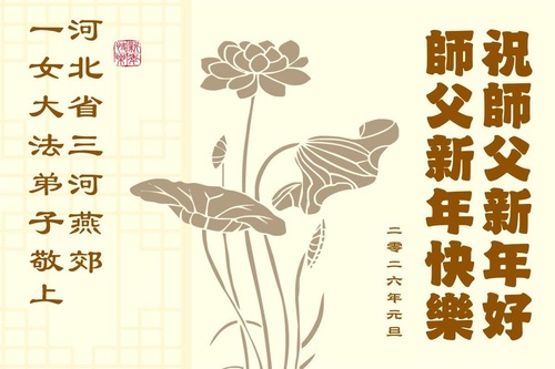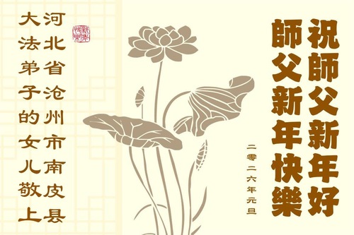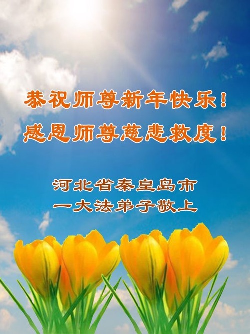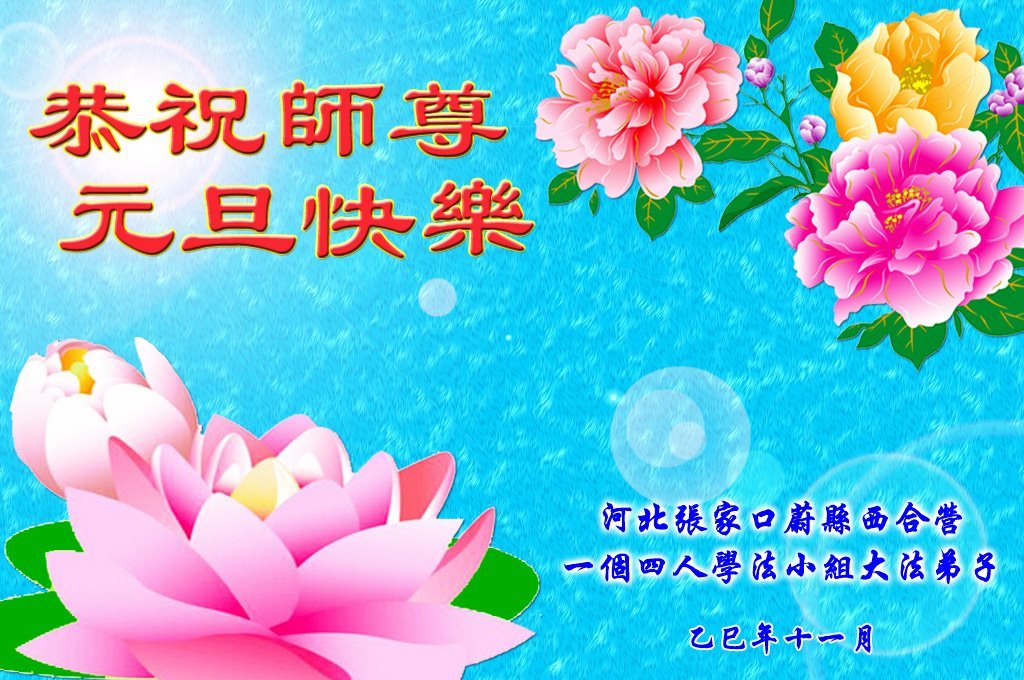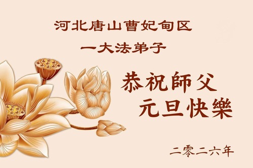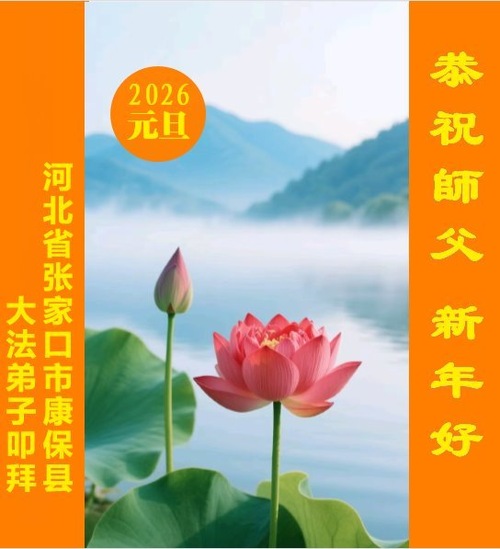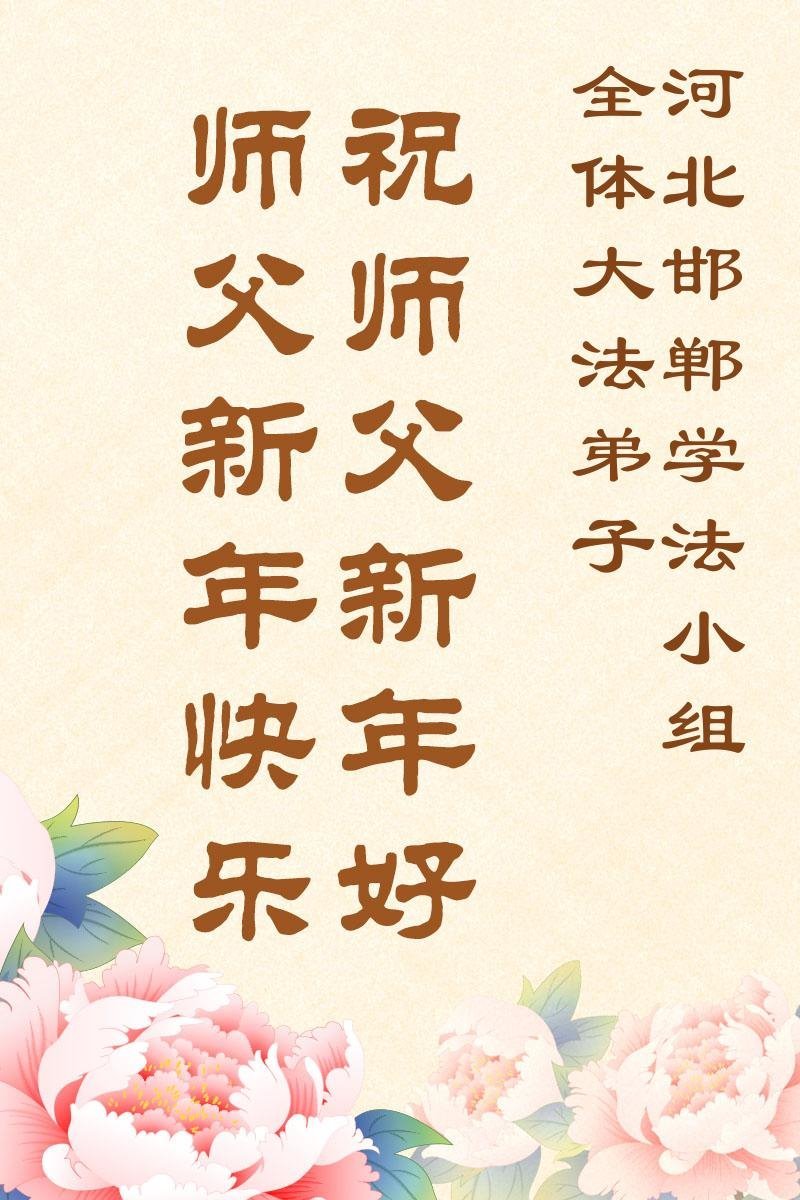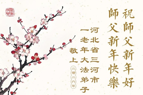 (Minghui.org) Zu Neujahr senden Falun-Dafa-Praktizierende auf der ganzen Welt traditionell Neujahrsgrüße, Grußkarten, Gedichte und Fotos an die Minghui-Website. Damit wünschen sie ihrem verehrten Meister Li Hongzhi ein frohes neues Jahr und bringen dem Meister ihre Dankbarkeit für die barmherzige Errettung zum Ausdruck. Sie geloben, in ihrer Kultivierung fleißig voranzukommen und noch mehr Lebewesen zu erretten. Im Folgenden veröffentlichen wir einen Teil dieser Grüße aus Hebei: