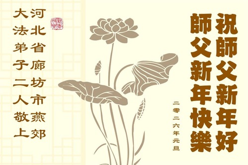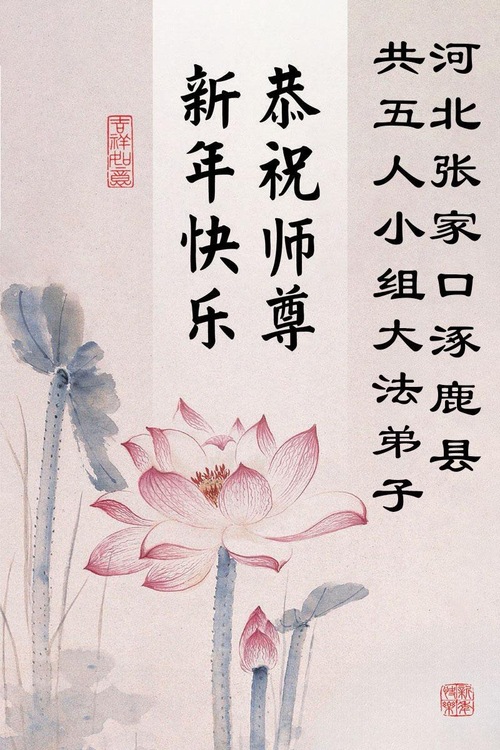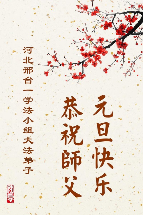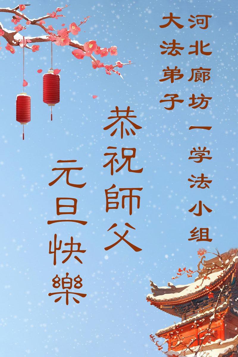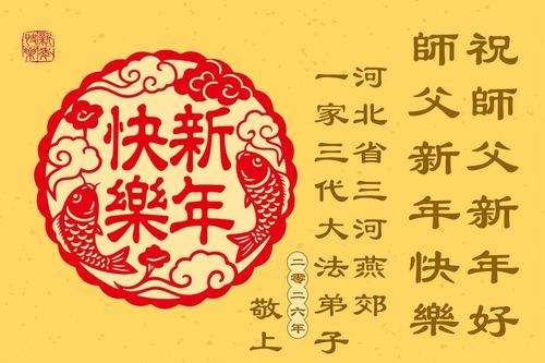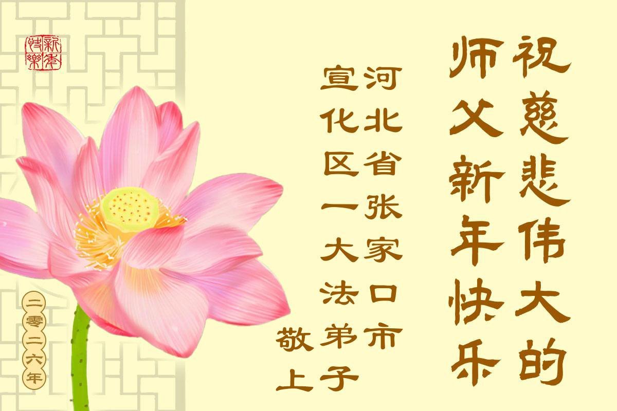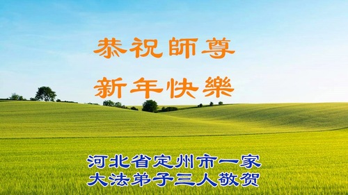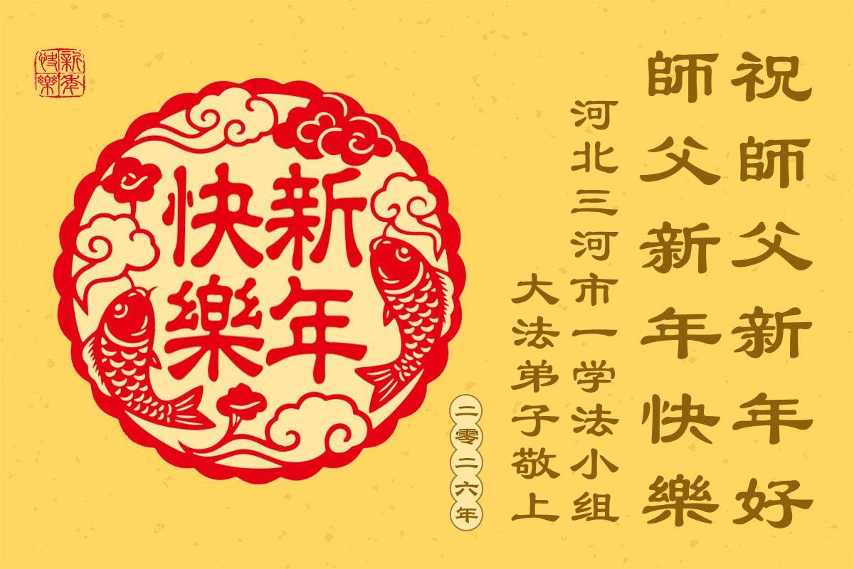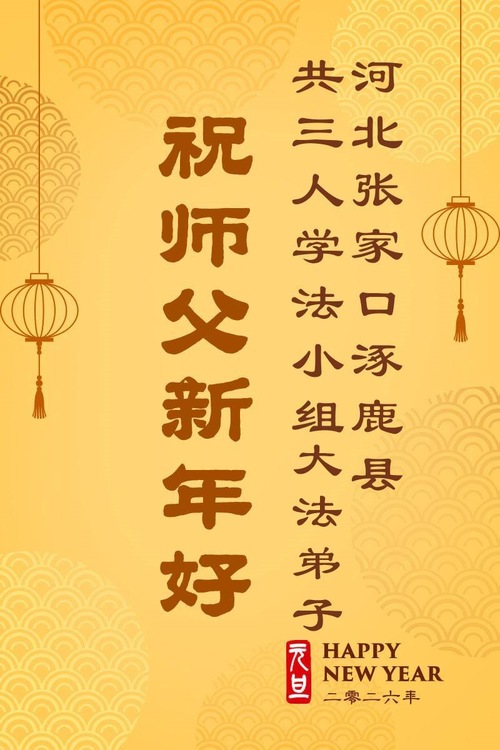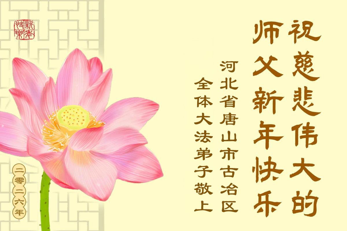 (Minghui.org) Zu Neujahr senden Falun-Dafa-Praktizierende auf der ganzen Welt traditionell Neujahrsgrüße, Grußkarten, Gedichte und Fotos an die Minghui-Website. Damit wünschen sie ihrem verehrten Meister Li Hongzhi ein frohes neues Jahr und bringen dem Meister ihre Dankbarkeit für die barmherzige Errettung zum Ausdruck. Sie geloben, in ihrer Kultivierung fleißig voranzukommen und noch mehr Lebewesen zu erretten. Im Folgenden veröffentlichen wir einen Teil dieser Grüße aus Hebei: