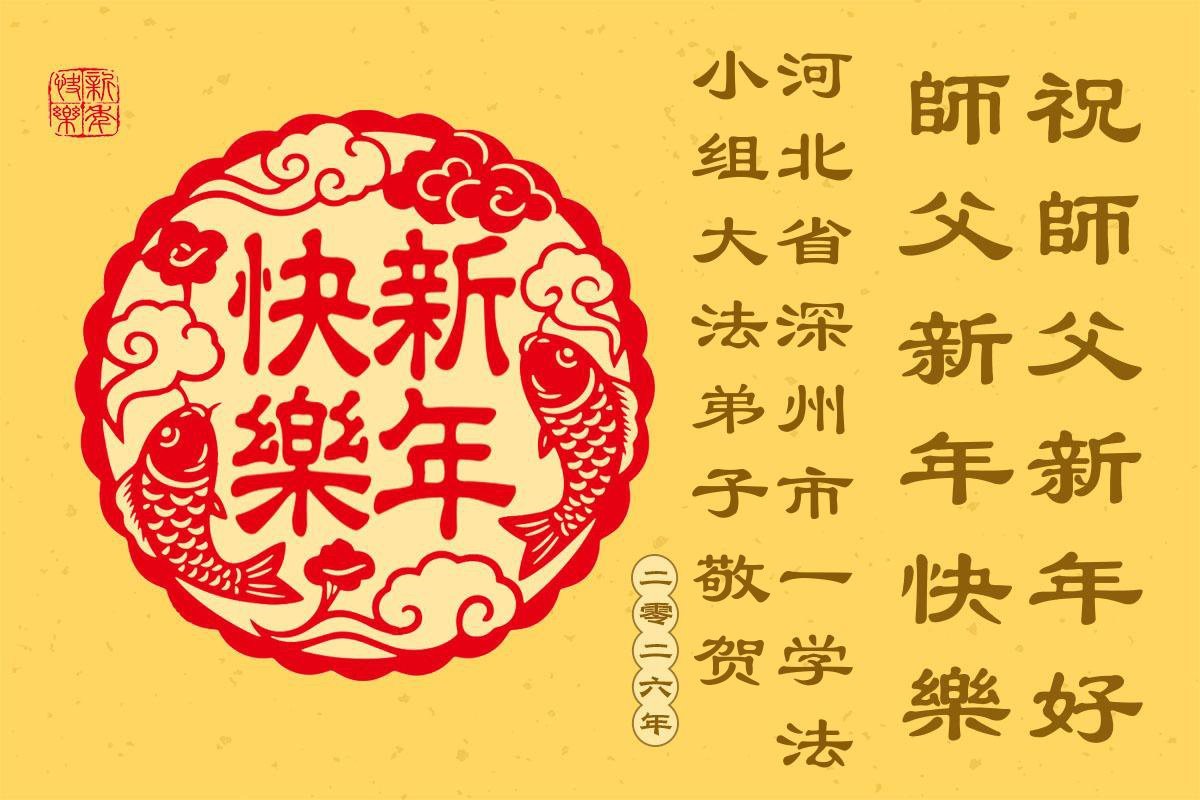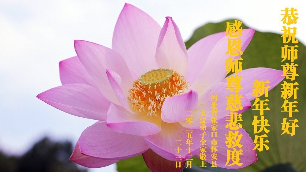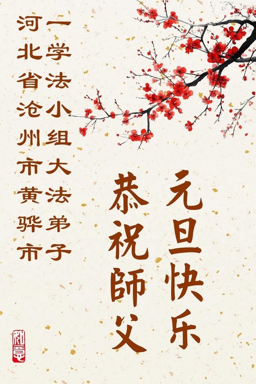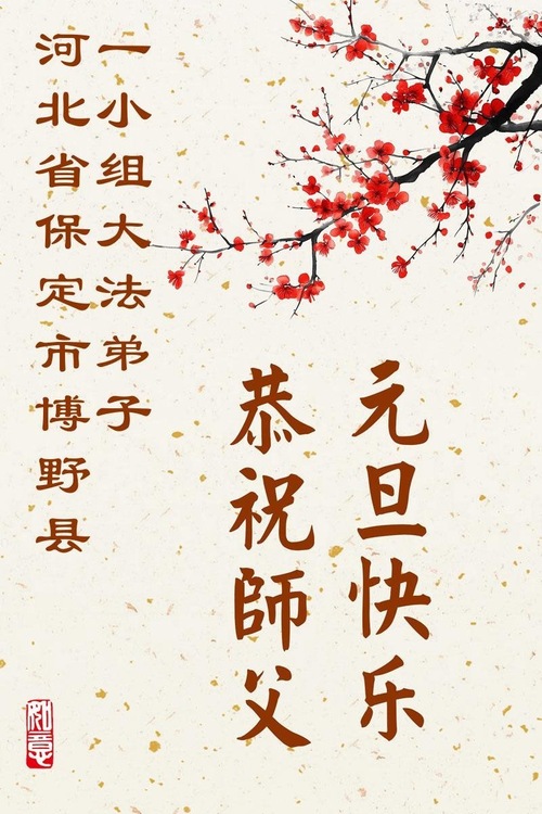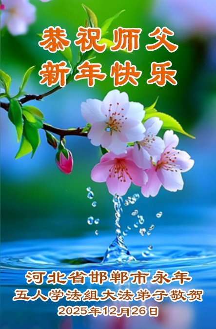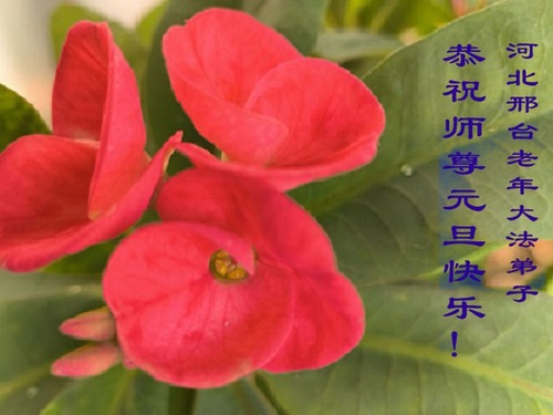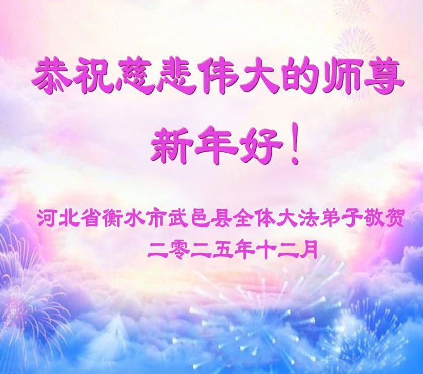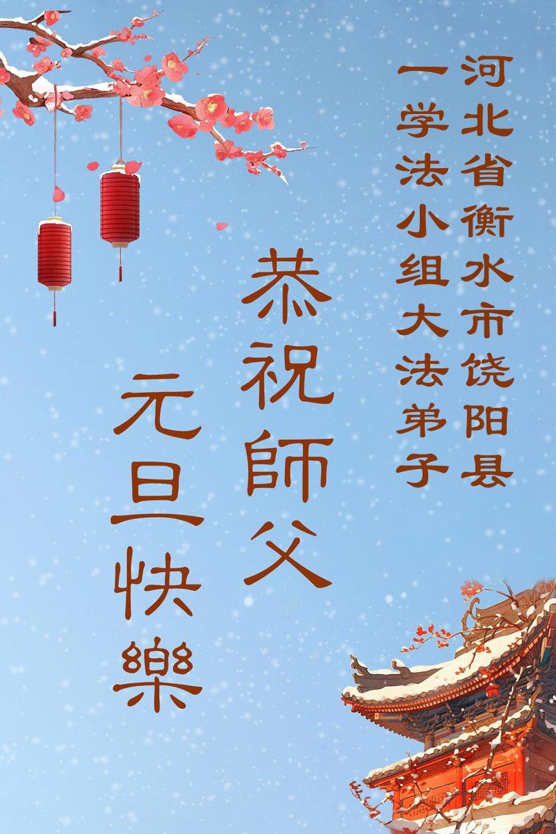 (Minghui.org) Zu Neujahr senden Falun-Dafa-Praktizierende auf der ganzen Welt traditionell Neujahrsgrüße, Grußkarten, Gedichte und Fotos an die Minghui-Website. Damit wünschen sie ihrem verehrten Meister Li Hongzhi ein frohes neues Jahr und bringen dem Meister ihre Dankbarkeit für die barmherzige Errettung zum Ausdruck. Sie geloben, in ihrer Kultivierung fleißig voranzukommen und noch mehr Lebewesen zu erretten. Im Folgenden veröffentlichen wir einen Teil dieser Grüße aus Hebei: