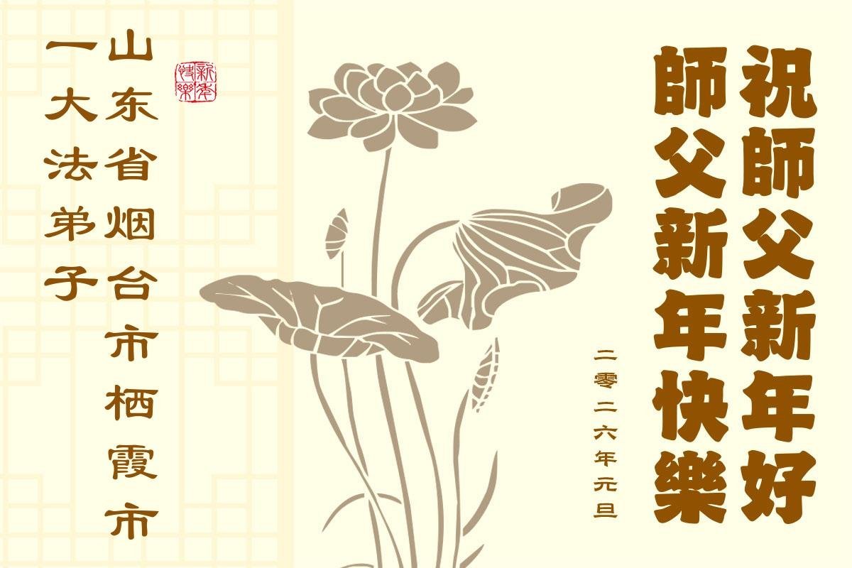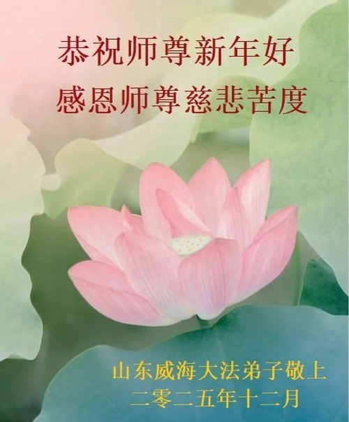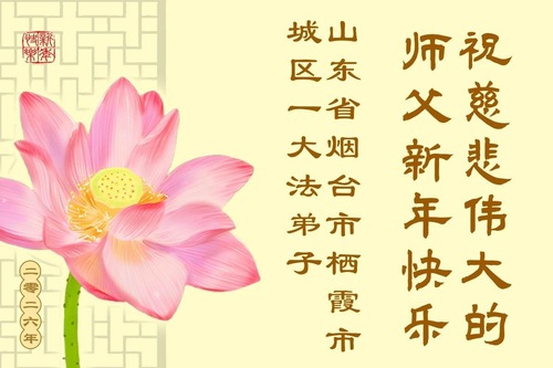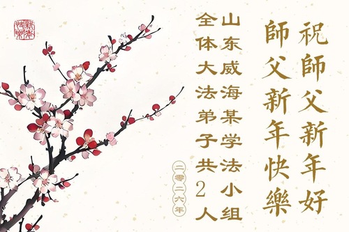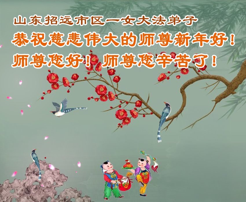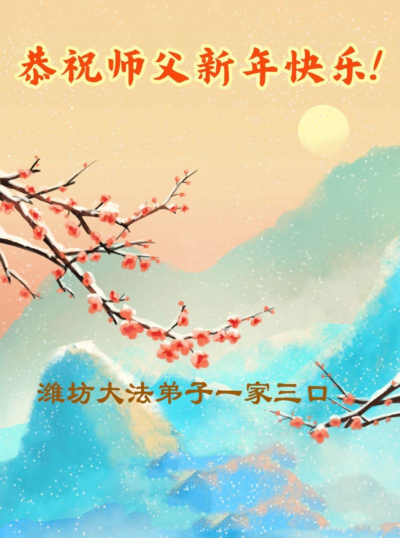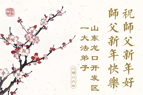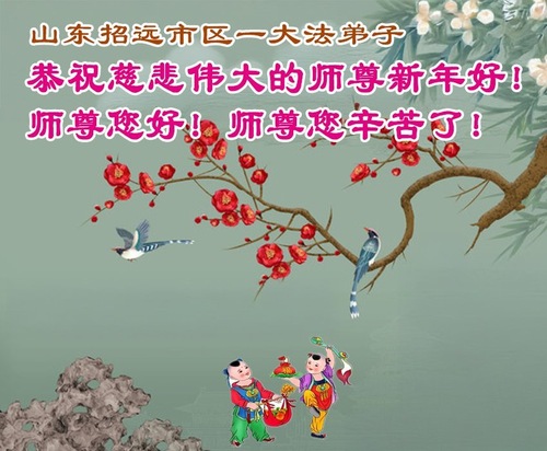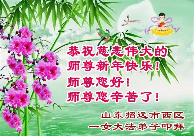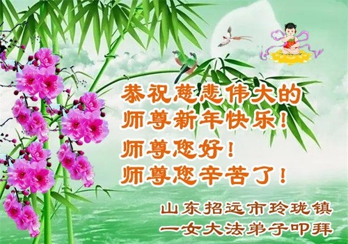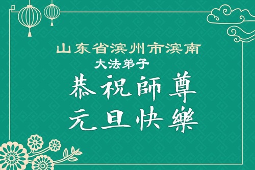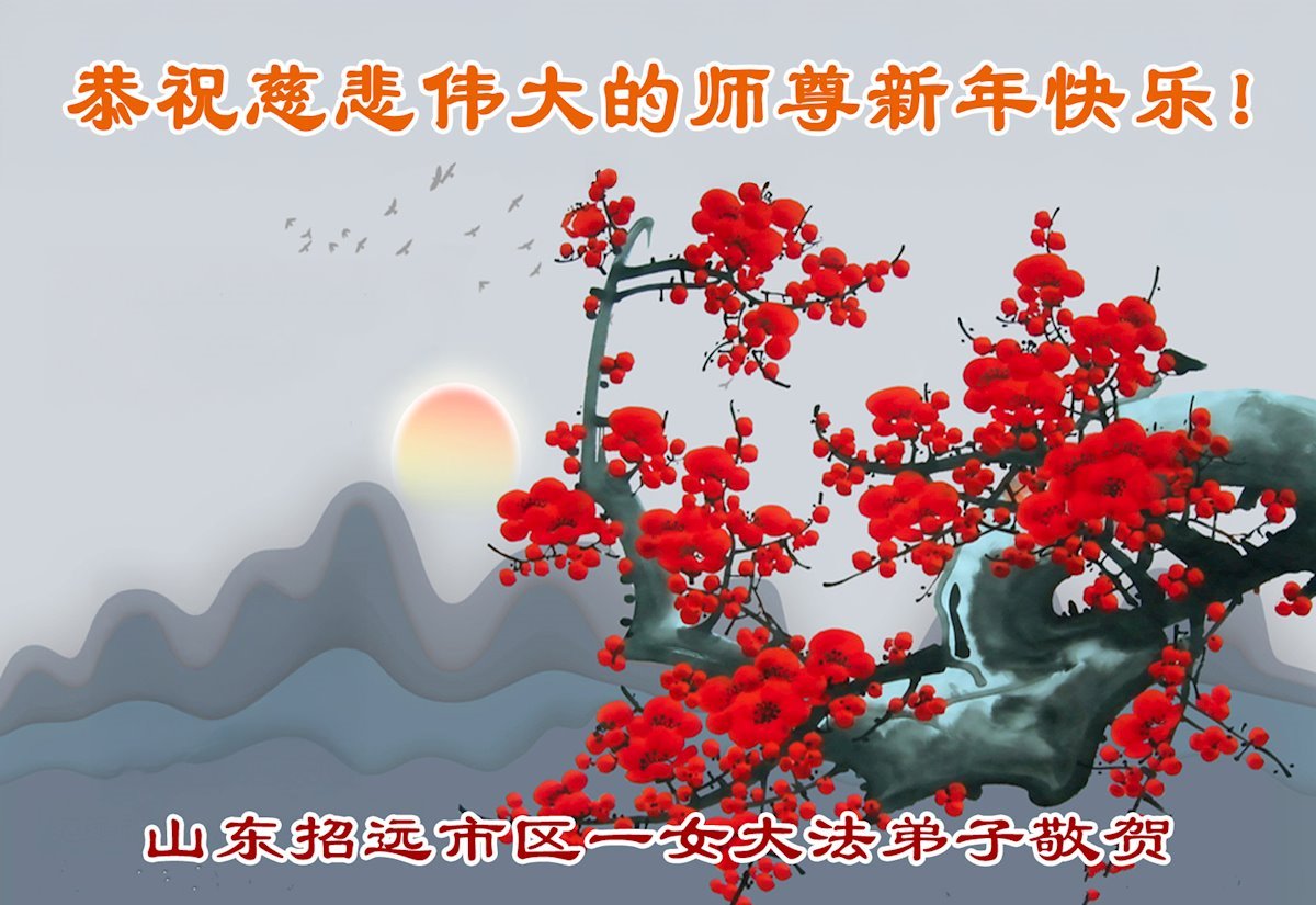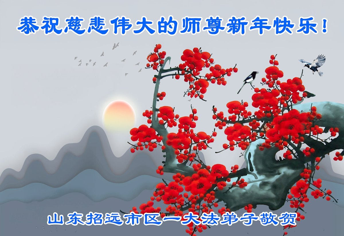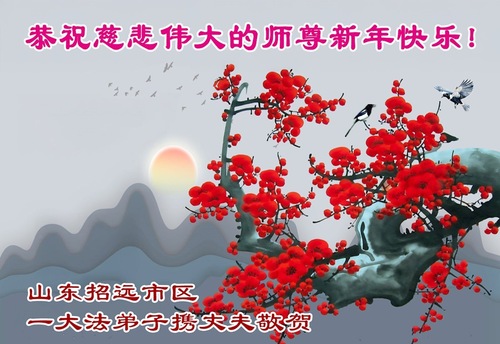 (Minghui.org) Zu Neujahr senden Falun-Dafa-Praktizierende auf der ganzen Welt traditionell Neujahrsgrüße, Grußkarten, Gedichte und Fotos an die Minghui-Website. Damit wünschen sie ihrem verehrten Meister Li Hongzhi ein frohes neues Jahr und bringen dem Meister ihre Dankbarkeit für die barmherzige Errettung zum Ausdruck. Sie geloben, in ihrer Kultivierung fleißig voranzukommen und noch mehr Lebewesen zu erretten. Im Folgenden veröffentlichen wir einen Teil dieser Grüße aus Shandong:
