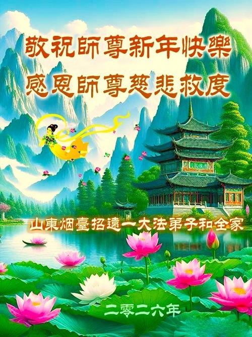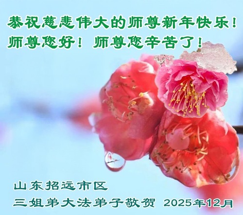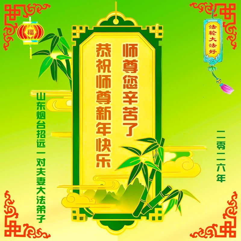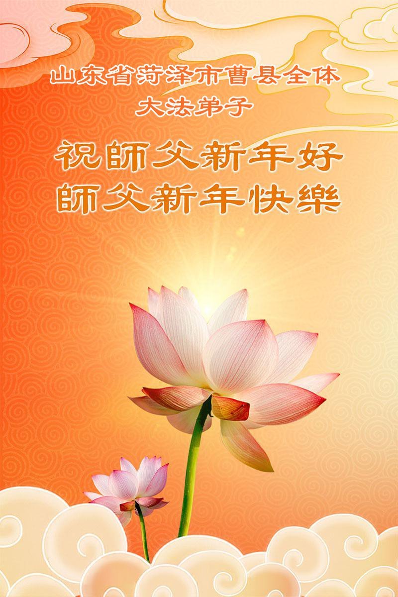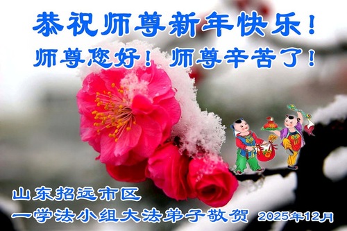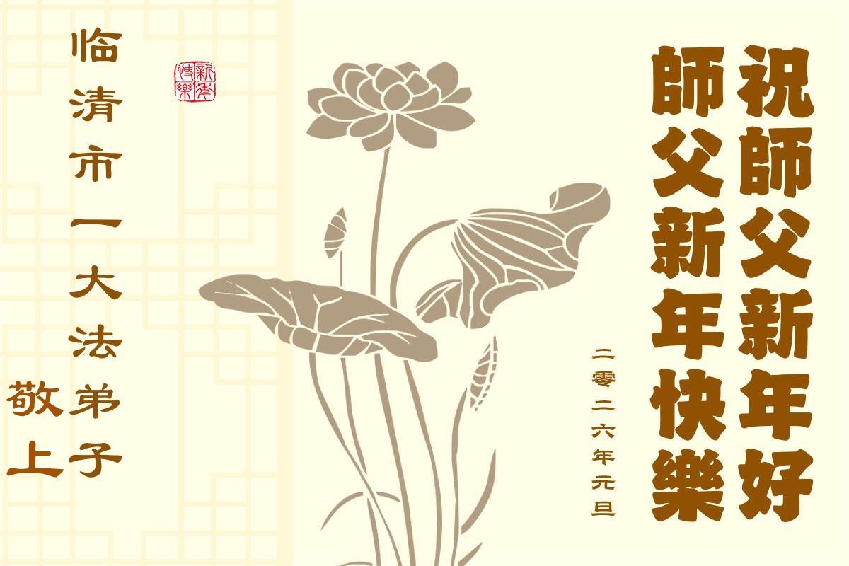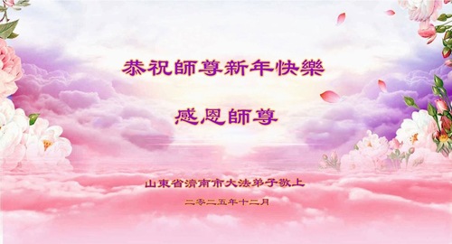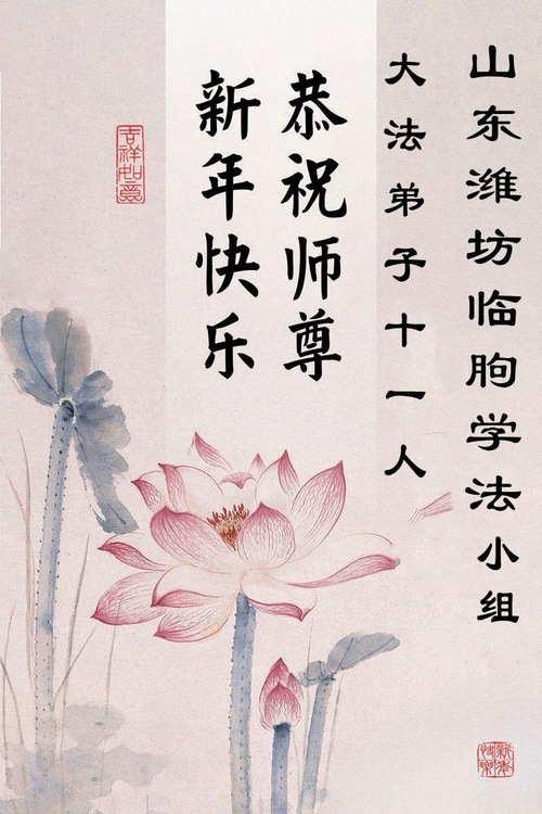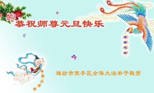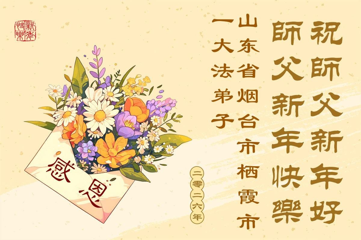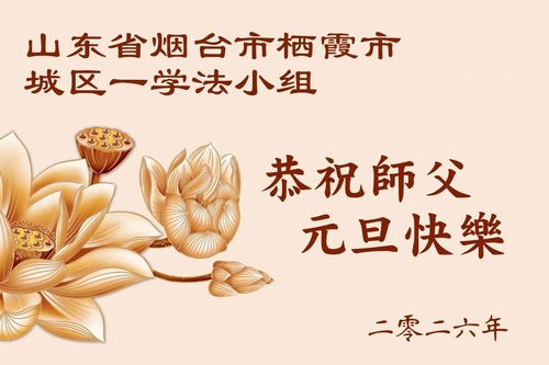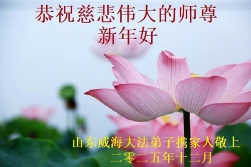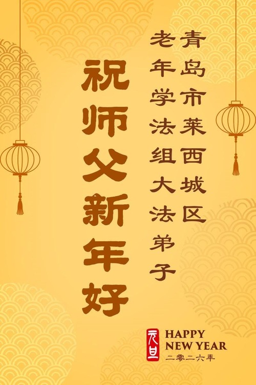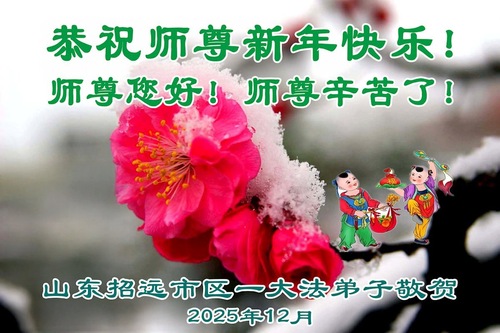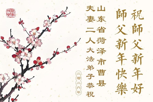 (Minghui.org) Zu Neujahr senden Falun-Dafa-Praktizierende auf der ganzen Welt traditionell Neujahrsgrüße, Grußkarten, Gedichte und Fotos an die Minghui-Website. Damit wünschen sie ihrem verehrten Meister Li Hongzhi ein frohes neues Jahr und bringen dem Meister ihre Dankbarkeit für die barmherzige Errettung zum Ausdruck. Sie geloben, in ihrer Kultivierung fleißig voranzukommen und noch mehr Lebewesen zu erretten. Im Folgenden veröffentlichen wir einen Teil dieser Grüße aus Shandong: