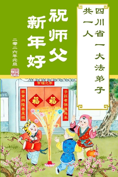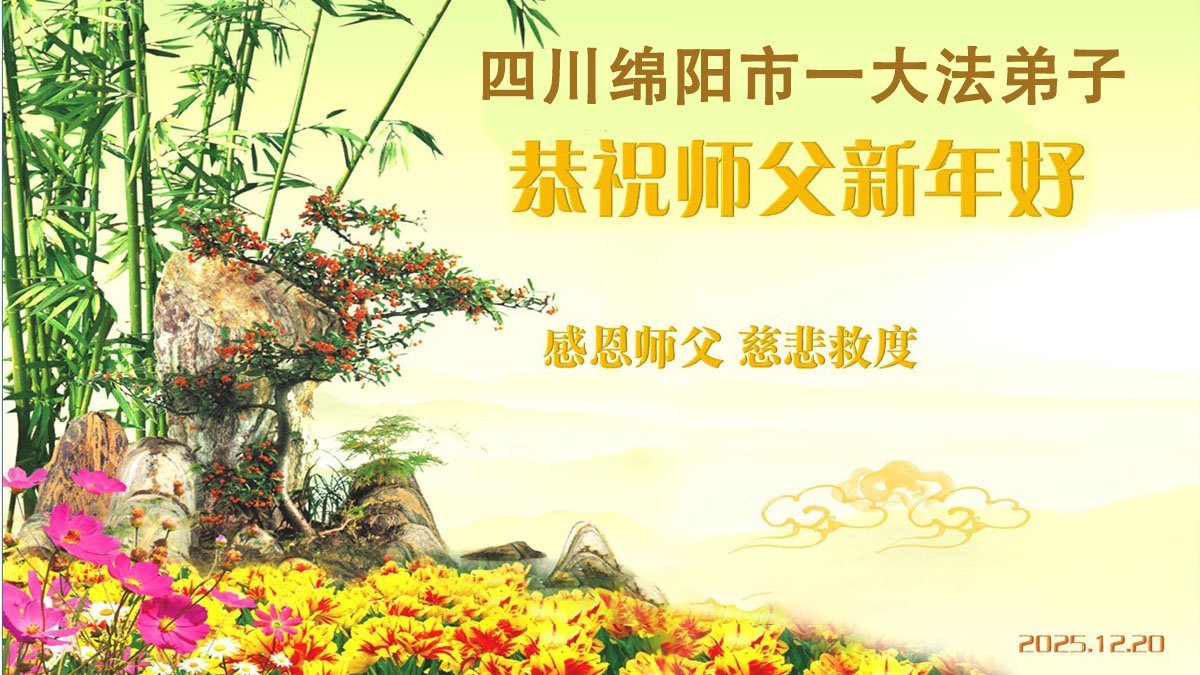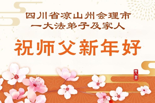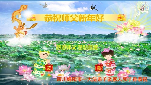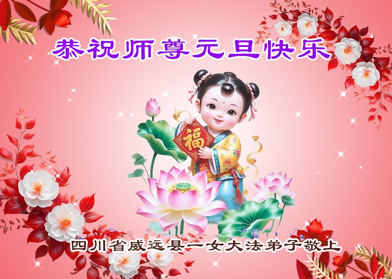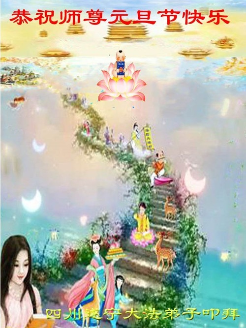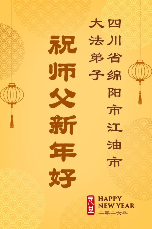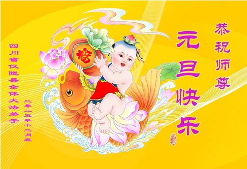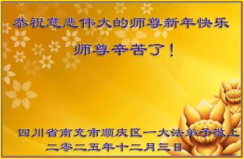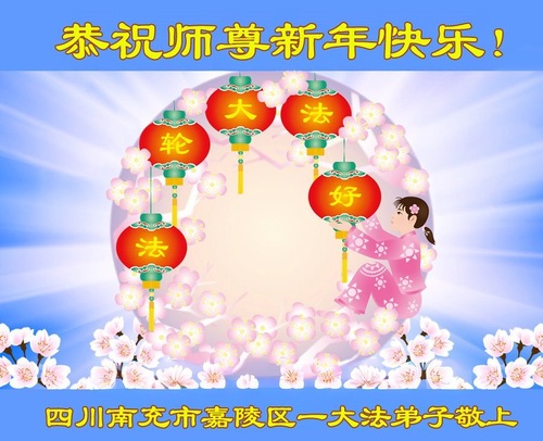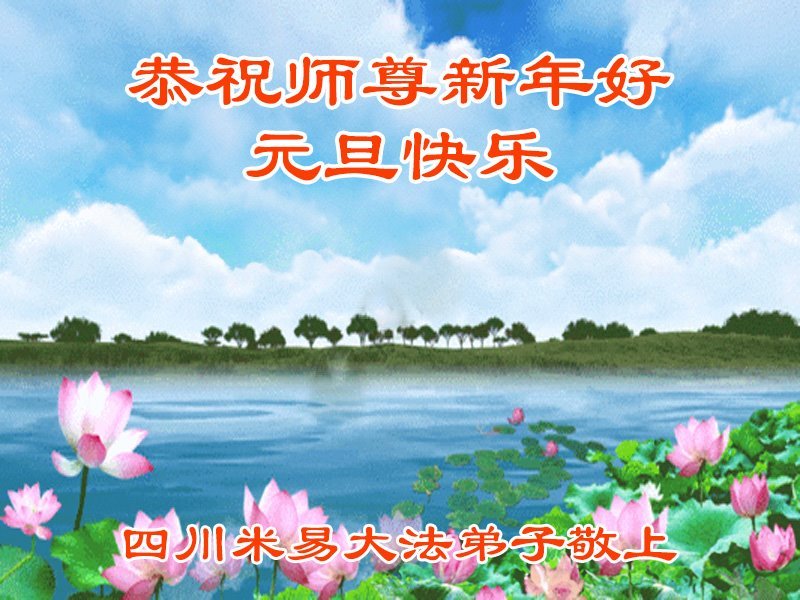 (Minghui.org) Zu Neujahr senden Falun-Dafa-Praktizierende auf der ganzen Welt traditionell Neujahrsgrüße, Grußkarten, Gedichte und Fotos an die Minghui-Website. Damit wünschen sie ihrem verehrten Meister Li Hongzhi ein frohes neues Jahr und bringen dem Meister ihre Dankbarkeit für die barmherzige Errettung zum Ausdruck. Sie geloben, in ihrer Kultivierung fleißig voranzukommen und noch mehr Lebewesen zu erretten. Im Folgenden veröffentlichen wir einen Teil dieser Grüße aus Sichuan: